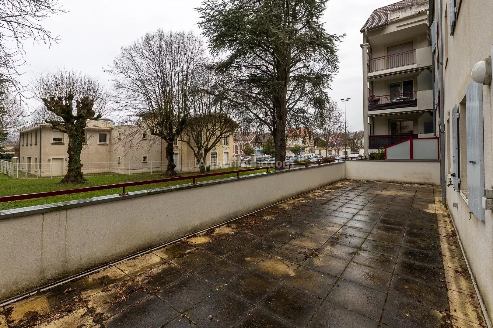 En plein coeur de La Tour du Pin, à seulement 500 mètres de la gare, venez découvrir ce joli appartement T3 de 72,95 m² (Carrez). Situé au premier étage avec ascenseur d'une résidence sécurisée de 2005 en bon état. Il se compose - d'un hall d'entrée avec grand placard, - d'un séjour donnant sur une grande terrasse de 58 m² exposée Ouest côté verdure - d'une cuisine aménagée , - de deux chambres avec placard , - d'une salle d'eau - de toilettes séparés. Cet appartement bénéficie également d'un cellier sur le même étage et d'un garage en sous sol. Menuiseries PVC double vitrage. Chauffage : Chaudière gaz individuelle. Logement fonctionnel et à proximité de tous les services, écoles et commerces. Copropriété de 63 lots. Charges: 113 €/mois Pas de procédure en cours. DPE : C Taxe foncière : 306 €. REF 7222 Prix de vente 193900 € dont Honoraires charge acquéreur: de 8880 € Les informations sur les risques auxquels ce bien est exposé sont disponibles sur le site Géorisques : georisques.gouv.fr