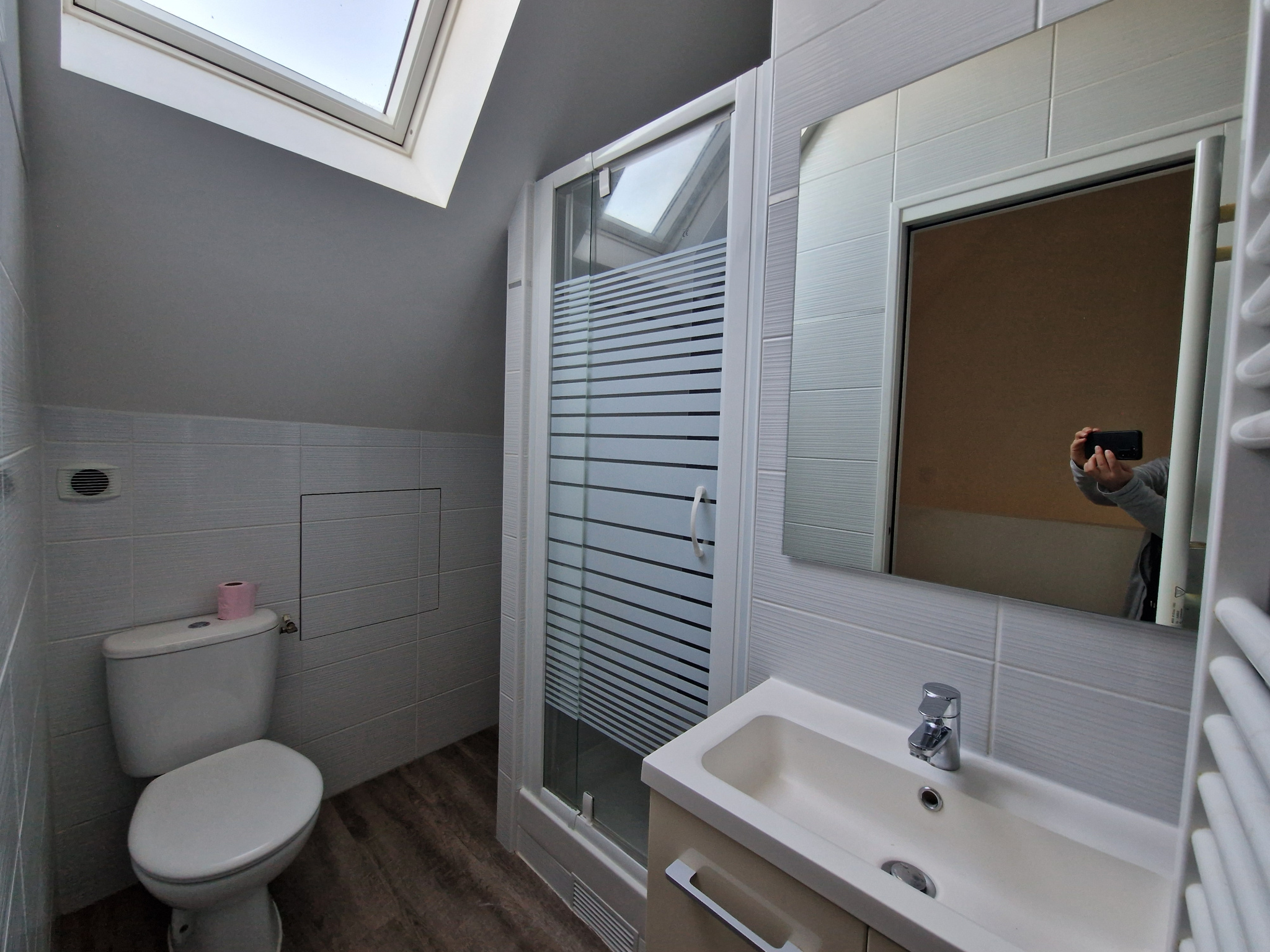 Vous bénéficierez également d'une petite terrasse privative sur le devant du logement et d'une place de parking extérieur.