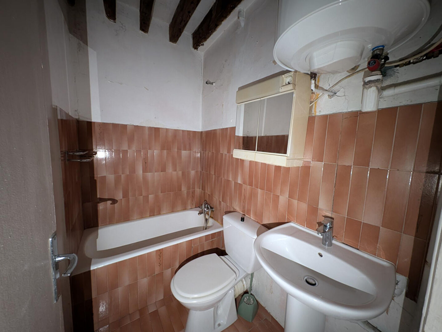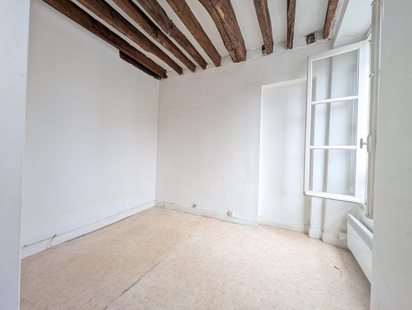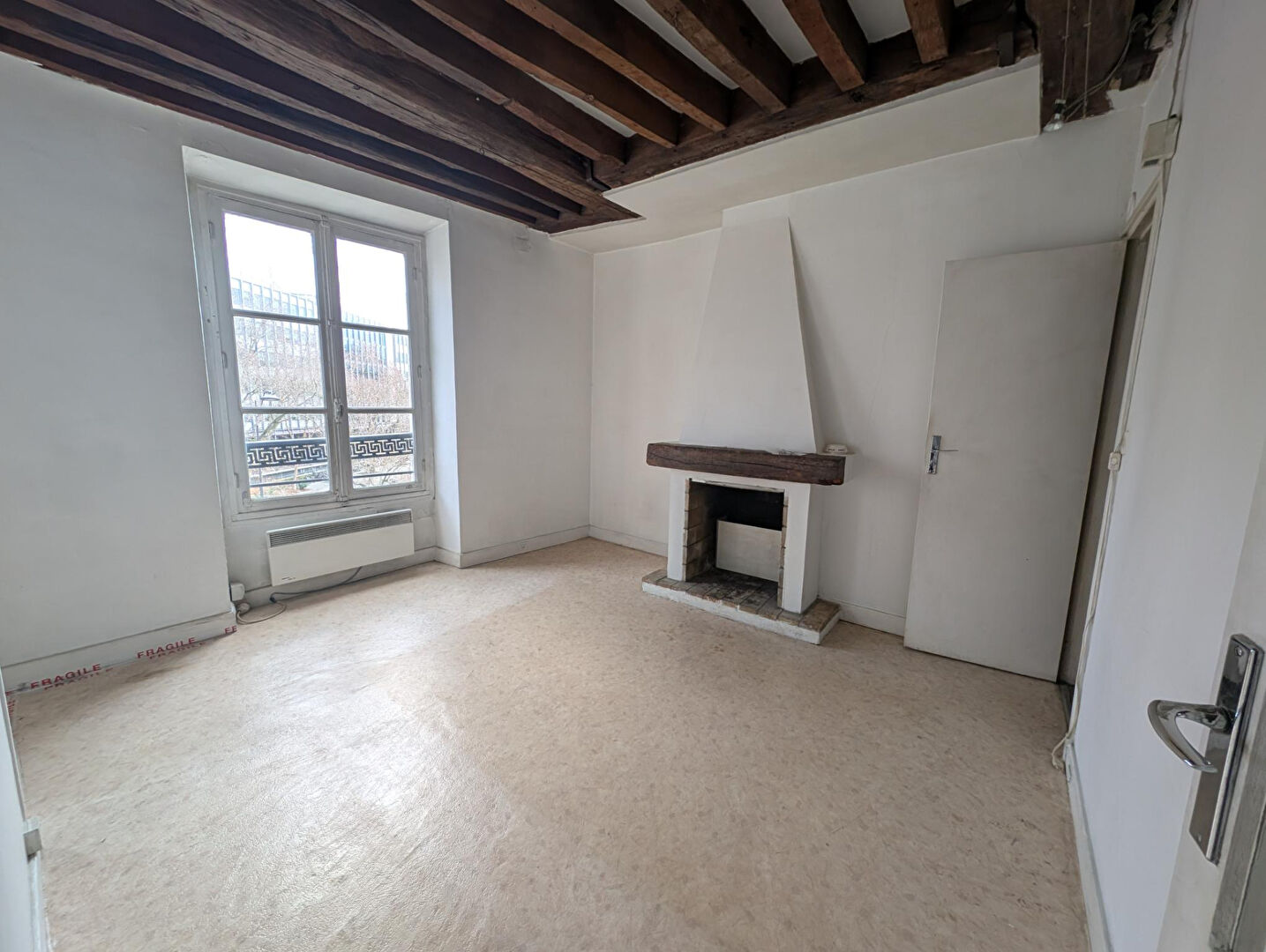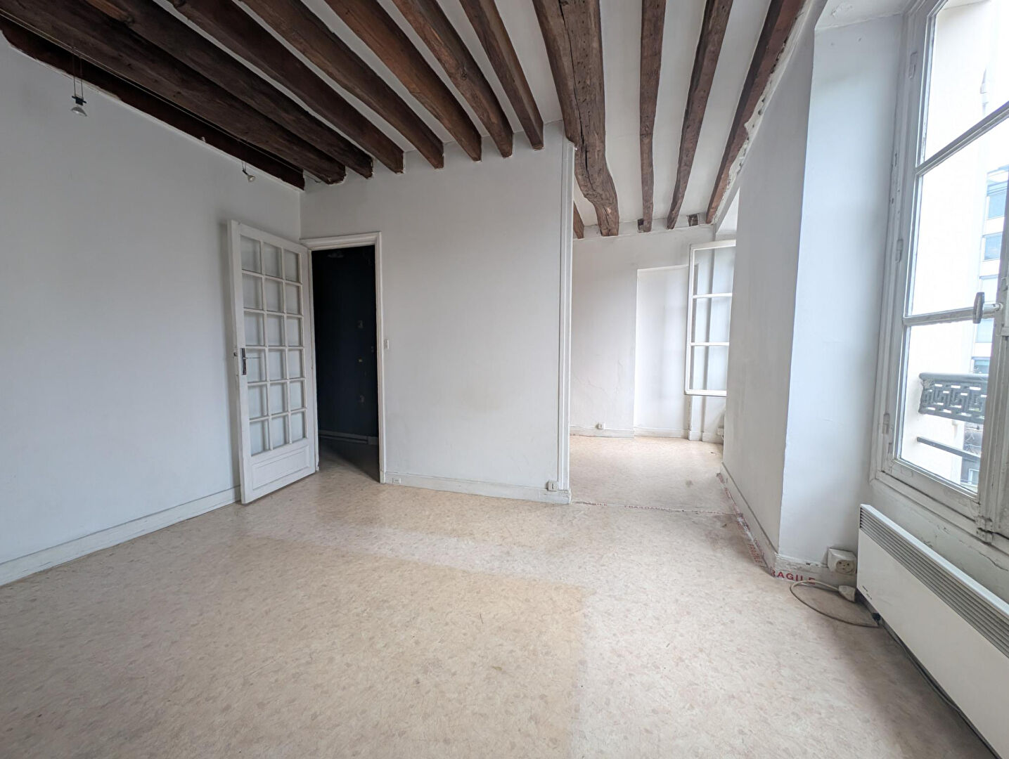 Au troisième étage par escalier d'un immeuble ancien, nous vous présentons ce deux pièces, disposant de beaucoup de charme, sans vis à vis, face à la Faculté de Jussieu. Il est composé d'une entrée avec dressing séparé, une pièce de vie et une chambre, chacune avec fenêtre. Une kitchenette attenante au séjour, une salle de bains avec baignoire et wc. Métro (ligne 10) et bus en bas de l'immeuble. Très clair, poutres apparentes au plafond. L'ensemble est à rénover. (5.00 % honoraires TTC à la charge de l'acquéreur.) Copropriété de 102 lots - dont 71 lots habitation. Charges annuelles : 1120 euros.