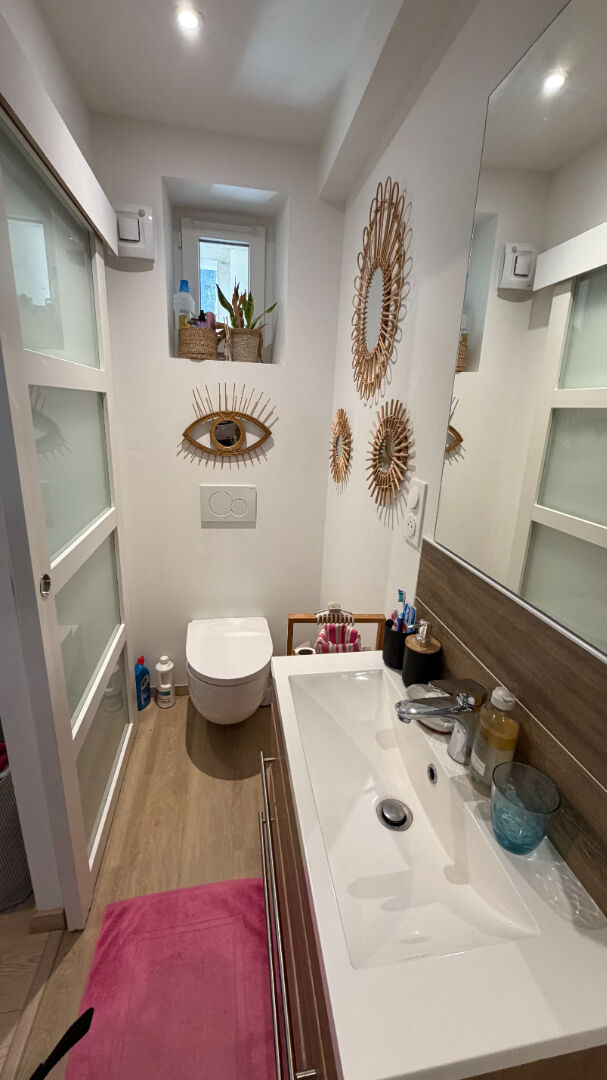Centre ville, Dans Immeuble avec ascenseur et garage, appartement T2 de 46,61 m² très lumineux et composé d'une cuisine aménagée équipée semi-ouverte sur pièce de vie avec accès balcon par 2 grande baies vitrée, chambre et sd'eau privative a la chambre avec WC. accès petit balcon sur l'arrière. Location meublée libre au 01/04/2026 Copropriété de 59 lots - dont 10 lots habitation.