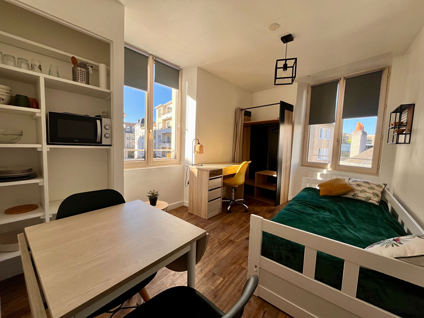 " LE FOCH" Vous posez vos valises au coeur de Poitiers ? Ce studio meublé de 18 m² est la pépite qu'il vous faut. Situé dans une résidence ultra-soignée, il allie modernité et confort. Pourquoi vous allez l'adorer : - Ambiance Cosy : Une pièce de vie lumineuse avec une kitchenette optimisée pour vos talents de chef ! - Zéro Travaux : État impeccable, salle d'eau moderne avec WC. - Standing : Les communs sont toujours propres, calme et sécurité garantis ! Un emplacement au TOP (tout à pied !) : - L'hyper-centre est à vous : Commerces, bars et restos à deux pas. - Voyagez facile : La gare est accessible en moins de 10 min à pied. - Étudiants : Proximité immédiate des écoles du centre (IAE, Sciences Po) et bus direct pour le campus à 2 minutes. Appelez nous vite !! Dispo immédiatement !!