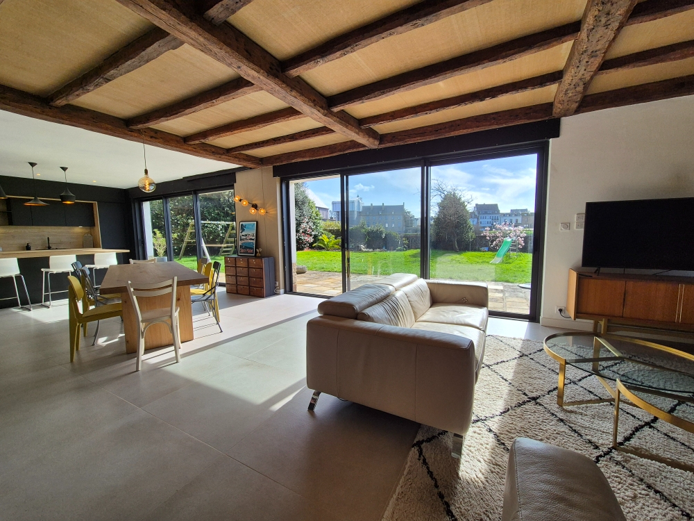 Il est des lieux où l'on se sent immédiatement bien. Au calme d'une impasse recherchée, sur les rives de l'étang de Pont-l'Abbé, Villa d'Ici vous propose cette demeure de caractère offrant un cadre de vie rare et privilégié. Ici, vous vivez au rythme de l'eau et de la lumière, tout en rejoignant le centre-ville à pied. Au rez-de-chaussée, une magnifique pièce de vie de 63 m² s'ouvre largement sur le jardin et l'étang grâce à de vastes baies vitrées. Poutres apparentes et murs en pierre lui confèrent un charme authentique, mêlé à une ambiance contemporaine. Le salon et la salle à manger s'y déploient harmonieusement, réchauffés par une cheminée en pierre intégrée dans l'angle, créant une atmosphère douce et conviviale. La cuisine ouverte prolonge naturellement cet espace tourné vers l'extérieur. Ce niveau comprend également deux chambres confortables, dont une suite parentale, une grande buanderie avec accès au garage, une salle d'eau et deux WC. A l'étage, cinq belles chambres, une mezzanine, un bureau, un salon, une salle d'eau et un WC complètent l'ensemble, offrant de nombreuses possibilités d'aménagement. Avec ses 15 pièces, cette propriété au potentiel rare pourra accueillir une grande famille, devenir une élégante résidence secondaire ou permettre de conjuguer vie personnelle et activité professionnelle, dans un environnement inspirant où l'art de vivre breton prend toute sa dimension. Une propriété signature pour celles et ceux qui recherchent une vue exceptionnelle et une adresse unique. Située au coeur de Pont-L'Abbé, à 10 minutes des plages et à 20 minutes de Quimper et de la gare. Contactez Bertrand CLAQUIN au 06 80 87 72 34. Les informations sur les risques auxquels ce bien est exposé sont disponibles sur le site Géorisques : https://www.georisques.gouv.fr (4.09 % honoraires TTC à la charge de l'acquéreur.)