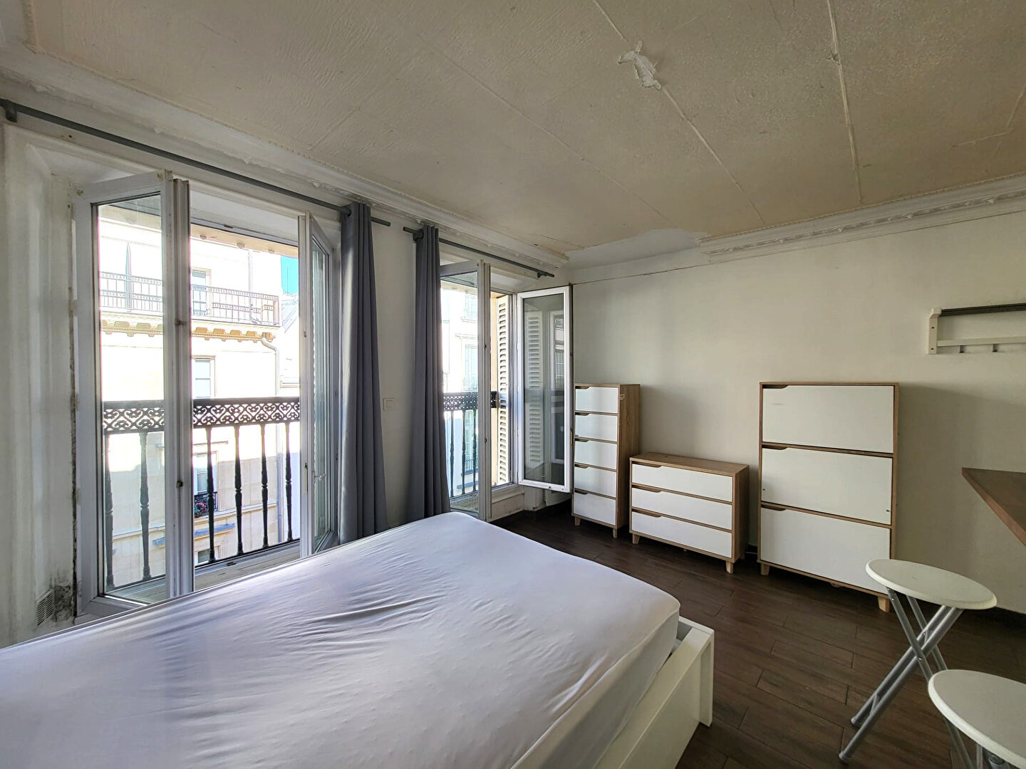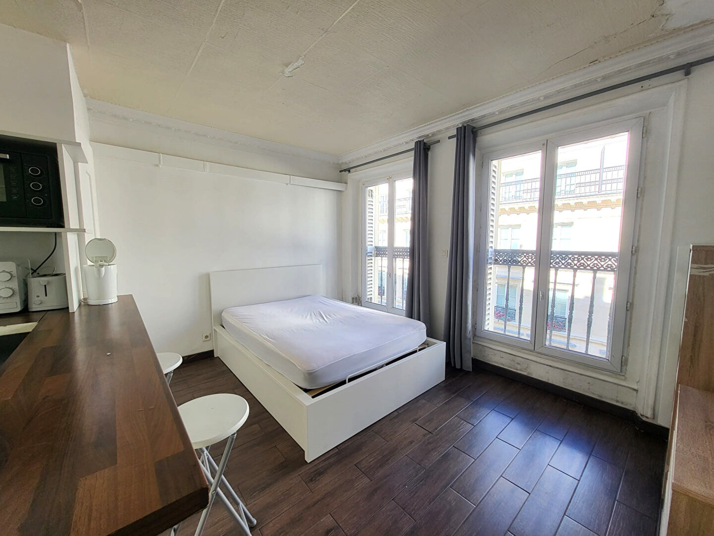 Métro Grands Boulevards, Rue de la Grange Batelière, Dans un bel immeuble ancien en PIERRE DE TAILLE, un studio de 18.37m² carrez au 4eme étage avec ascenseur, composé d'une pièce principale avec coin cuisine donnant sur 2 fenêtres, une salle d'eau douche avec WC, calme et lumineux. A saisir! Contact : 06.64.16.10.85.