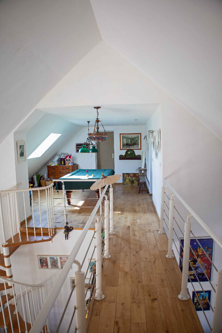 Seule mandataire. Venez découvrir cette agréable maison de 220m² environ édifiée sur un jardin paysager de 1502m². Vous serez séduits par ses volumes qui vous offrent de beaux et lumineux espaces de vie. Au rez-de-chaussée, une entrée avec rangements, un séjour agrémenté d'une cheminée insert, d'un coin bureau et d'une cuisine ouverte aménagée donne sur la terrasse dotée d'un jacuzzi ; un dégagement vous conduit vers une buanderie, une chambre avec placard, une salle d'eau/WC, un WC indépendant, une salle de bains, un espace pouvant être facilement cloisonné pour une chambre et un salon cathédral doté d'un poêle central. A l'étage, accessible par deux escaliers distincts, longez la passerelle pour découvrir une bibliothèque cosy (chambre possible) et une superbe salle de billard. Deux chaleureuses chambres dont une avec dressing et une petite salle d'eau/WC complètent ce niveau. Vient s'ajouter : un grand garage de 35m² offrant la possibilité de créer une mezzanine que vous aménagerez selon vos besoins. Une maison où il fait bon vivre dans un cadre bucolique. A votre disposition pour vous la faire visiter. Agent commercial SBisiaux 06.28.80.00.77 (3.17 % honoraires TTC à la charge de l'acquéreur.)