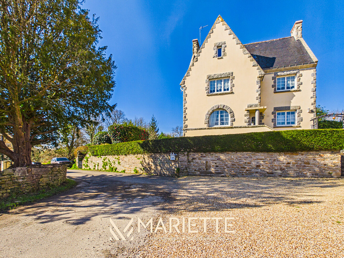 "MANER" Est cette maison de caractère entièrement rénovée, nichée au calme d'un hameau préservé, à seulement 5 km des commerces et services concarnois. Solidement ancrée dans son environnement et trônant à l'entrée de ce hameau paisible, la propriété séduit dès le premier regard par son architecture affirmée et l'utilisation de matériaux nobles qui soulignent son authenticité. A l'intérieur, l'atmosphère se veut chaleureuse et épurée. Les volumes généreux sont subtilement mis en lumière dans chaque pièce, offrant une sensation d'espace et de sérénité. Les nombreuses ouvertures traversantes permettent une agréable exposition est-ouest, invitant naturellement la lumière à accompagner les espaces de vie vers le jardin. Les vues dégagées sur les extérieurs rappellent à chaque instant le calme et la douceur de ce cadre privilégié. Une rénovation qualité qui saura séduire les amateurs de belles pierres et de nature, à découvrir auprès de notre agence Mariette Immobilier à Concarneau. La distribution : Sous-sol total (atelier / buanderie / cave) Entrée, WC, salon séjour, cuisine dinatoire Au 1er niveau : Dégagement, quatres chambres, salle d'eau avec WC Au 2 -ème niveau : Palier, chambres avec salle d'eau et WC, bureau Annexes : Abri de jardin, terrasse carrelée et un jardin arboré et paysagé. Ce que l'on aime : La situation géographique, les espaces extérieurs, la terrasse, le jardin arboré et paysagé, la construction, la distribution, la capacité d'accueil, la luminosité, l'absence de travaux. Points d'intérêts : A 5Km des plages et des sentiers A 5 Km des écoles Mariette Immobilier Conciergerie soutient la SNSM de Trévignon - Concarneau en leur reversant 1 % de chaque commission d'agence, afin de contribuer à leurs actions de prévention et de sauvetage en mer. (4.50 % honoraires TTC à la charge de l'acquéreur.)