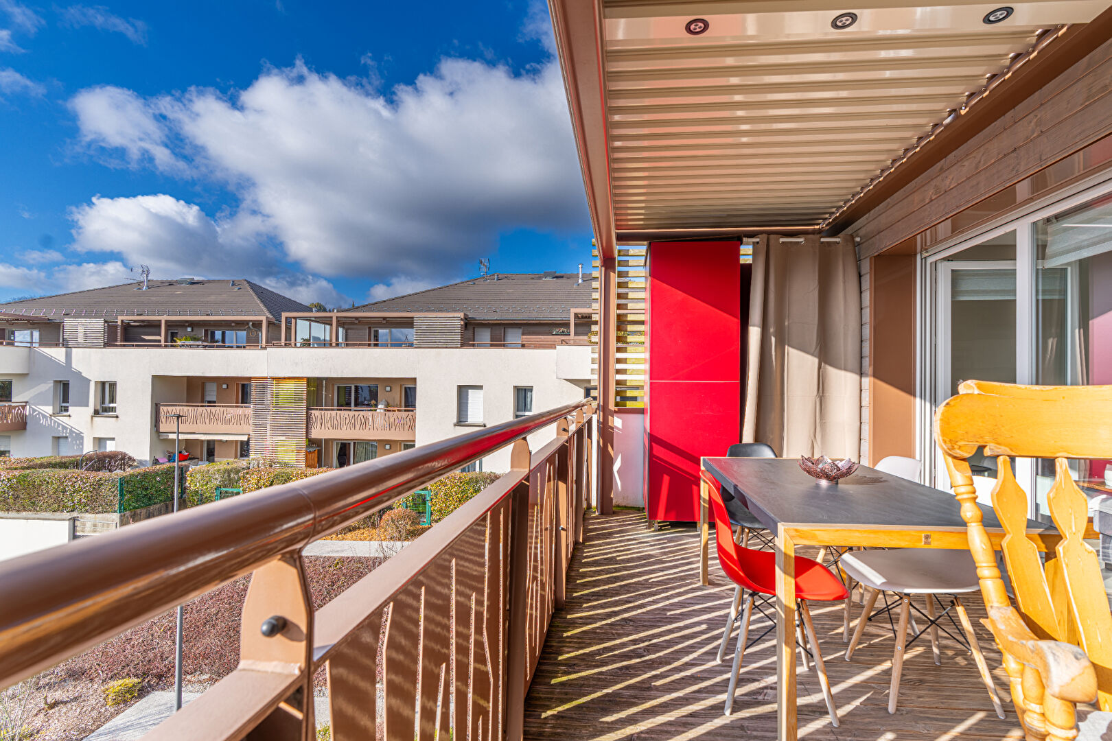 EXCLUSIVITE - A VENDRE - Appartement Epagny Metz Tessy 3 pièces 63.41 m2 - Place de parking en sous-sol et Garage en supplément Dans un environnement recherché et paisible sur la commune de Metz-Tessy, ce bel appartement T3 de plus de 63 m², situé au 2ème étage avec ascenseur d'une copropriété récente de 2016, est une véritable invitation au bien-être. Dès l'entrée, les placards sur mesure donnent le ton d'un intérieur pensé avec soin et élégance. La pièce de vie, baignée de lumière, séduit par son atmosphère chaleureuse et ses prestations de qualité, sublimée par une cuisine ouverte aménagée Arthur Bonnet, idéale pour partager de beaux moments du quotidien. Le séjour se prolonge sur une superbe terrasse équipée d'une pergola bioclimatique dont les lames orientables permettent de jouer avec la lumière, la ventilation et la protection contre les intempéries, offrant un confort absolu en toute saison. Entièrement fermable, cette terrasse devient un véritable cocon à l'abri des regards, une pièce supplémentaire où l'on imagine volontiers un coin lecture ou un espace détente. L'espace nuit propose deux chambres confortables, dont une avec lit escamotable intégré au mur, parfaite pour optimiser l'espace, et une seconde dotée d'un magnifique dressing, complétées par une salle de bains élégante et un WC indépendant. Une place de parking privative en sous-sol ainsi qu'un garage (à 20 000 euros) viennent compléter ce bien rare. Un appartement clé en main, aux finitions soignées, où l'on se projette immédiatement, idéal pour ceux qui recherchent un véritable coup de coeur mêlant confort, modernité et douceur de vivre aux portes d'Annecy. Ne manquez pas cette opportunité ! Ce bien vous est proposé par votre agence ERA IMMOBILIER ANNECY, n'hésitez pas à contacter notre conseillère Coralie DALLE (RSAC 900 821 208 EI) au 06 73 40 19 84 - coralie.dalle@eraimmo.fr Copropriété de 100 lots - dont 44 lots habitation. Charges annuelles : 1500 euros. Coralie DALLE (EI) Agent Commercial - Numéro RSAC : - ANNECY.
