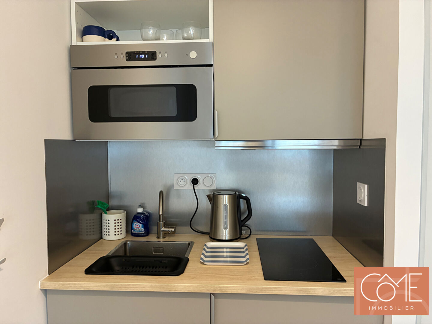 STUDIO MEUBLÉ - RÉSIDENCE NEUVE "MONTANA" - TERRASSE - PARKING - SAINT-MALO Le Cabinet Côme Immobilier vous propose à la location ce charmant studio meublé de 25 m², situé au rez-de-chaussée d'une résidence neuve, à proximité de l'hippodrome de Saint-Malo. La résidence récente offre des parties communes particulièrement soignées et élégantes, dans un environnement calme et agréable. L'appartement, meublé avec goût dans un style sobre et contemporain, se compose : d'une entrée avec placard, d'une pièce de vie lumineuse avec kitchenette aménagée et semi-équipée (plaques, hotte, four), d'un coin salon, d'une salle d'eau avec WC. Vous profiterez également d'une agréable terrasse de 7 m², idéale pour les beaux jours. Une place de parking privative complète ce bien. Situation idéale, à proximité de l'hippodrome de Saint-Malo et des commodités. Non fumeurs appréciés Contact direct pour visites et informations : Hortense POCHARD h.pochard@come-immobilier.fr 06 73 55 81 01 REF GES-2609 Les informations sur les risques éventuels liés à ce bien sont disponibles sur le site Géorisques : www.georisques.gouv.fr