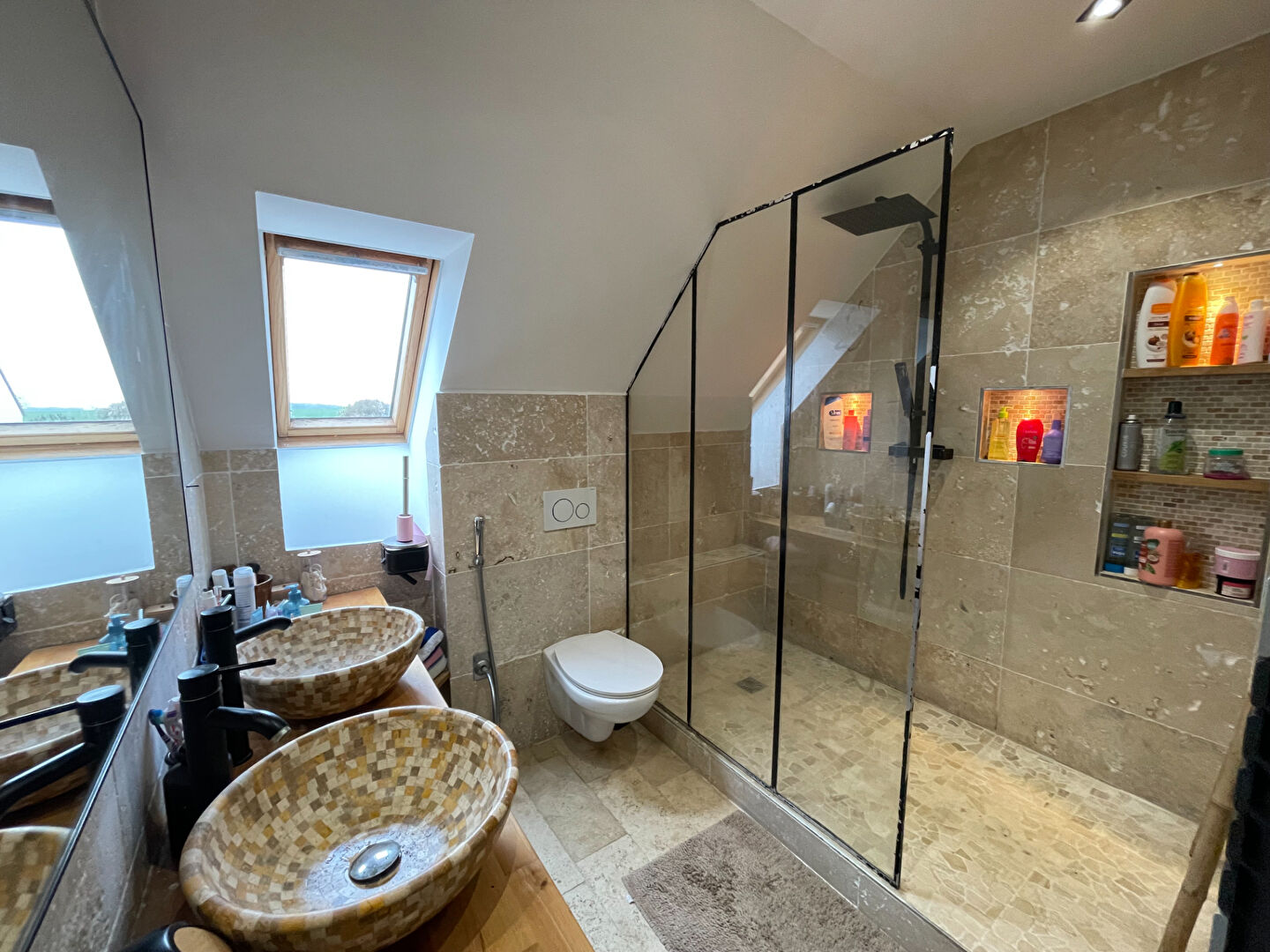 AGENCE EXPERT IMMOBILIER vous présente en exclusivité à Angerville, dans L'Essonne, proche ETAMPES, maison contemporaine des années 2010, édifiée sur un terrain clos de 728 m². D'une surface habitable de 115 m², elle se compose au rez-de-chaussée d'une entrée avec WC, d'un vaste séjour-cuisine équipée et aménagée de plus de 50 m² avec cheminée et insert, ainsi que d'une arrière-cuisine et d'un garage attenant. A l'étage, quatre belles chambres dont une suite parentale avec salle d'eau, un couloir desservant les trois autres chambres, une salle de bain avec douche à l'italienne, double vasque et WC. Prestations de qualité : adoucisseur d'eau, alarme, cheminée avec insert qui dessert toutes les chambres, ballon thermodynamique, climatisation réversible, chauffage au sol, portail électrique, proximité immédiate de la gare, cette maison allie confort et praticité. A visiter très rapidement Erick CHEDEAU 0673662545