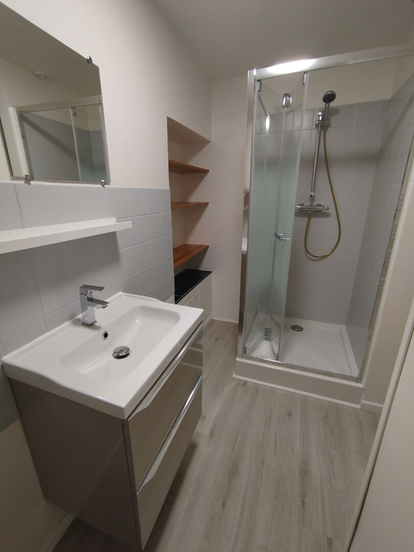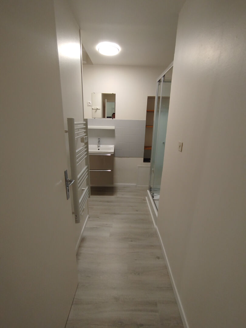 VIBRAYE. Appartement de 53 m² comprenant : entrée sur salon/séjour avec coin cuisine aménagée et équipée (plaque induction, hotte, four), une chambre avec dressing, une salle d'eau, et WC indépendant. Interphone. 1 Place de parking privé. Chauffage individuel par convecteurs électriques. Assainissement tout à l'égout. Loyer 490 euros/mois + 25 euros de charges mensuelles (entretien et électricité des parties communes, consommation d'eau avec régularisation annuelle). Dépôt de garantie : 490 euros Honoraires d'agence : 371 euros Possibilité de cave en supplément du loyer (11 euros/mois) DISPONIBLE DE SUITE