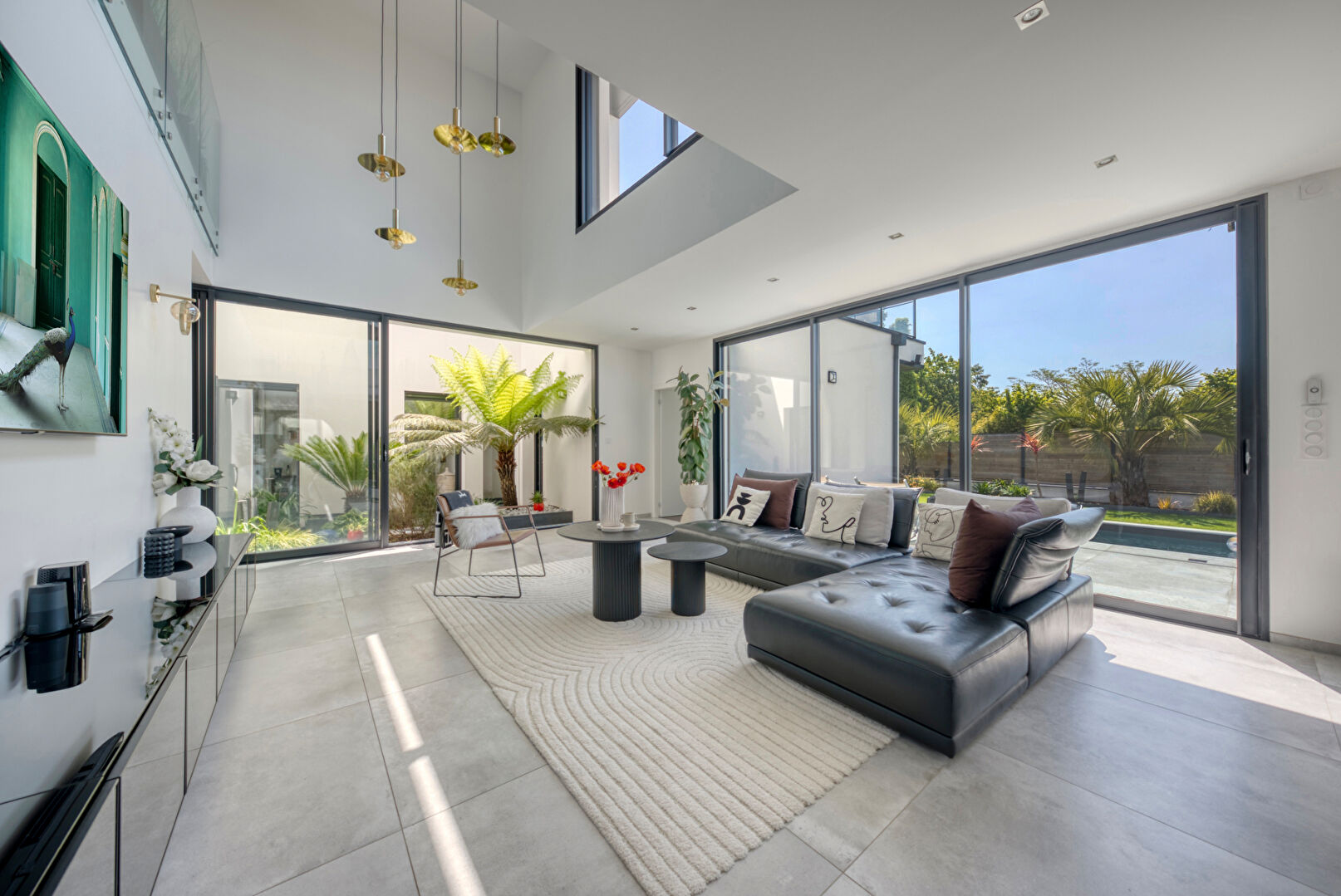 KADENCE IMMOBILIER - Située hors lotissement, dans un environnement champêtre et résidentiel à 10 min de Rennes, cette villa californienne d'architecte (2021) de 252 m² incarne l'équilibre parfait entre design, lumière et confort absolu. Construite en brique rouge et équipée d'une VMC double flux à haut rendement, elle assure une régulation naturelle des températures et un confort thermique exceptionnel en toutes saisons. État irréprochable, aucun frais à prévoir. Architecture et volumes Maison semi-plain-pied, avec plus des deux tiers de la surface en rez-de-chaussée. L'entrée magistrale toute hauteur s'ouvre sur un espace de vie baigné de lumière, sublimé par un escalier banché sculptural, véritable oeuvre d'art. Le salon cathédrale avec vide sur séjour communique avec le patio central, créant une atmosphère apaisante et lumineuse. Les autres volumes ? cuisine, salle à manger et chambres ? conservent des proportions harmonieuses et fonctionnelles. Distribution et confort 4 suites indépendantes, chacune avec douche à l'italienne : 2 suites en rez-de-chaussée, dont une superbe suite master de 37 m² avec dressing et accès direct au jardin, 2 suites à l'étage, idéales pour enfants ou invités, offrant indépendance et intimité. Maison très agréable à vivre, pensée dans le moindre détail pour un confort quotidien optimal. Extérieurs Terrain paysagé de 600 m², sans vis-à-vis et sans mitoyenneté. Au rez-de-chaussée, une terrasse sur dalle grand format prolonge la pièce de vie et encadre la piscine couloir de nage automatisée avec volet immergé. A l'étage, une grande terrasse bois de 80 m² offre une vue dégagée sur la campagne environnante, idéale pour les repas d'été ou les couchers de soleil. Un portail motorisé sur mesure, un système de vidéosurveillance et une alarme connectée complètent l'ensemble. Commune dynamique et recherchée : commerces, écoles, collège, installations sportives et lac communal à proximité immédiate. Performance et confort Classe énergétique A (35 kWh/m²/an) Consommation totale (chauffage, électricité, eau chaude + piscine) : env. 230 euros/mois Brise-soleil orientables, casquettes californiennes, VMC double flux, isolation et orientation optimisées Surface habitable : 252 m² hors garage (+30m²) et local technique piscine en dur (+7m²). Surface totale : 289 m² Terrain : 600 m² entièrement paysagé. RK0513 - Visite virtuelle immersive disponible sur notre site www kadence-immobilier fr