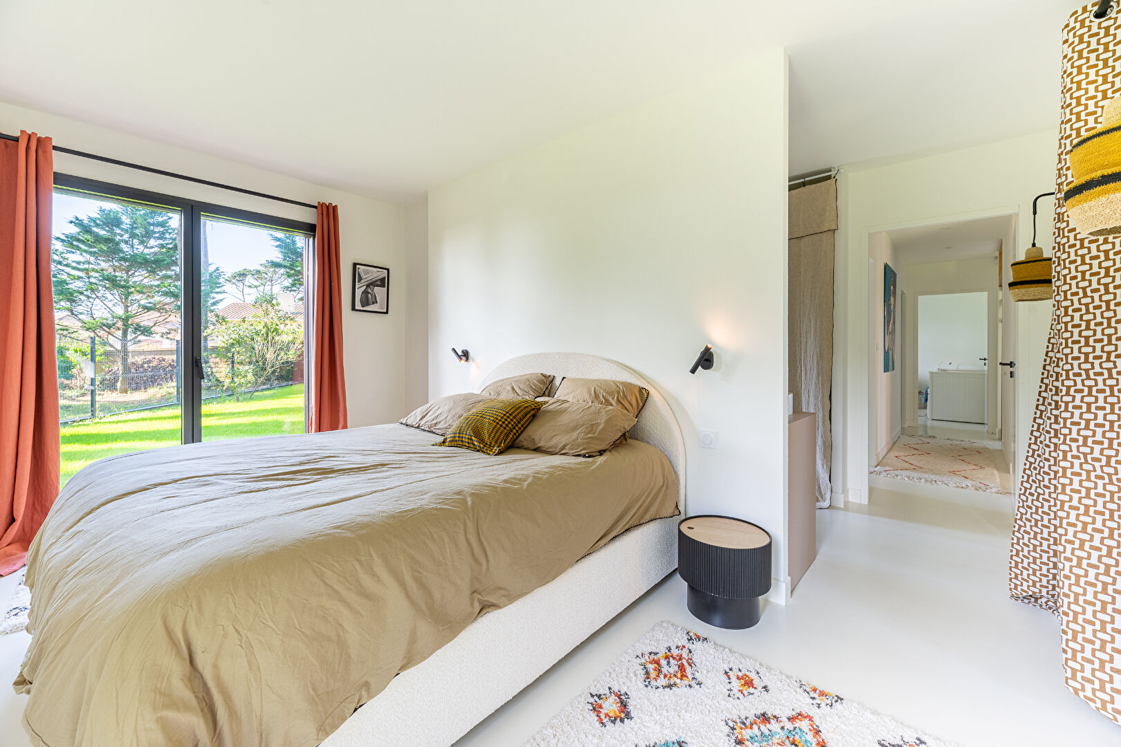 Venez découvrir, les belles prestations de cette élégante villa contemporaine lumineuse, idéalement située à deux pas de la plage Margaret et des commerces et marché, au calme dans un écrin de verdure sur son beau terrain arboré et clos. La maison principale se compose d'une entrée avec placard, un salon-séjour très lumineux, une cuisine aménagée et équipée, une arrière-cuisine, un WC, une loggia et une terrasse. Un dégagement dessert l'espace nuit composé d'une suite parentale (chambre, dressing, salle d'eau avec WC), deux chambres, une salle d'eau avec WC. Le logement annexe se compose d'une entrée, deux chambres, une salle d'eau, un WC et un garage. Environnement privilégié, emplacement idéal entre plage et commerces, élégance, luminosité, prestations de qualité.... A découvrir et laissez le charme agir.... Le prix indiqué s'entend frais d'agence inclus soit 1 300 000 euros net vendeur + 4.50 % d'honoraires à la charge de l'acquéreur. - Les informations sur les risques auxquels ce bien est exposé sont disponibles sur le site Géorisques : www.georisques.gouv.fr -Reference du mandat : 1184 (4.50 % honoraires TTC à la charge de l'acquéreur.)