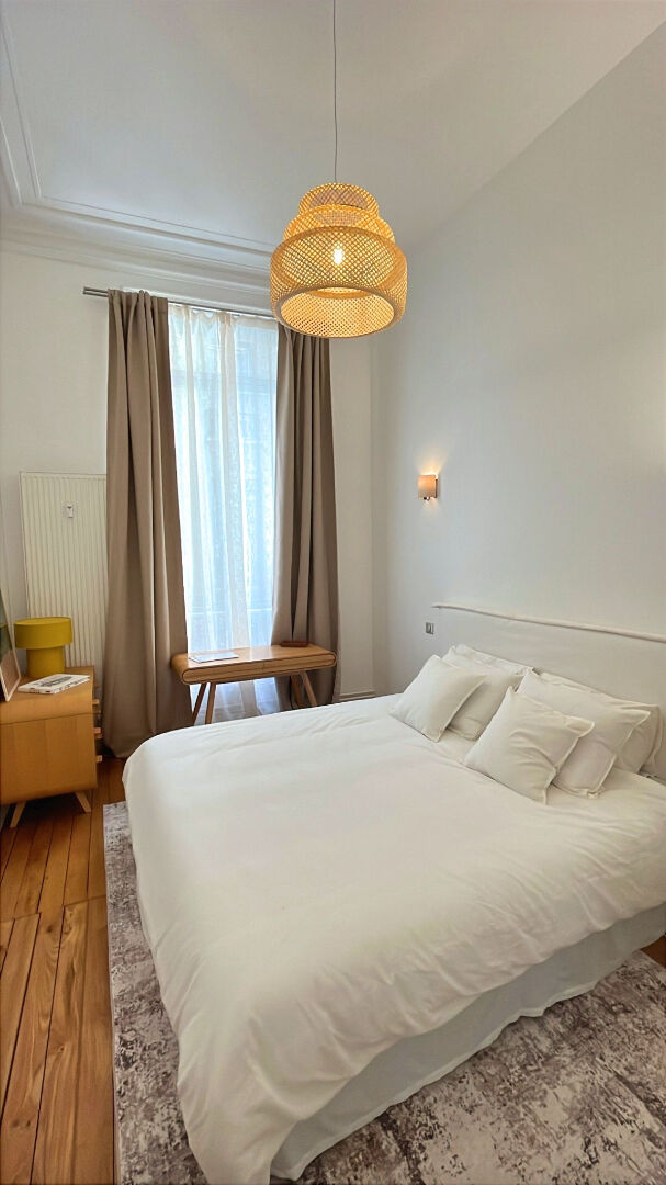Saint-Philippe du Roule Au deuxieme etage au calme absolu sur jardins au sein d'un bel immeuble ancien 1898 securise avec gardiens, charmant appartement trois pieces de 86 m2 meublée entiérement renové, agencé comme suit : entrée, reception, avec cheminée donnant sur jardins avec vue degagée, cuisine independante équipée, deux chambres avec rangements, une salle de bains, un wc independants. Emplacement tres recherche au coeur du Quartier Europe, au calme sans vis a vis, elements anciens conservés : parquets, moulures, cheminees, decoration moderne contemporaine. Bail code civil Disponible debut Mai 2026 Loyer hors charges : 4 600 Euros Charges forfaitaires : 400 Euros Depot de garantie : 9 200 Euros Honoraires : 6 624 Euros TTC etat des lieux inclus