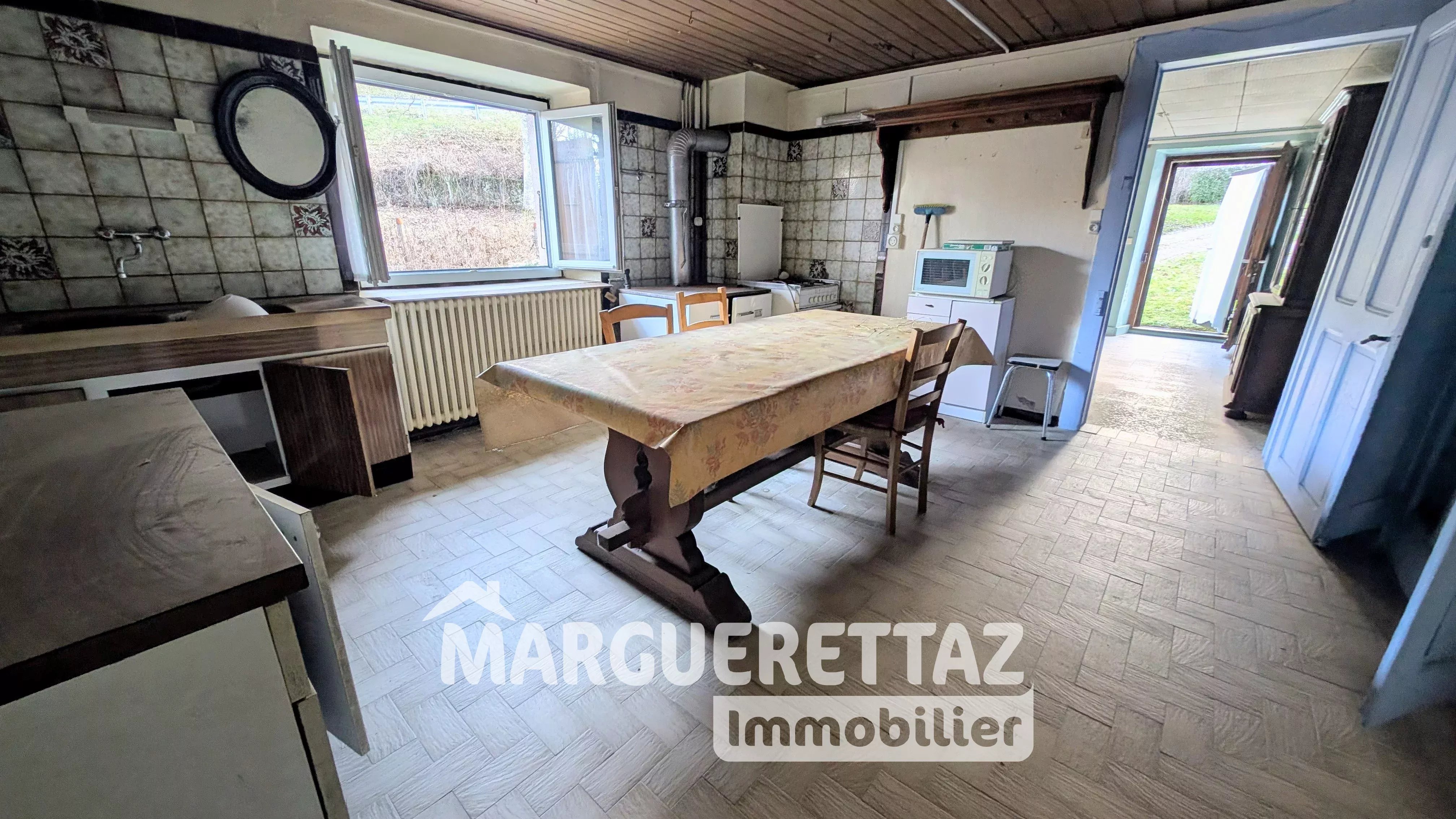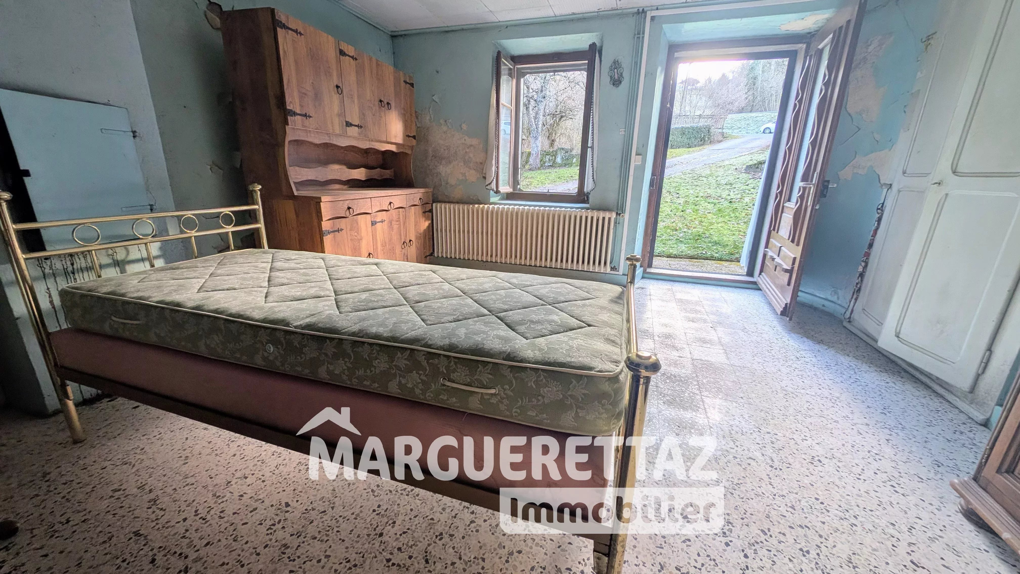 EXCLUSIVITÉ – Saint-Jean-de-Tholome – Ancienne bâtisse à rénover sur 4 884 m² en zone naturelle (N) En bordure de ruisseau, cette ancienne maison à rénover intégralement offre un beau potentiel pour les amateurs de projets de rénovation, dans un cadre naturel. Composition : Rez-de-chaussée : 3 pièces + salle de bains, WC séparés, chaufferie. Étage : deux pièces communicantes, accessibles par un petit escalier bois (type échelle). LA MAISON N'EST PAS HABITABLE EN L'ETAT. Le potentiel se situe dans la grange à aménager qui constitue une réelle opportunité d’agrandissement. Annexes : cave et double garage indépendant. Terrain : parcelle de 4 884 m² située en zone N (naturelle) : aucune construction supplémentaire n’est possible. Assainissement : absence d’assainissement individuel. Fosse septique à créer (devis effectué). Travaux : rénovation totale à prévoir (toiture, électricité, plomberie, sanitaires, menuiseries, isolation, assainissement, etc...). Servitude : une servitude de passage longe la maison afin de desservir une habitation voisine. Le bâtiment étant classé "patrimonial" et se situant en zone de risque crue torrentielle et glissement de terrain, il ne sera possible d'aménager qu'une seule unité d'habitation. Montant estimé des dépenses annuelles d'énergie pour un usage standard : entre 5320€ et 7240€ par an. Prix moyens des énergies indexés en 2021/2022/2023 (abonnement compris) Logement à consommation énergétique excessive : classe G Les informations sur les risques auxquels ce bien est exposé sont disponibles sur le site Géorisques : www.georisques.gouv.fr Murielle MARGUERETTAZ (EI), agent commercial indépendant immatriculé au RSAC de ANNECY sous le numéro 839 201 092, de l’agence immobilière Marguerettaz, carte professionnelle CPI 7401 2016 000 014 122