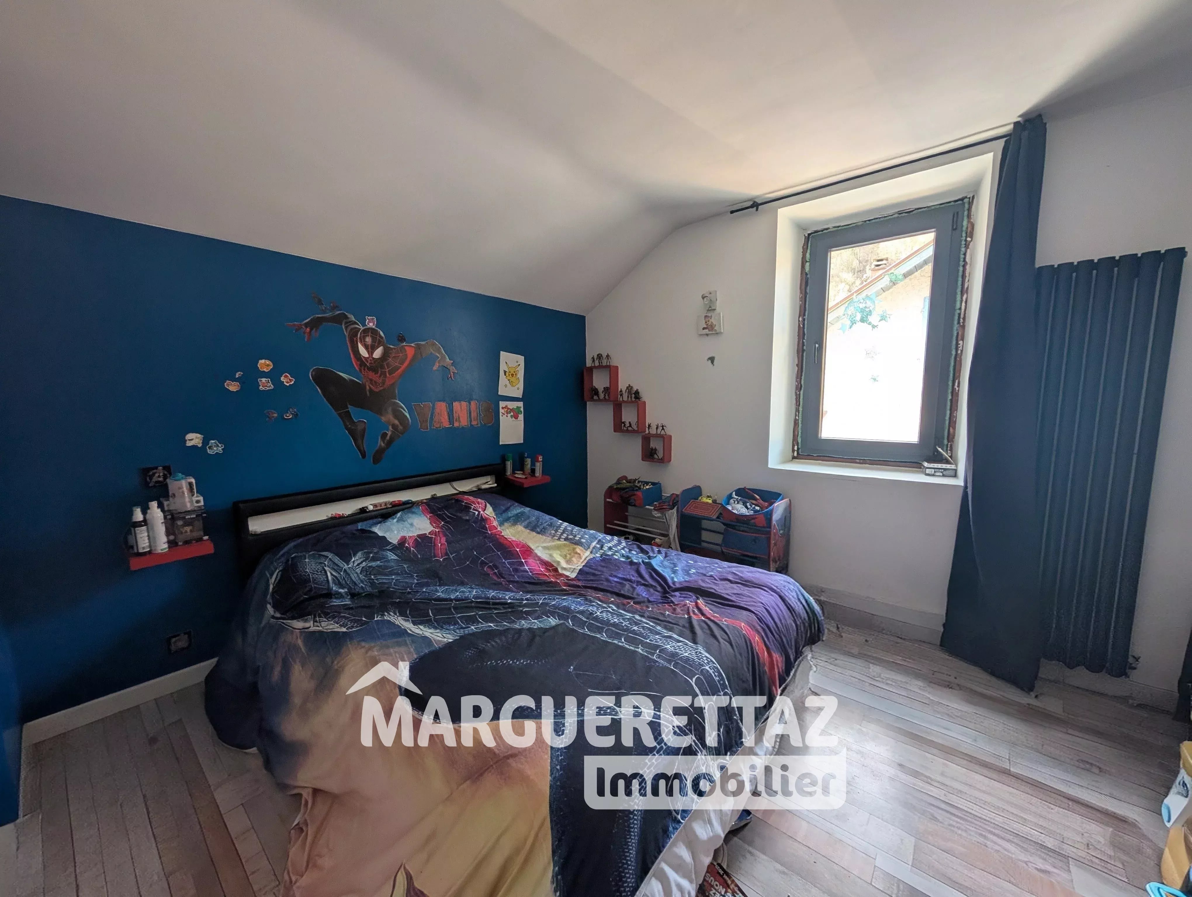 En exclusivité Sur la commune de Marignier, limite St Jeoire, dans un quartier calme, venez découvrir cette maison mitoyenne de 90m² habitables pour 120m² utiles, répartie sur deux étages (avec cave en sous sol) et comprenant : Au sous sol Une cave, et un espace chaufferie Au rez-de-jardin Une entrée type véranda, un WC séparé avec lave mains, une première chambre de 10m², un cellier, une salle d'eau de 5m², une cuisine semi fermée équipée de 12m², un coin séjour de 10m² et un salon séjour de 18m² donnant accès au jardin de 500m² en expo SUD OUEST. Au R+2 Un WC séparé et deux chambres de respectivement 13 et 11m² La maison est située dans un hameau calme et elle profite d’une vue dégagée sans vis à vis. La maison profite d'un jardin de 500m² entièrement clos. Côté technique - Chauffage électrique via Pompe à Chaleur - Rénovations récente (toiture, façade, isolation réalisée en 2020) Plus d'informations par téléphone :) Logement à consommation : classe C Montant estimé des dépenses annuelles d'énergie pour un usage standard : entre 940 € et 1320€ par an. Prix moyens des énergies indexés en 2025 (abonnement compris)