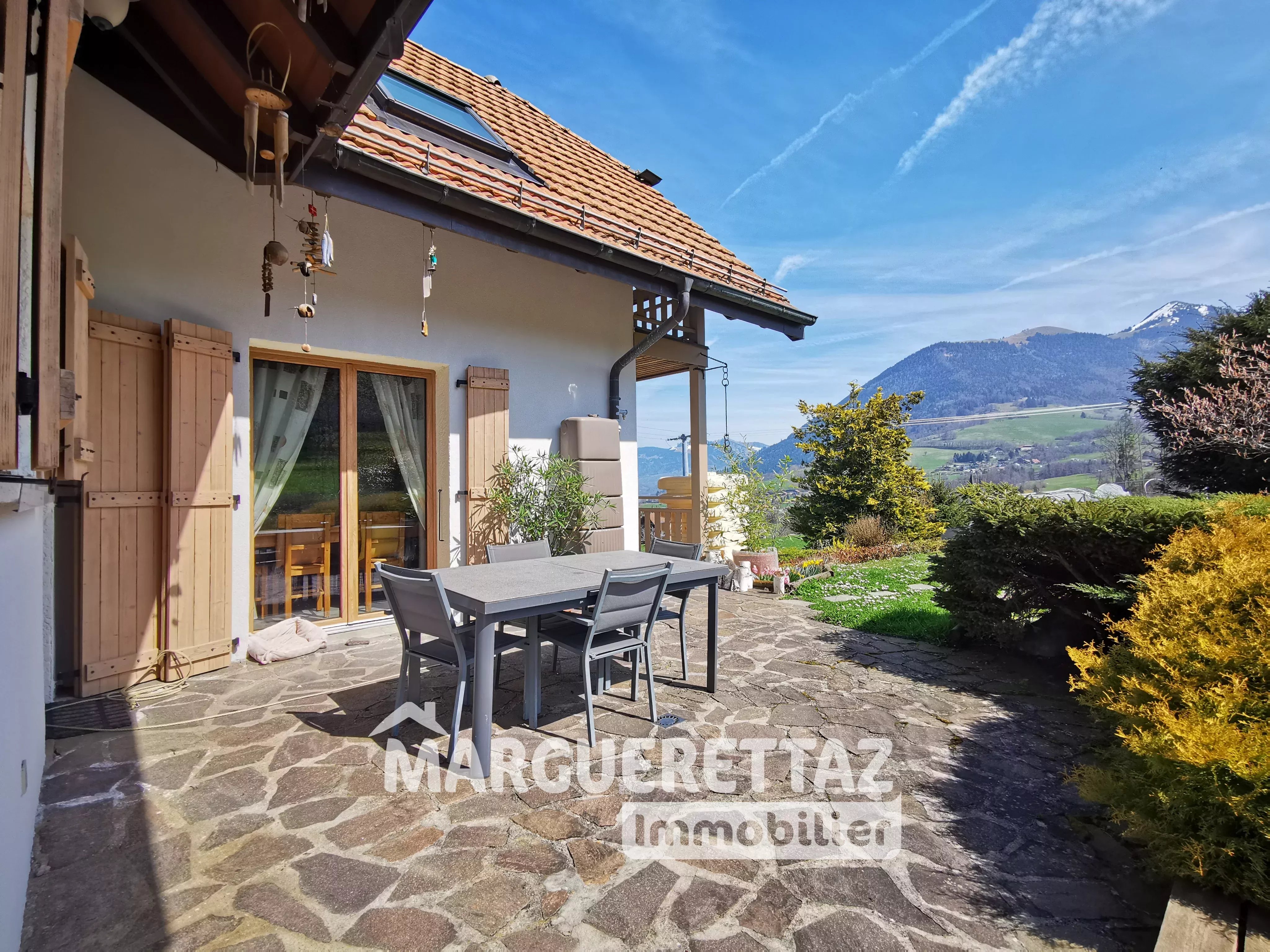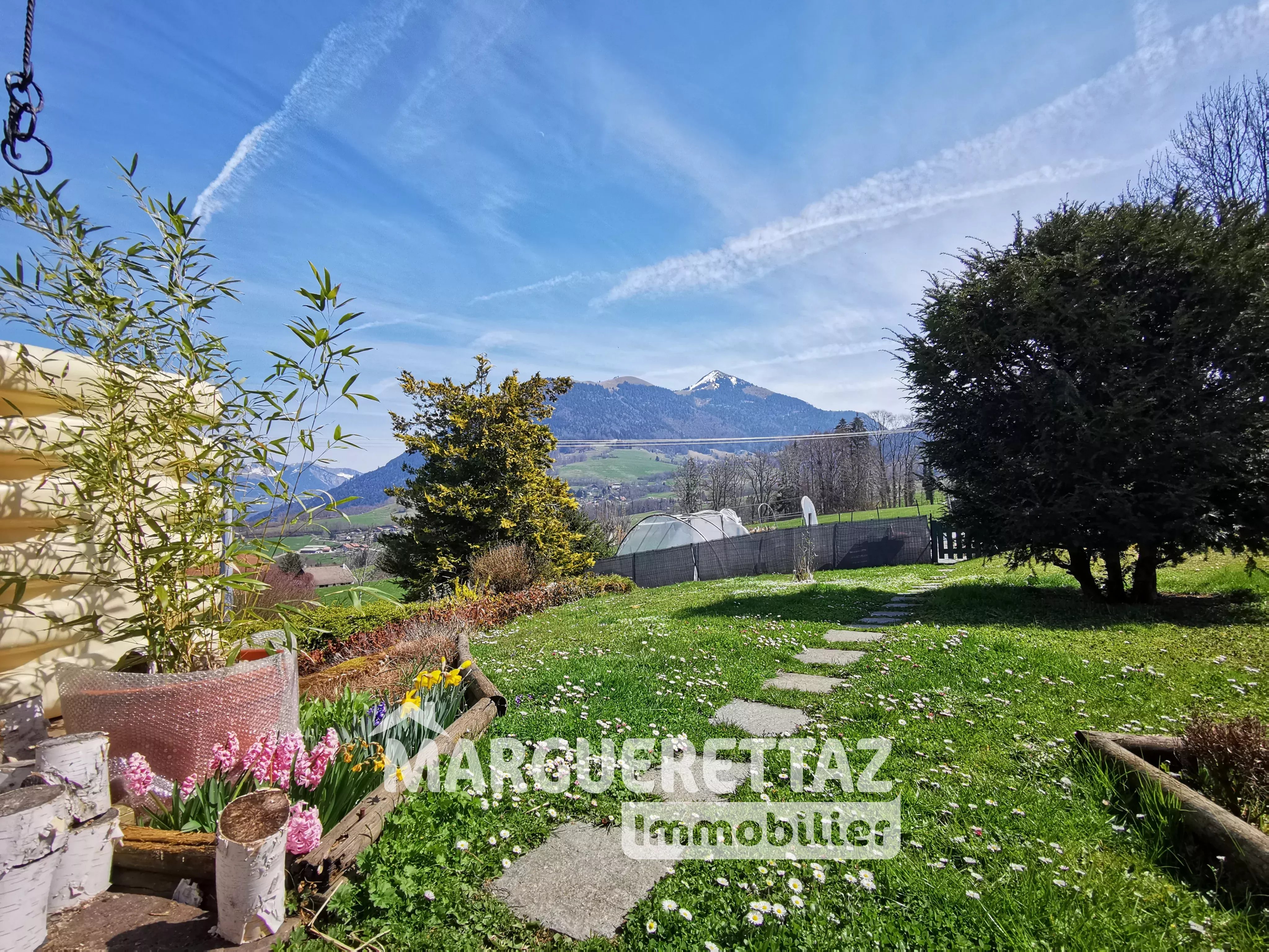 EXCLUSIVITÉ - SAINT-JEAN-DE-THOLOME - 20KM DE LA DOUANE DE THONEX - 25KM DU COEUR DE GENÈVE - 10KM DE L'ENTRÉE DE L'AUTOROUTE - VUE MÔLE IMPRENABLE - CALME - VOLUME ET QUALITÉ DE CONSTRUCTION - SOUS-SOL COMPLET - BELLE PARCELLE DE TERRAIN CONSTRUCTIBLE JOLIMENT AMÉNAGÉE ET ARBORÉE - EN LIMITE DE ZONE AGRICOLE INCONSTRUCTIBLE PLUS DE PHOTO SUR NOTRE SITE INTERNET : https://marguerettaz.immo/fr/ Au dessus du brouillard hivernal,très au calme, environnement résidentiel, vaste maison cossue de 1988 parfaitement entretenue, 243 m²utiles dont 155 m² habitables environ, grande pièce de vie, 4 ou 5 chambres, 2sdb/sde, 2wc, et sous-sol complet d'environ 88 m², sur 1353 m² de terrain constructible et piscinable parfaitement aménagé et arboré. Implantée en limite de zone agricole inconstructible, dans un environnement résidentiel peu dense, paisible et bucolique, cette confortable maison de famille, construite et entretenue avec soin, dans les règles de l'art, propose au rez-de-chaussée : un hall d'entrée, une belle pièce de vie exposée plein Sud avec poêle à bois et une cuisine ouverte équipée, l'ensemble donnant sur une vaste terrasse en pierre naturelle, et une seconde terrasse en bois, chacune jouissant d'une belle vue dégagée sur le Môle/montagne, un dégagement, une toilette indépendante, une salle de bains et une confortable chambre. À l'étage, vous trouverez un vaste espace ouvert en mezzanine d'environ 26 m² (chambre supplémentaire aisément réalisable tout en conservant un espace bureau très confortable), une salle d'eau avec toilette, et 3 confortables chambres, chacune donnant sur un grand balcon filant avec au choix vue Môle/montagne ou vue jardin. Le sous-sol, partiellement enterré, se compose d'un dégagement avec nombreux rangements, une vraie cave avec sol en galets, un garage avec un espace atelier, une buanderie et une pièce indépendante de plus de 20 m² équipée de fenêtre, exploitable en second atelier, jardin d'hiver ou aménageable en studio si besoin. Un local pour le stockage du bois accessible depuis l’extérieur vient en complément. Cette belle bâtisse de très bonne facture, construite en 1988 par un charpentier compagnon de France, est implantée sur un terrain parfaitement fleuri, arboré et aménagé de 1353 m² avec allée et cour goudronnée, car-port disposant d'un abri à bois attenant, abri de jardin, terrasse dallée en pierre naturelle, terrasse en bois, espace potager clôturé, cuves de récupération d'eau pluviale... Cette maison aux finitions soignées, choyée par sa propriétaire actuelle, a bénéficié de nombreux travaux récents et jouit de nombreux atouts : construction de belle qualité en siporex, avec charpente traditionnelle réalisée par un compagnon de France et isolation des combles refaite en 2023 avec 35 cm de ouate de cellulose garantissant un confort optimal en toutes saisons, menuiseries PVC récentes en triple vitrage au RDC (double vitrage bois sur tout le reste de la maison), fenêtres de toit remplacées récemment (2014 et 2019), chauffage central et poêle à bois en pierre réfractaire de 2018, salle de bains et salle d'eau entièrement rénovées récemment, carrelage du rez-de-chaussée refait en 2015, volets sablés et rénovés en 2018, façade ravalée il y a moins d'un an... Vous recherchez une spacieuse maison familiale en parfait état, dans un environnement calme et naturel, jouissant d'une belle vue dégagée sur le Môle et les montagnes environnantes, tout en restant proche de toutes les commodités, des accès autoroutiers et de Genève ? Cette maison pourrait bien être faite pour vous ! Pour plus d'informations ou pour une visite, contactez-moi : Maud MOYRIAT - 06 34 45 63 90 - maud.moyriat@marguerettaz.immo Niveau de consommation énergétique : E - 295 énergie primaire / 267 énergie finale Niveau émission des gaz à effet de serre : E - 61 Coût annuel estimé d’énergie du logement pour un usage standard : de 4900€ à 5425€ par an Les informations sur les risques auxquels ce bien est exposé sont disponibles sur le site Géorisque : www.georisque.gouv.fr Maud MOYRIAT (EI), agent commercial indépendant immatriculé au RSAC de Thonon-les-Bains sous le numéro 843 227 042, de l’agence immobilière Marguerettaz, carte professionnelle CPI 7401 2016 000 014 122.