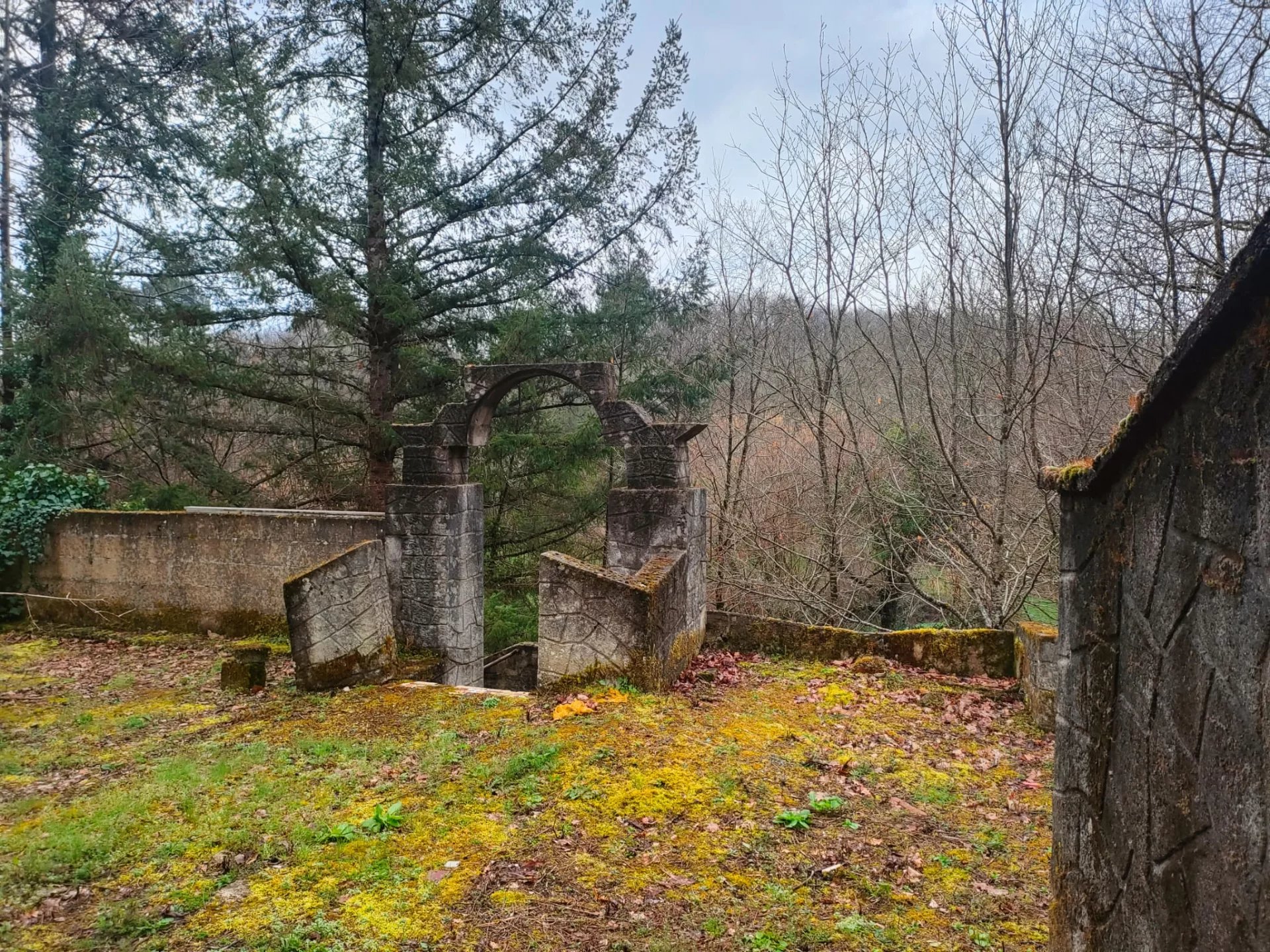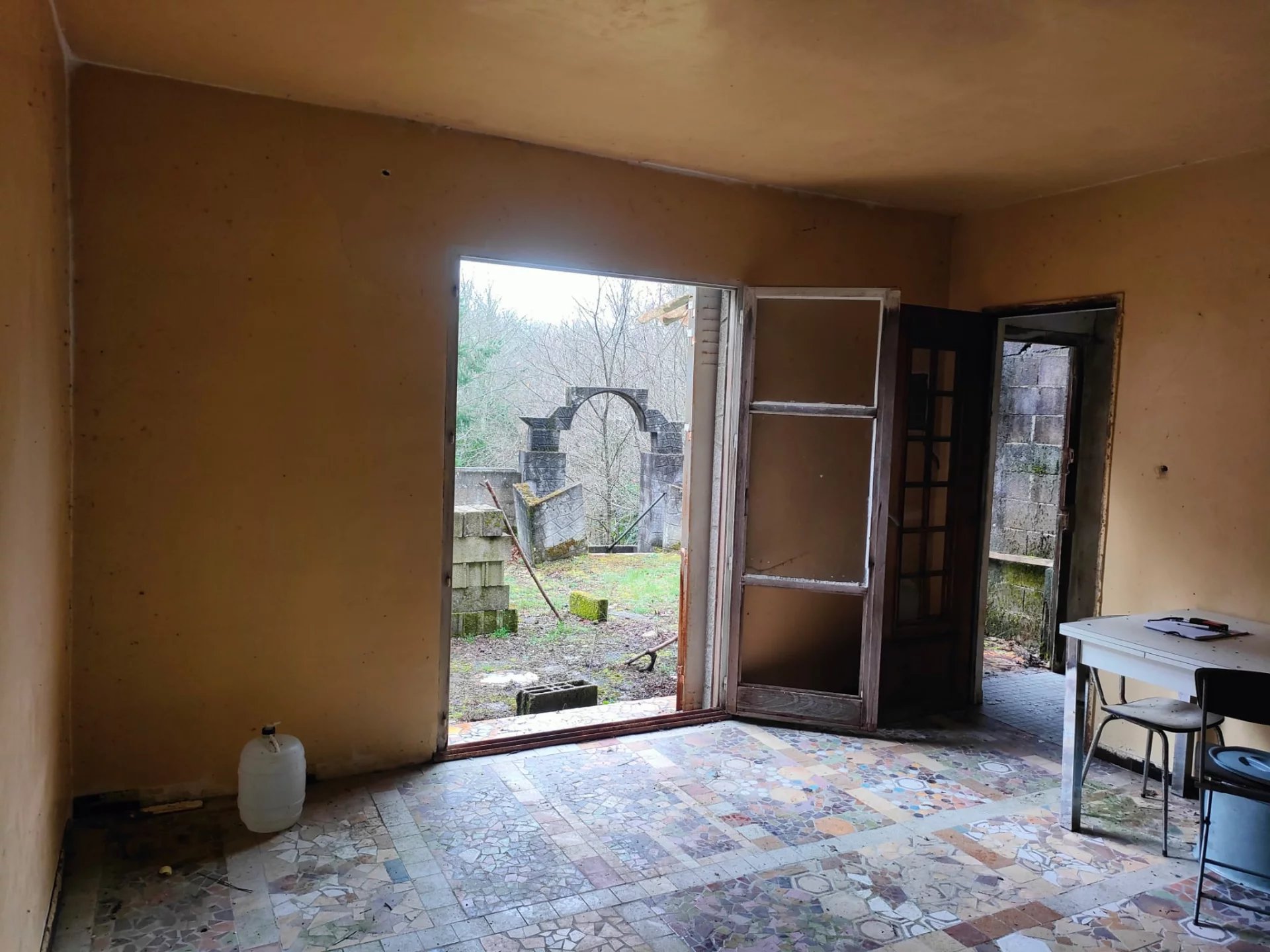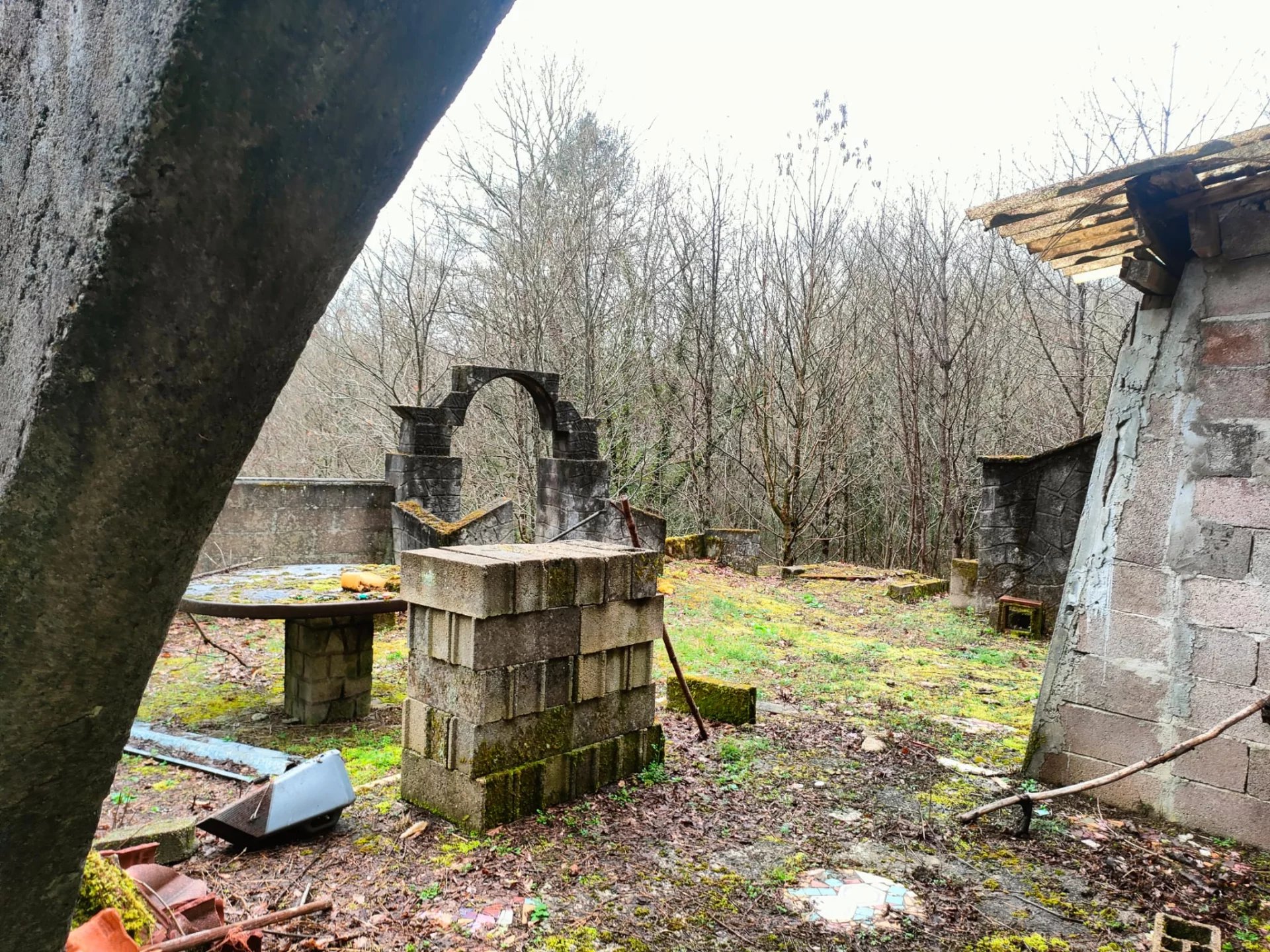 Sans voisins proches et bénéficiant de superbes vues dégagées. cette propriété offre un cadre idéal pour un projet de vie en autonomie. Exposée plein sud. elle profite d’un excellent ensoleillement. parfait pour l’installation de panneaux solaires. Un ancien puits assure également un accès à l’eau toute l’année. La maison principale. projet resté inachevé. comprend un séjour avec sol en mosaïque. une cuisine. deux chambres. une salle de bains et des WC. Plusieurs dépendances viennent compléter l’ensemble et offrent un fort potentiel d’aménagement selon vos projets. Le tout est implanté sur plus de 6 000 m² de terrain (un peu plus de 1.5 acre). avec une partie ensoleillée idéale pour le potager ainsi que des arbres. parfait pour un mode de vie proche de la nature et autosuffisant.