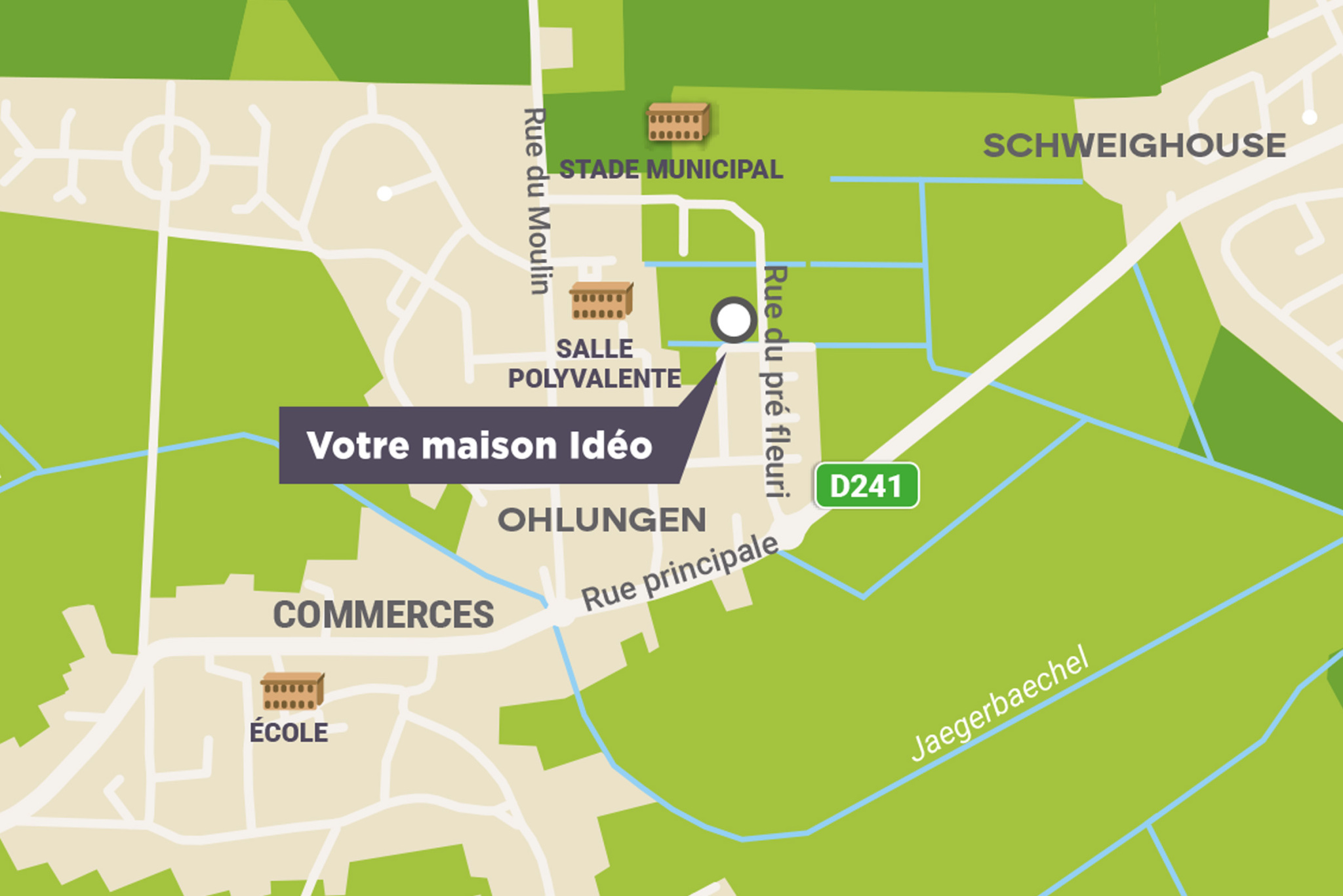 Nouveau programme immobilier à Ohlungen Lotissement « Le Pré Fleuri » Implanté dans un environnement paisible et verdoyant à Ohlungen, le lotissement « Le Pré Fleuri » vous offre une qualité de vie rare, entre charme rural et dynamisme local. À seulement quelques minutes de Haguenau et de Schweighouse-sur-Moder, cette adresse privilégiée conjugue tranquillité résidentielle, vie active, proximité des commodités et accès rapide aux principaux axes. Découvrez un programme exclusif de 4 maisons neuves confortables et clés en main, conçu pour répondre aux attentes des familles en quête de confort, de modernité et de sérénité. Nous vous proposons 4 maisons 4 pièces, d'une surface habitable comprise entre 85,74 m2 et 90,08 m2, livrées clés en main, avec : o Jardin privatif clôturé et engazonné o Terrasse exposée Ouest (10 m2) pour profiter pleinement des beaux jours o Garage fermé o Deux places de stationnement privatives Conformes à la RE 2020 seuil 2025, ces maisons allient performance énergétique, confort thermique et respect de l'environnement. Des prestations de qualité pensées pour votre bien-être o Chauffage au sol par pompe à chaleur air/eau o Parquet stratifié dans les chambres o Carrelage dans les pièces de vie et pièces d'eau o Une salle d'eau avec douche à l'italienne o Une salle de bain avec baignoire o Deux WC Un agencement optimisé et fonctionnel Dès l'entrée, vous découvrez un espace avec placard intégré. Le rez-de-chaussée s'ouvre sur un salon-séjour lumineux avec cuisine ouverte, une salle d'eau avec douche et WC, et un accès direct à la terrasse et au jardin. À l'étage, quelques marches vous conduisent vers un dégagement desservant un espace de rangement, trois chambres ainsi qu'une salle de bains équipée d'une baignoire et de WC. Des avantages financiers très intéressants Profitez de conditions d'achat avantageuses du PSLA : o TVA réduite à 5,5 % (au lieu de 20 %) o Exonération de taxe foncière pendant 15 ans o Éligible au Prêt à Taux Zéro (PTZ) o Frais de notaire réduits Un programme à taille humaine, où chaque détail a été pensé pour votre confort et votre sérénité. Une opportunité rare d'accéder à la propriété dans un environnement verdoyant et recherché. Votre projet immobilier mérite un accompagnement sur mesure. Parlons-en ensemble dès aujourd'hui !