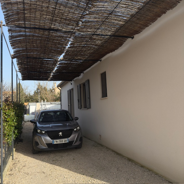 Grande pergola pour le stationnement des voitures.