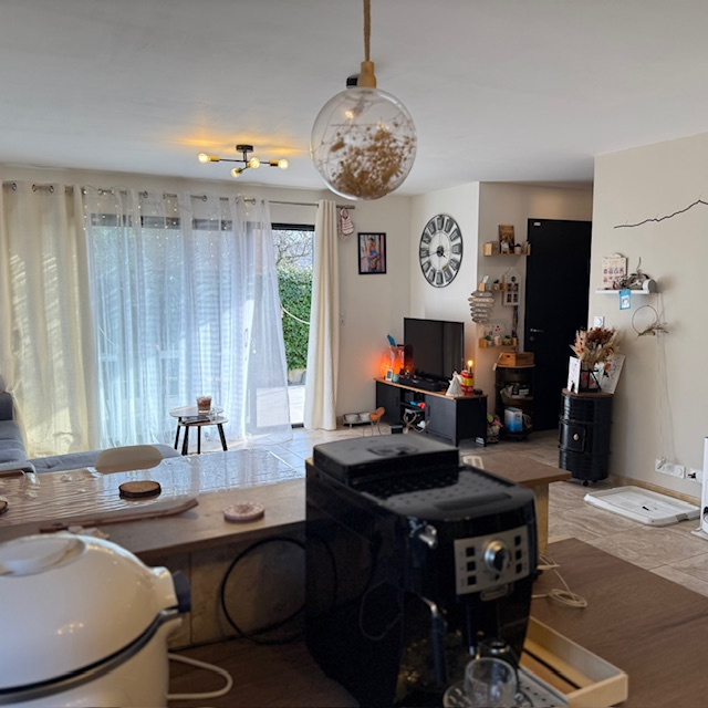En poussant la porte vous entrez dans la vaste pièce à vivre avec cuisine ouverte donnant sur la terrasse avec pergola et d'un cellier.