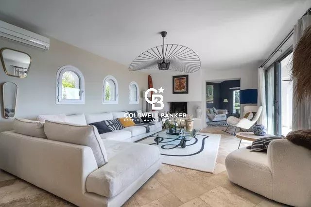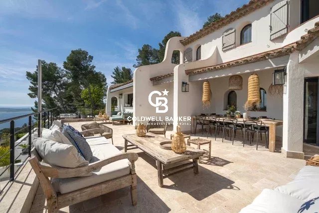 A quelques minutes de l'aéroport d'Hyères, cette magnifique villa rénovée récemment, à la décoration soignée et élégante, offre une vue époustouflante sur le double tombolo de Giens et les îles d'Hyères. Implantée sur un terrain de 1100m² offrant une incroyable piscine à débordement chauffée, cette propriété est le cadre rêvé pour une résidence secondaire ou pour y vivre toute l'année et ainsi savourer pleinement le charme méditerranéen et les attraits de la région tout en préservant une sérénité absolue! Une très belle cuisine dinatoire et son arrière-cuisine, une pièce de vie offrant un espace salon cocooning et un espace réception très convivial ouvrant sur la terrasse sud à la vue mer omniprésente en font un bien rare et d'exception. L'étage, depuis lequel la vue mer est somptueuse, est réservé à la magnifique suite parentale et son dressing. Quant à l'espace en niveau inférieur, il pourra être dédié aux enfants ou aux amis, avec ses 4 chambres, son bureau, sa bibliothèque et ses salles d'eau! A découvrir: une annexe de 25m² et la possibilité de créer une salle de sport! Une superbe propriété dans laquelle il sera possible de vivre de magnifiques moments de plénitude, partage et convivialité dans un cadre idyllique! Marlène Sardi COLDWELL BANKER BEAU RIVAGE EI RSAC de Toulon 912773223 +33 (0)6 99 20 66 96 marlene.sardi@coldwellbanker.fr Les informations sur les risques auxquels ce bien est exposé sont disponibles sur le site Géorisques : www.georisques.gouv.fr "La propriété se situe dans une zone soumise à l'obligation de débroussaillement. Les informations sur les risques auxquels ce bien est exposé sont disponibles sur le site Géorisques : www.georisques.gouv.fr"