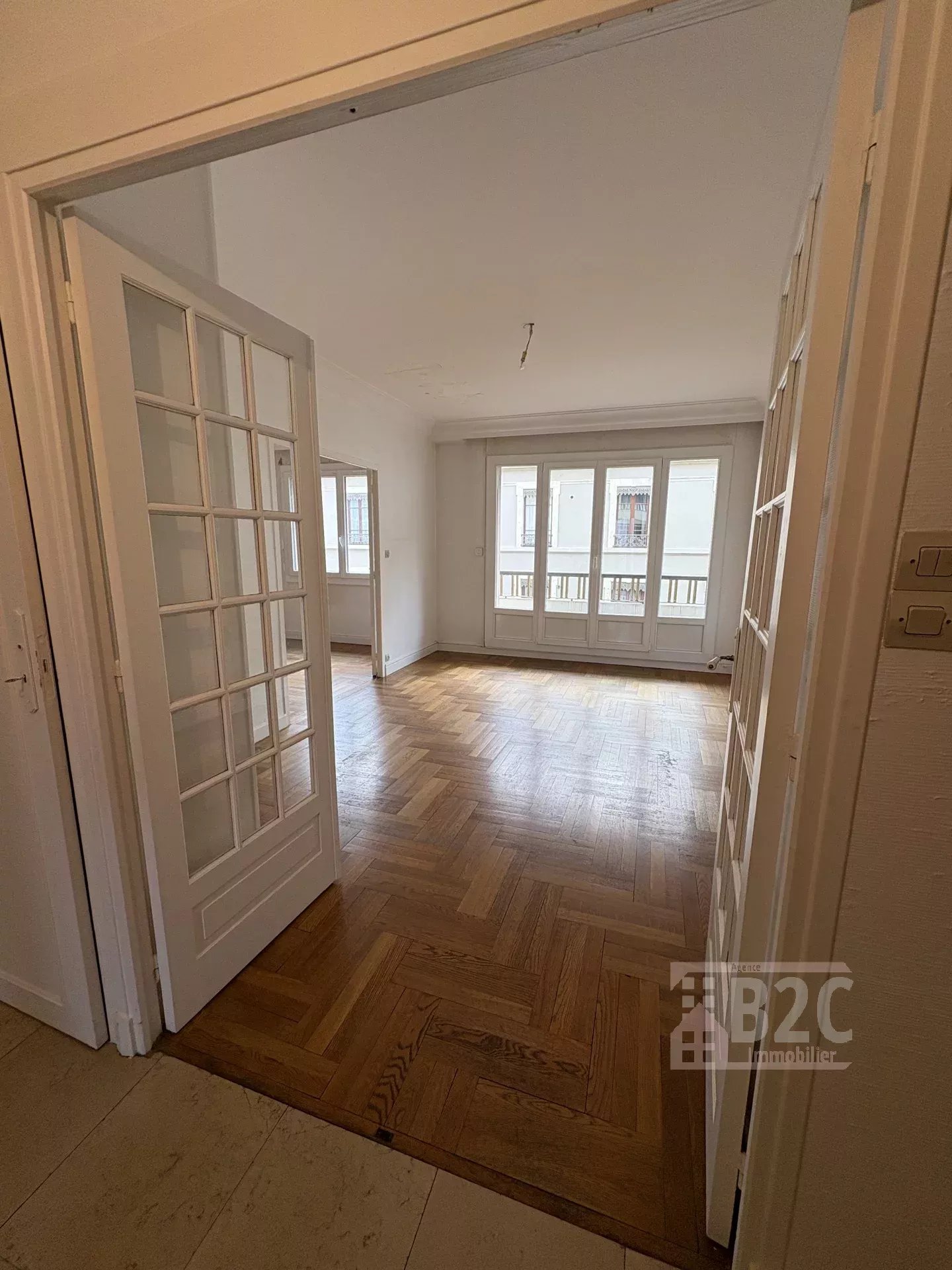 GRENOBLE, Hyper centre, au 4ème étage avec ascenseur, un beau 3 pièces de 75 m², avec double balcons, comprenant un grand hall d'entrée, un séjour double (avec balcon), deux chambres sur cour, une cuisine aménagée, meubles bas & hauts. Balcon sur cour, une salle d'eau avec meuble vasque, et un wc. Chauffage et eau chaude collectifs (inclus dans les charges), eau froide individuelle.