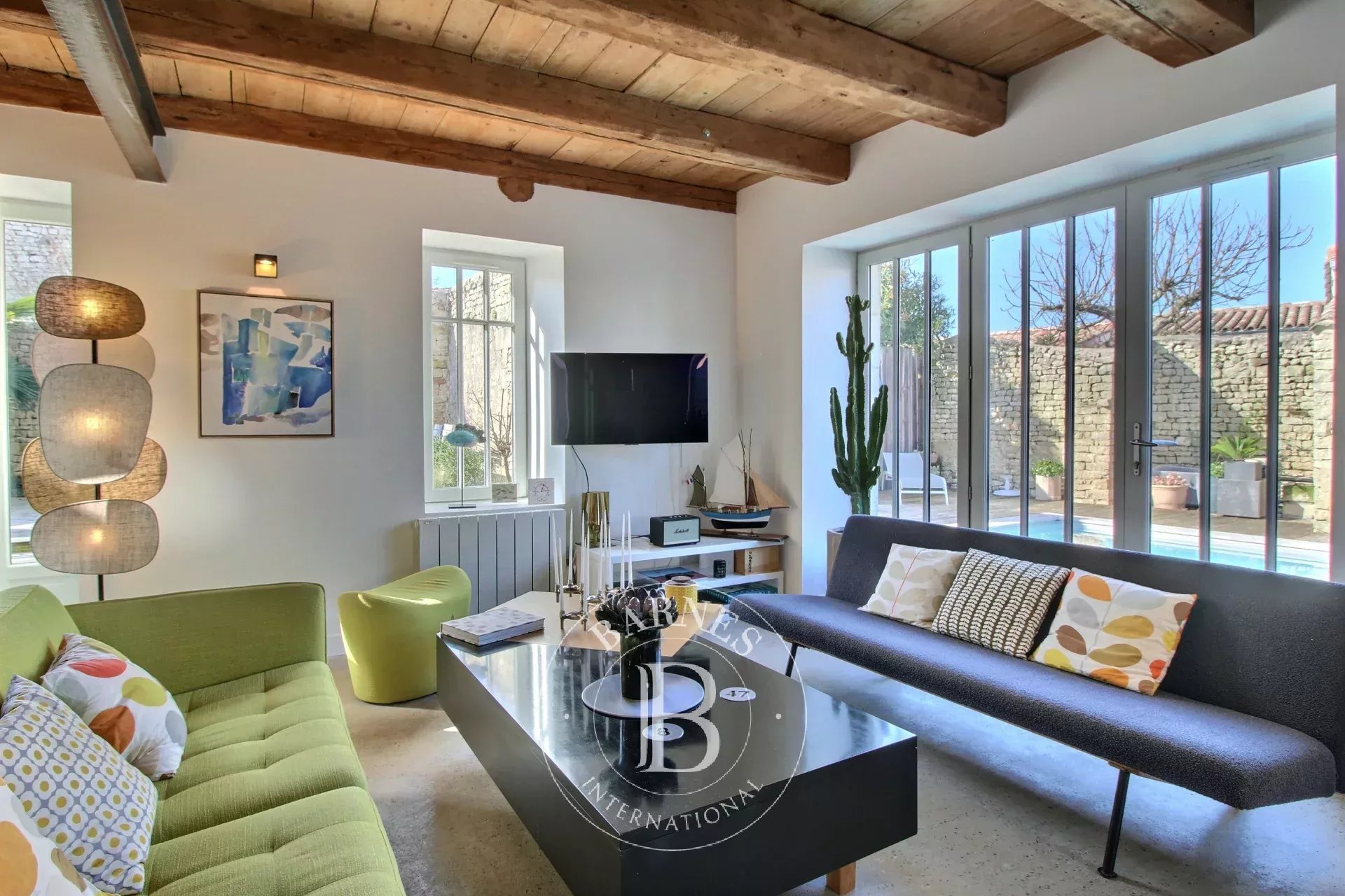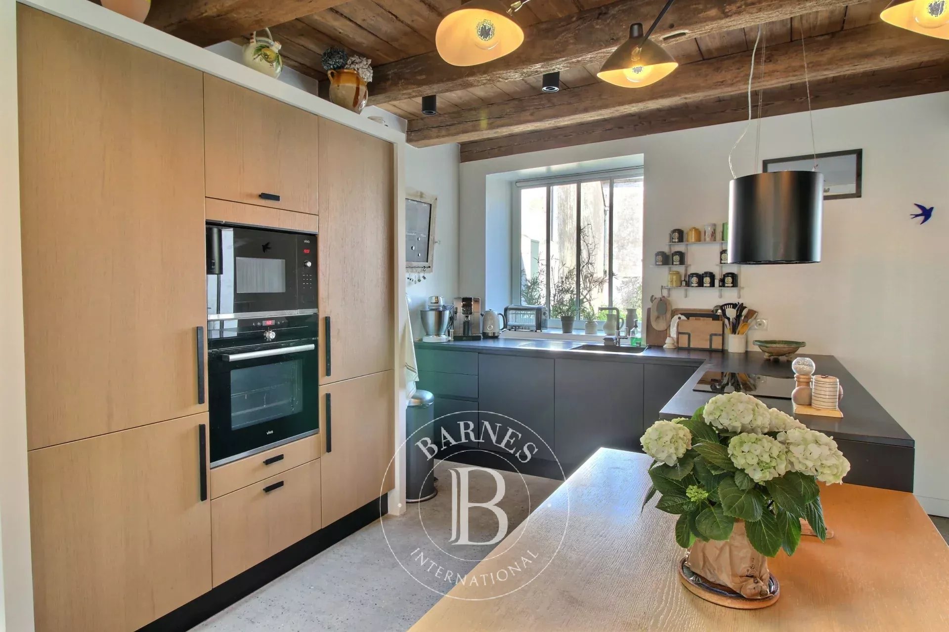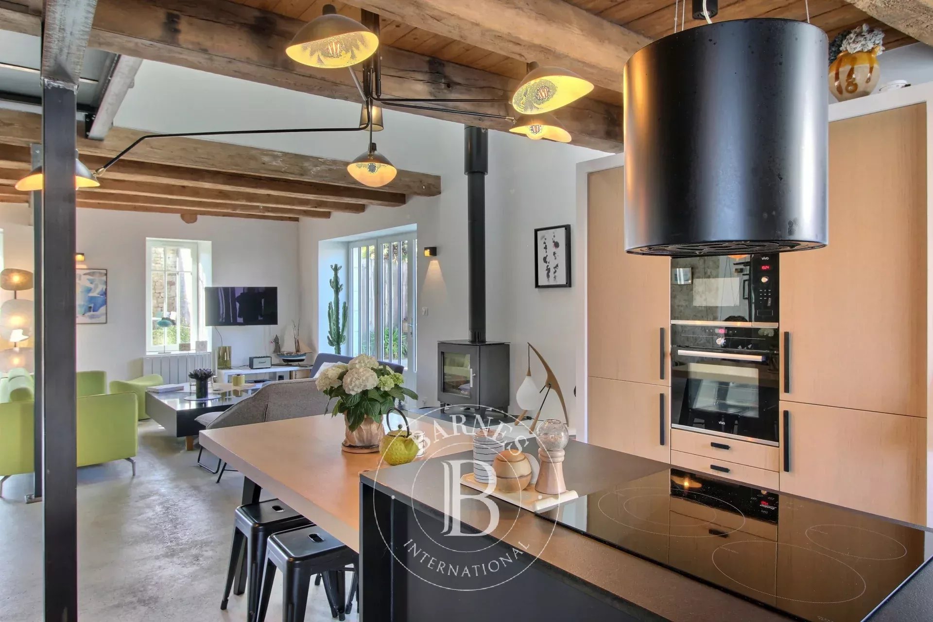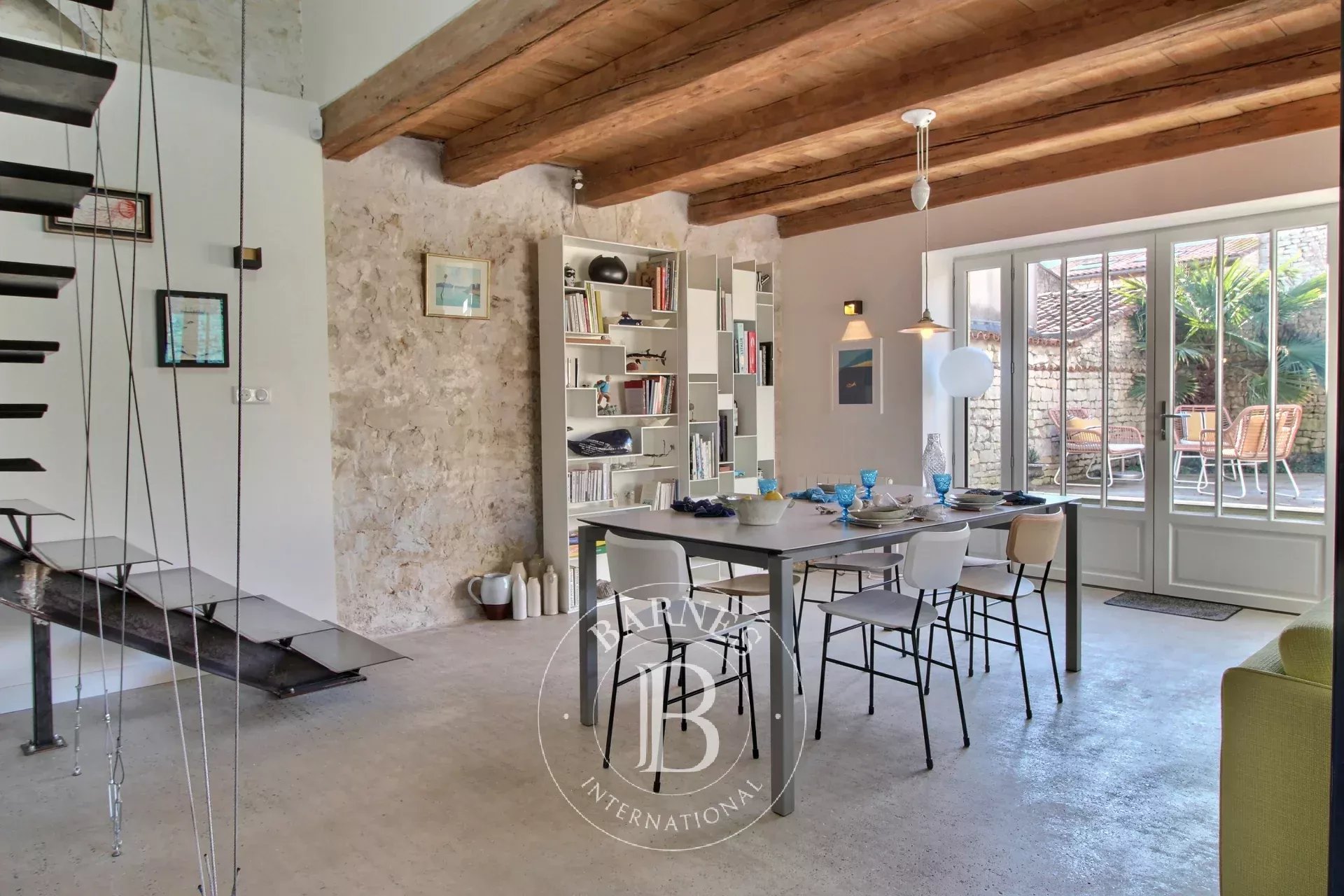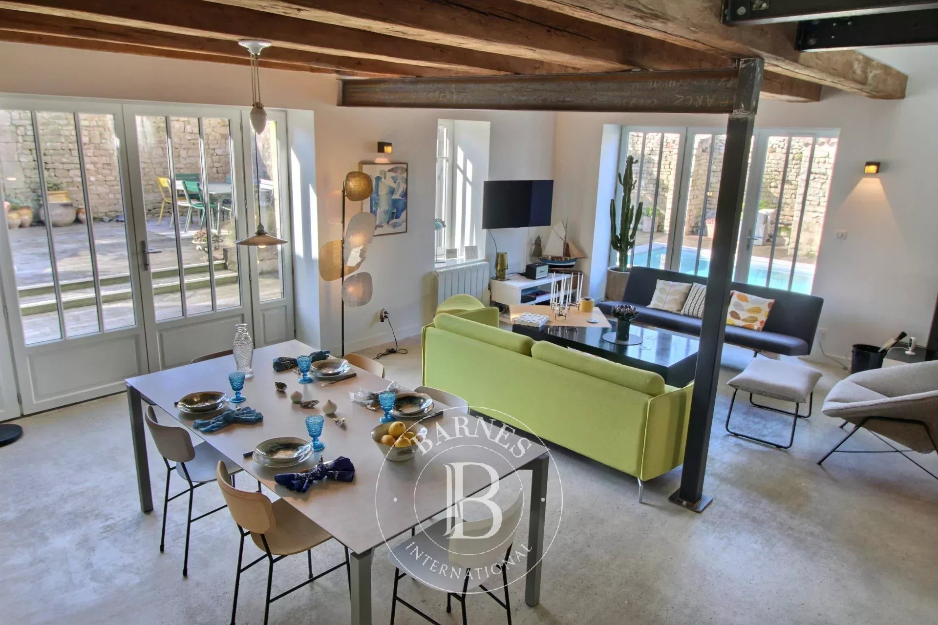 Ancien chai rénové de 178 m2 habitables. Composé d'une cour d'accueil en pierres debout offrant l'accès à une partie principale et à un appartement annexe. La maison se compose au rez-de-chaussée d'une entrée, cuisine ouverte aménagé et équipée, une buanderie, séjour lumineux avec poêle à bois. A l'étage : 2 chambres, 2 salles d'eau et un bureau. La maison d'amis en annexe est composée d'un séjour avec une cuisine ouverte et de 2 chambres avec une salle d'eau à l'étage. En extérieur : terrasse, piscine et pool house. Garage, stationnement et ancien séchoir au dessus du garage offrant la possibilité de créer une 6ème chambre.