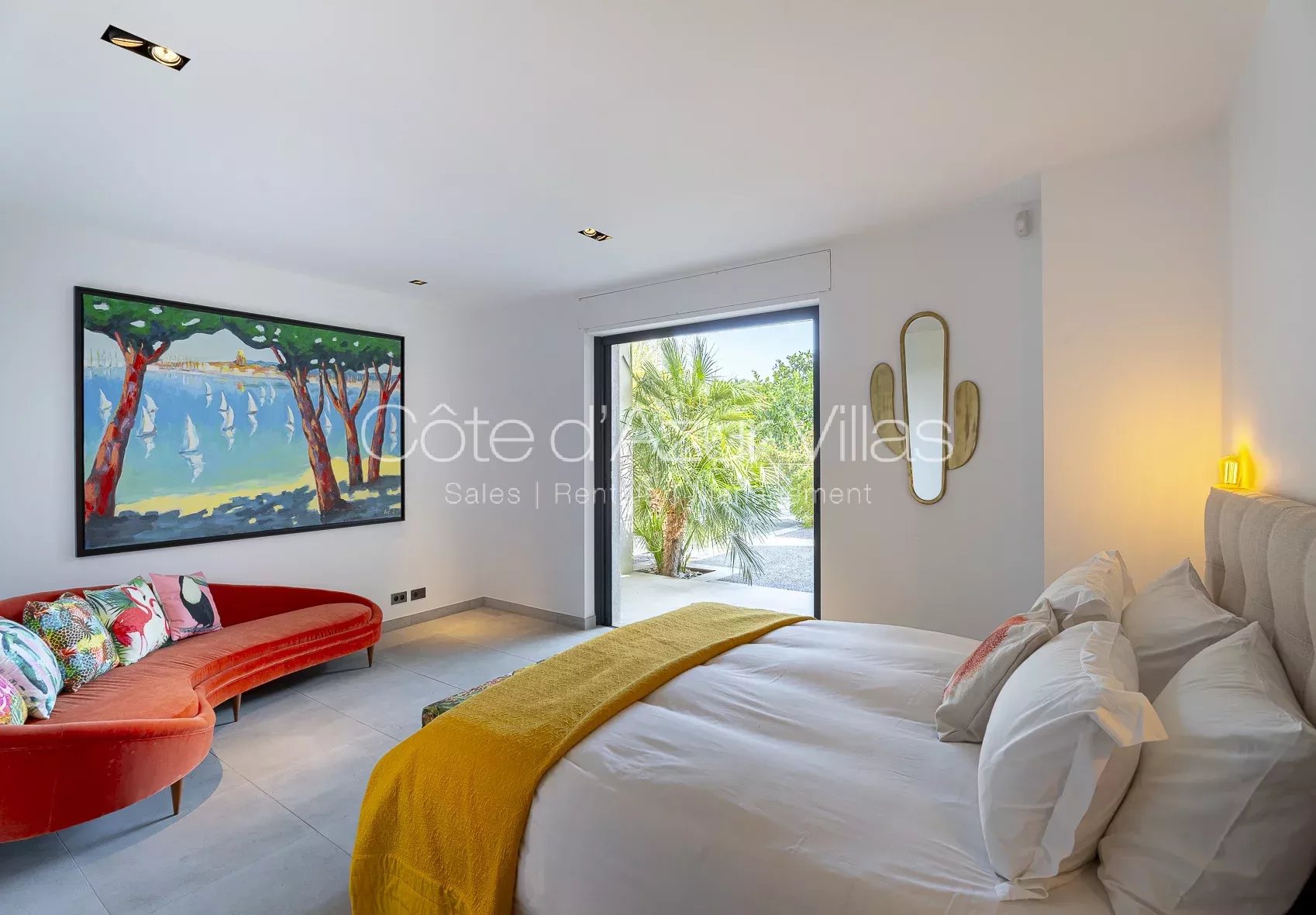 Toutes les chambres sont conçues pour un confort et une intimité totale. Au rez-de-jardin, se trouvent 2 chambres avec salle de bains privative et accès direct à la terrasse et piscine, une spacieuse chambre se trouve au rez-de-chaussée; et une suite parentale spectaculaire au dernier étage avec une grande terrasse offre une vue à couper le souffle sur la mer.