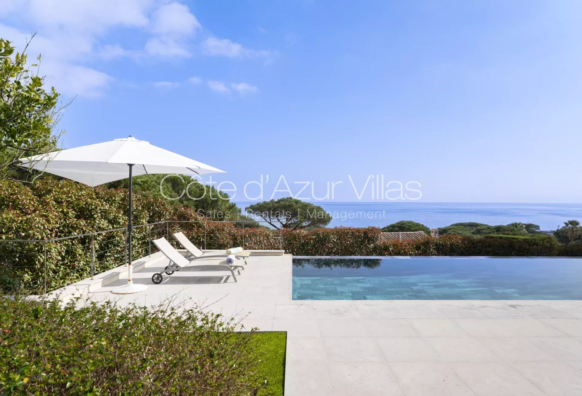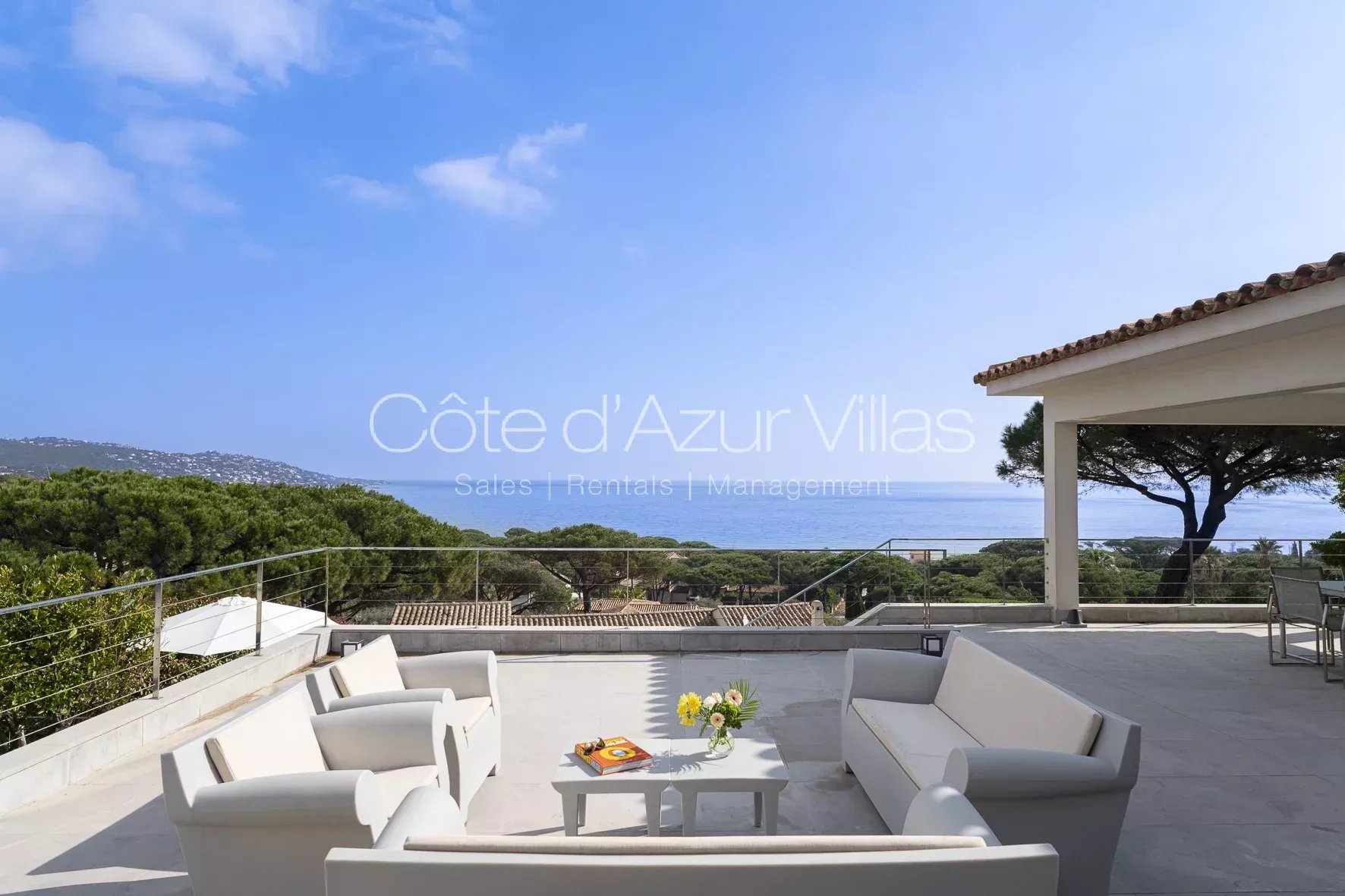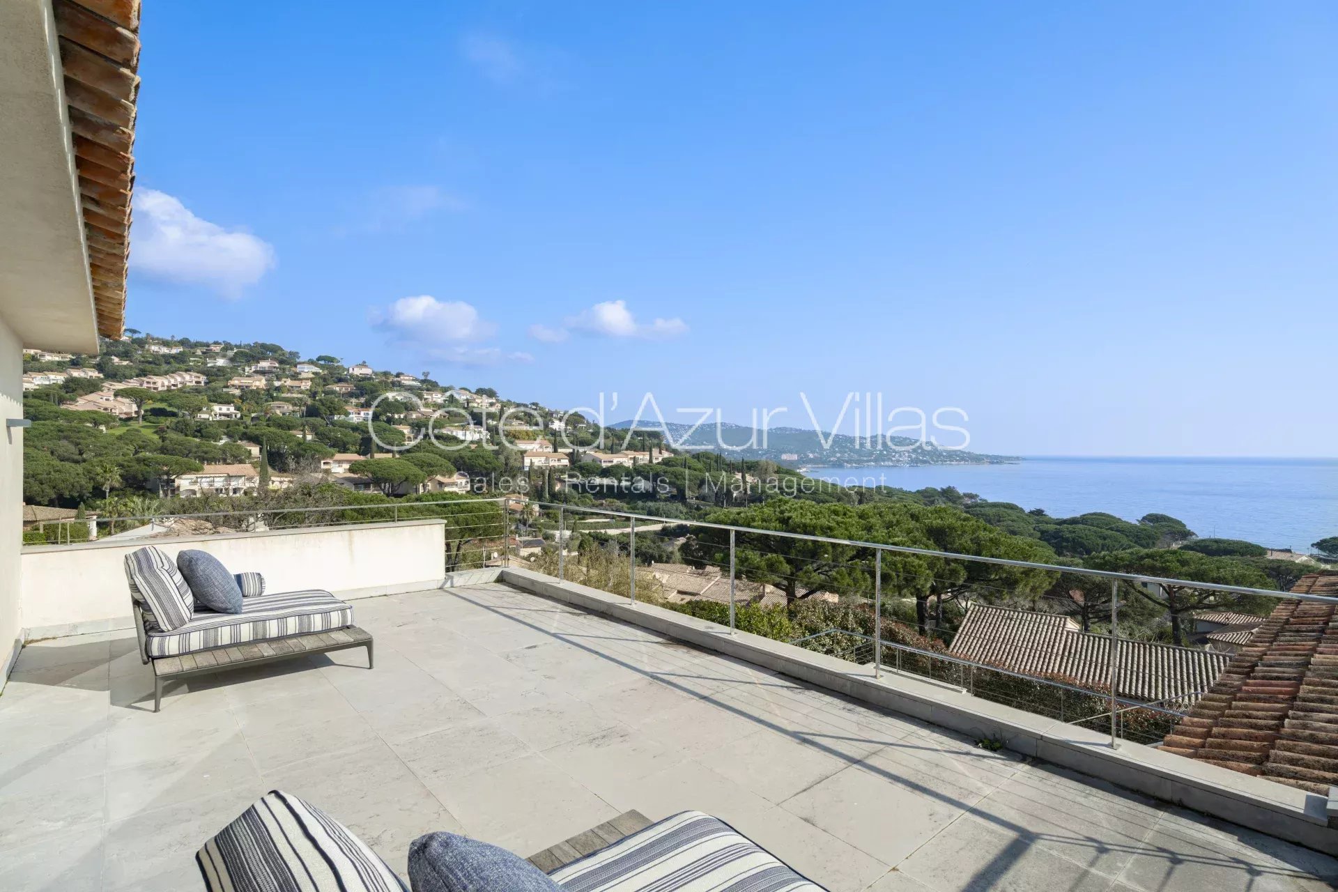 CO-EXCLUSIVITÉ - Nichée dans un quartier résidentiel et discret dans la baie de Sainte-Maxime, cette villa de 4 chambres d'environ 330 m² offre une vue panoramique imprenable sur la mer Méditerranée.
