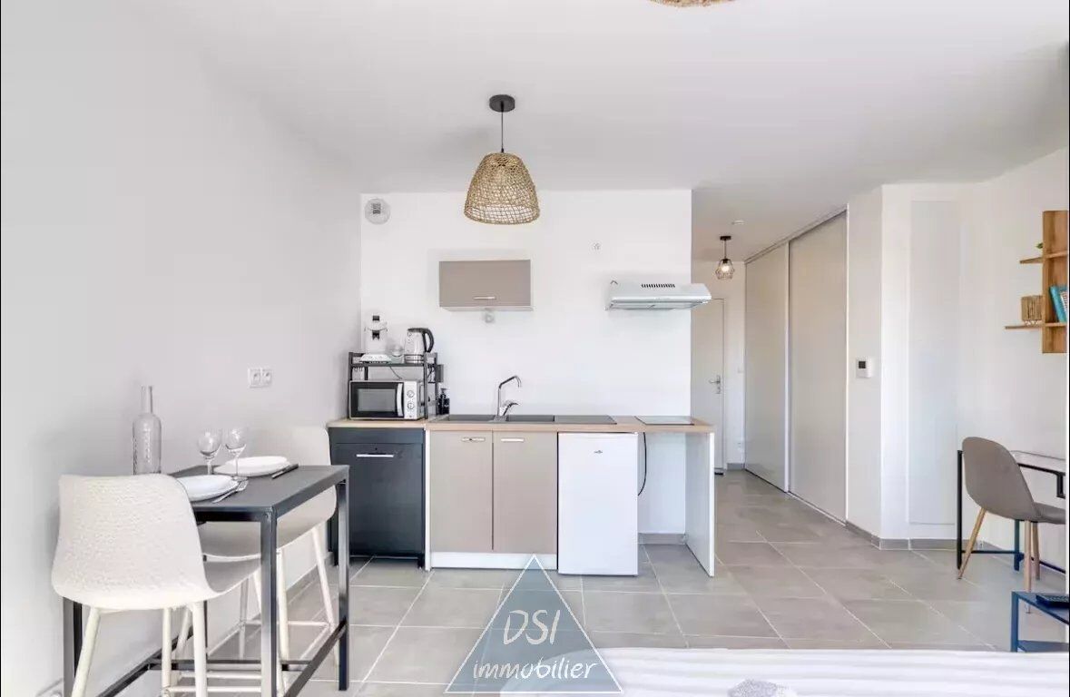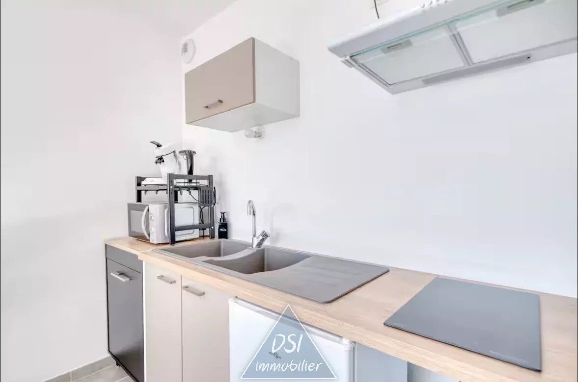 Avec une superficie de 27,21 m² habitables, cet appartement dispose d'une grande pièce de vie lumineuse ouverte sur un espace cuisine.