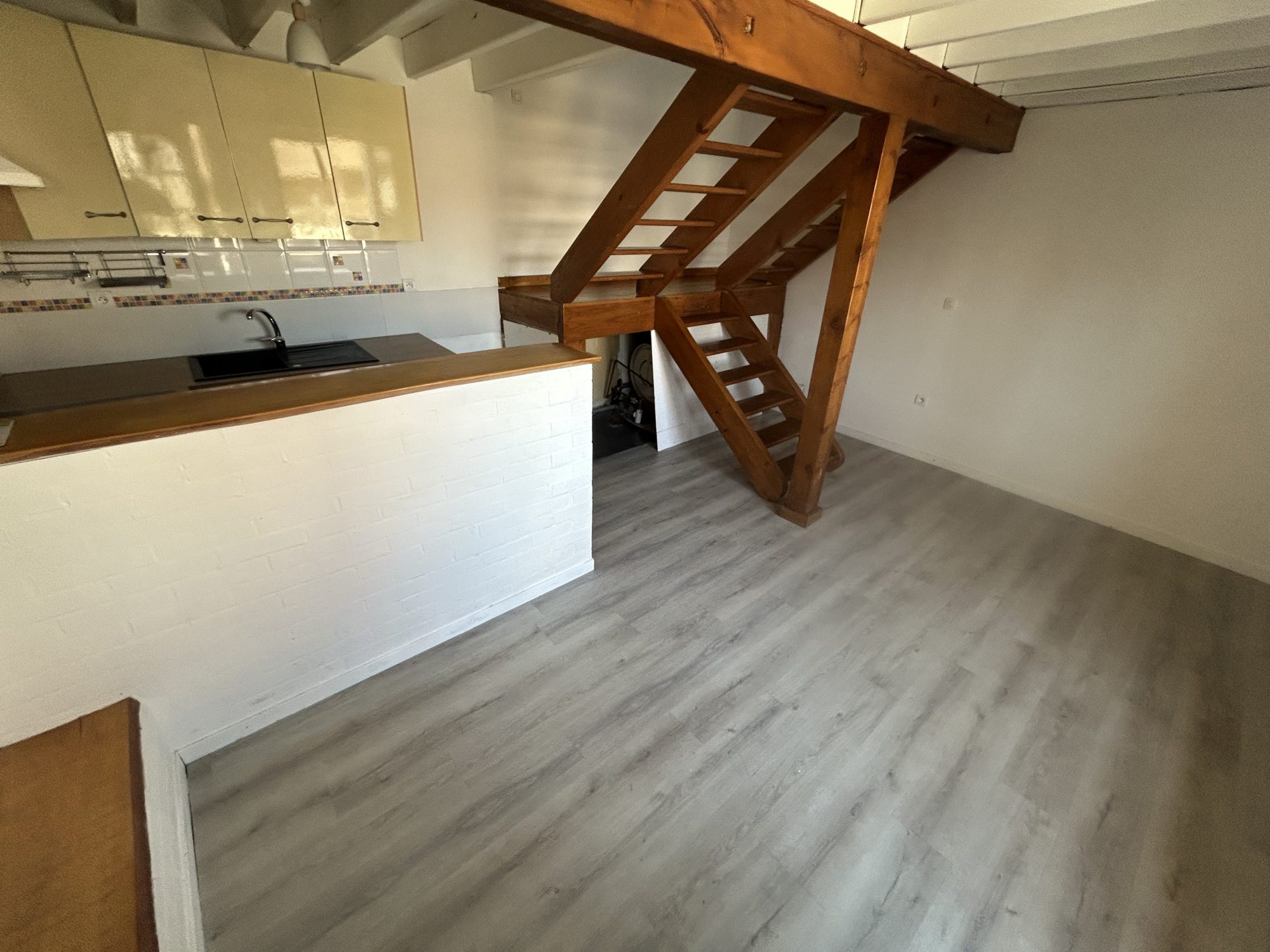 Au rez de chaussée : Entrée sur coin cuisine aménagée et équipée ouvert sur salon .