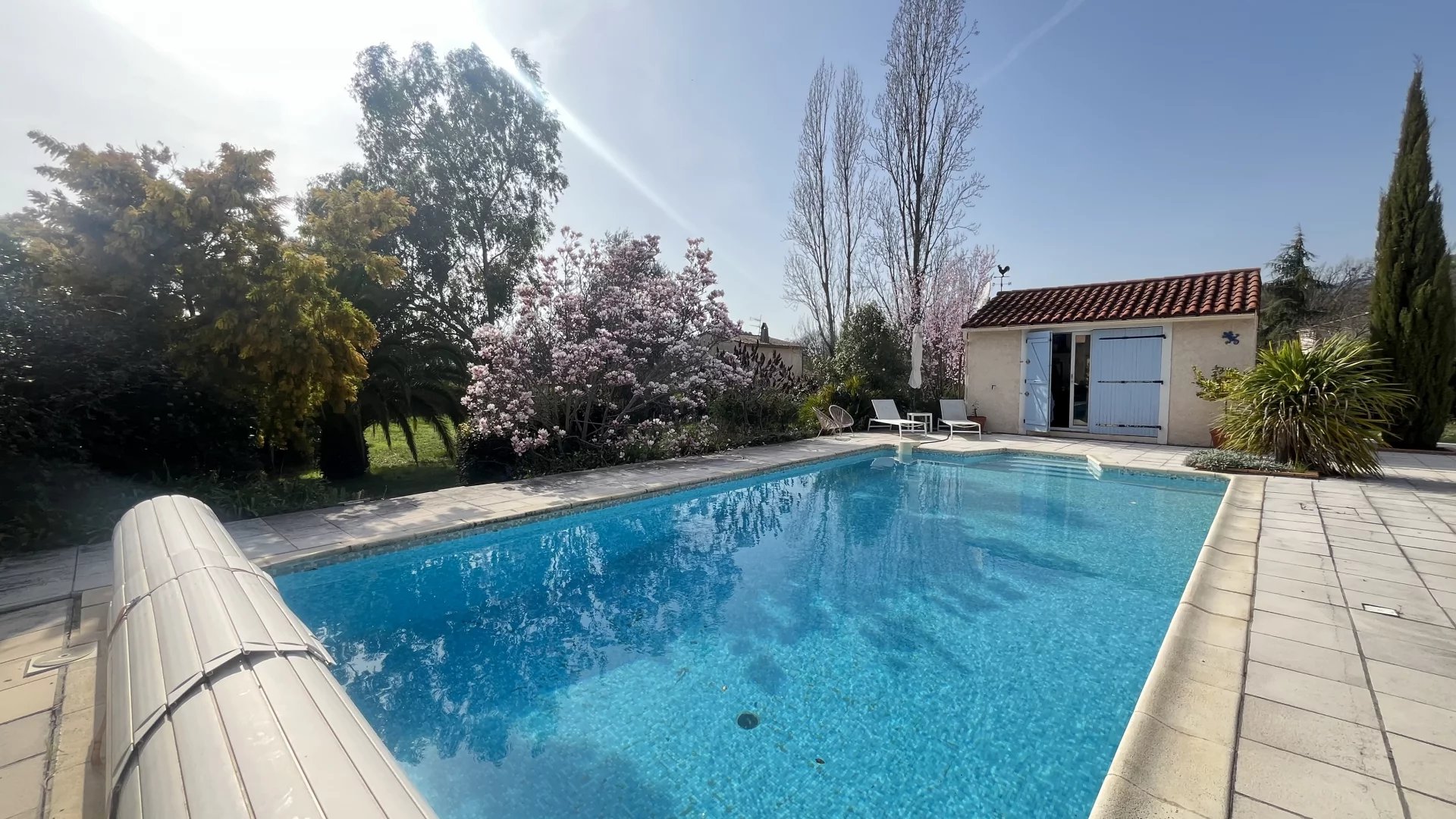 Piscine de 10x5. 1 cave. Garage et places de stationnement. Cabanon. Panneaux photovoltaïques.