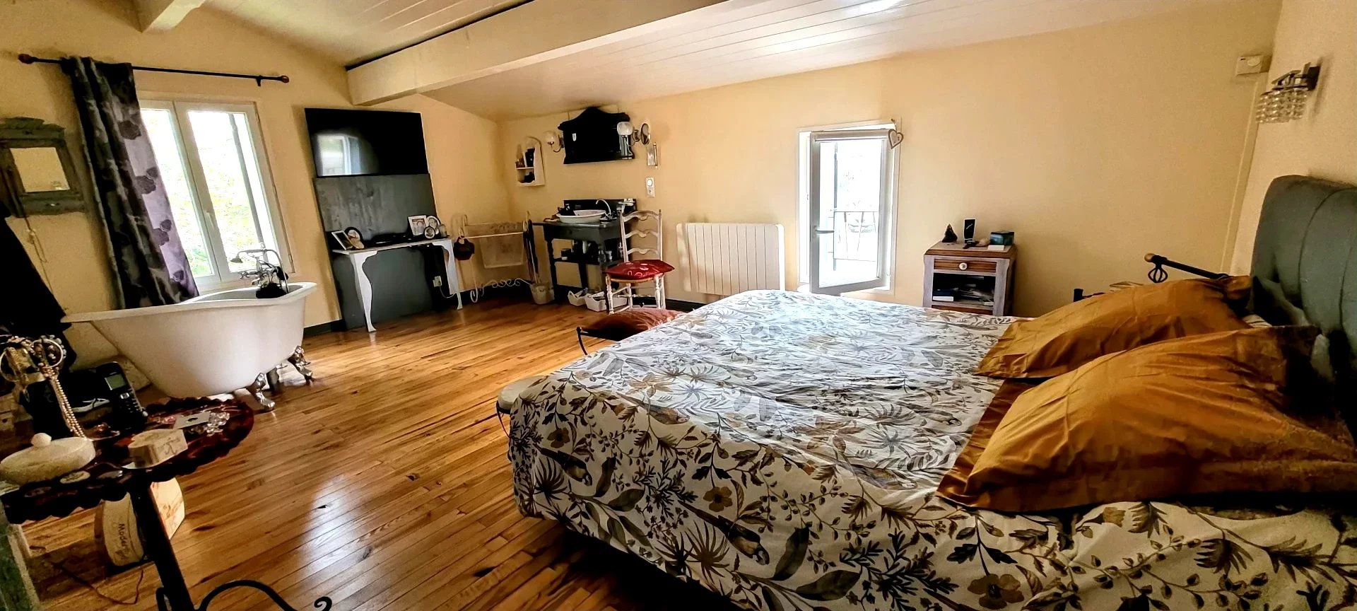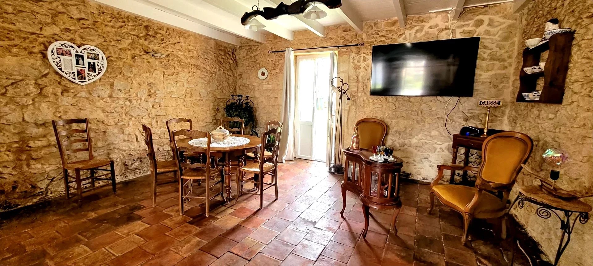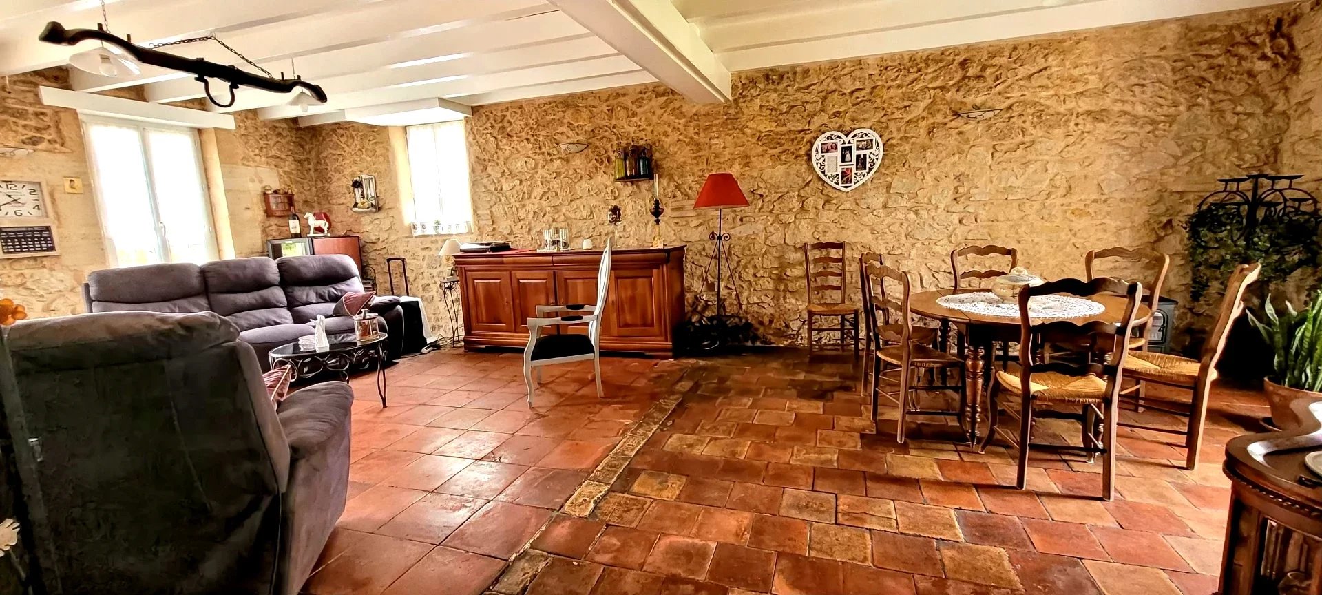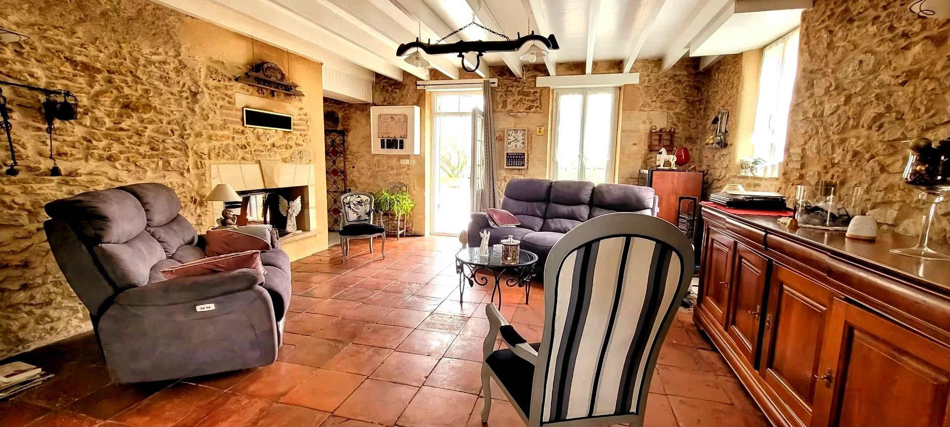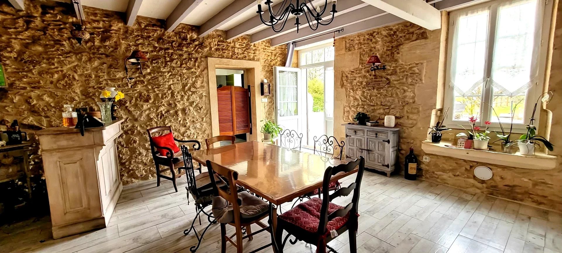 Située au bout d'une longue allée à l'abri des regards, au milieu d'un parc paysager et arboré de 1 hectare, l'on découvre une maison en pierres de plus de 210m², rénovée avec goût, dans le respect des matériaux traditionnels et le confort d'une vie moderne