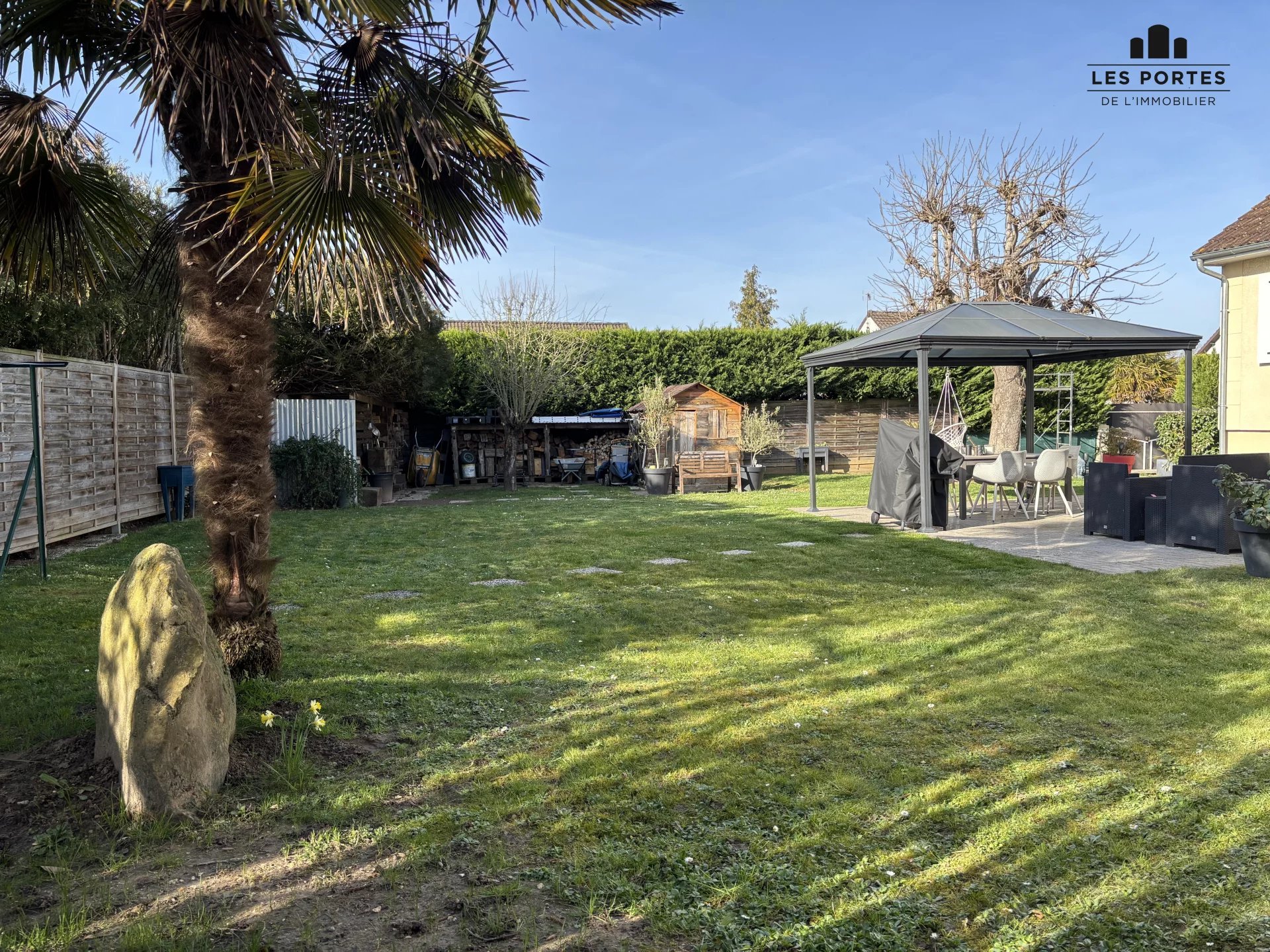 Abri de jardin. Terrasse avec pergola.
