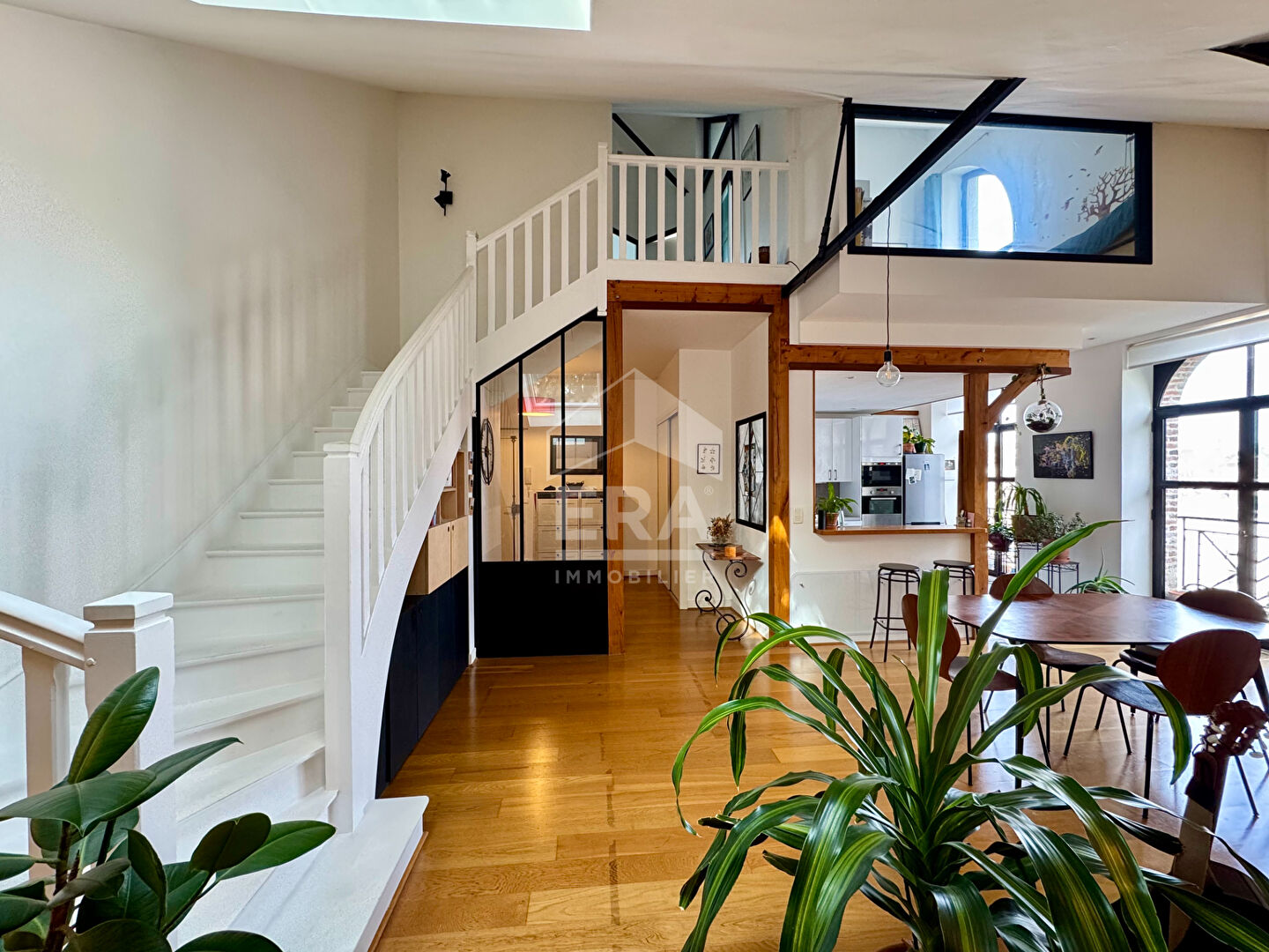 Situé au coeur d'Orléans, dans le quartier recherché de la Madeleine, ce bien rare prend place au sein d'un bâtiment de caractère entièrement réhabilité, ancienne vinaigrerie chargée d'histoire. Au 1 rue du Baron, découvrez ce superbe loft en duplex, occupant les deux derniers étages de la résidence et offrant de beaux volumes ainsi qu'une atmosphère unique. L'appartement s'ouvre sur une entrée disposant de grands rangements intégrés. Elle mène à un magnifique double séjour avec toit cathédrale, baigné de lumière, qui accueille également une cuisine américaine ouverte, idéale pour recevoir. Un WC indépendant complète ce niveau. A l'étage, le palier dessert trois chambres avec rangements ainsi qu'une salle de bains avec WC. La résidence, parfaitement entretenue, bénéficie de prestations recherchées, notamment un ascenseur et un local à vélos. Vous profiterez également d'une place de parking privative dans la cour intérieure, un véritable atout en centre-ville. Situé dans un environnement particulièrement calme, le bien se trouve à proximité immédiate des commerces, des écoles, du collège Loire et du tramway. Un loft atypique et plein de charme, idéal pour les amateurs de volumes et de lieux de caractère. 118,21 m2 au sol et 91,21 carrez. Copropriété de 25 lots - dont 16 lots habitation. Charges annuelles : 2400 euros.