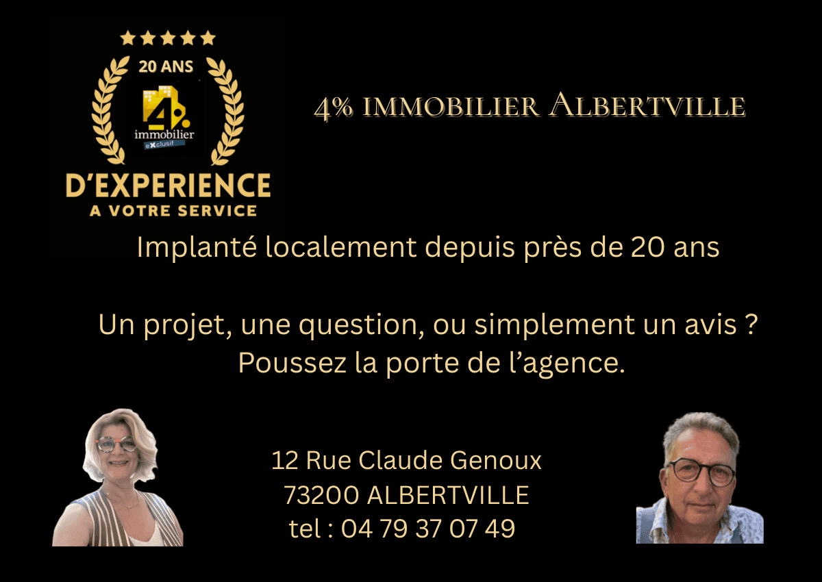 | Agence | 4% Immobilier Albertville - 4 % Immobilier Albertville Voir toutes les annonces |