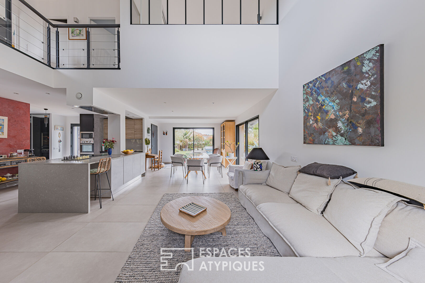 Dans un environnement calme et sans vis-à-vis, cette belle maison contemporaine construite en 2017, conforme à la RT 2012, est implantée sur un terrain paysagé de 630 m² et bénéficie d'une exposition plein sud. Elle offre un beau séjour cathédrale lumineux, ouvert sur la terrasse et la piscine chauffée, ainsi qu'une cuisine américaine entièrement équipée. Le rez-de-chaussée comprend également une chambre avec salle d'eau et un WC indépendant. Trois chambres, une salle de bain et un WC composent le confort de l'étage. Les extérieurs paysagés, conçus pour être faciles à vivre et demandant peu d'entretien, complètent parfaitement l'ensemble. Un garage, un carport et une allée de stationnement viennent parfaire ce bien. Situation idéale, à quelques pas du sentier du littoral et des ports, à 5 minutes du marché, des commerces et du centre-ville, ainsi que de la gare SNCF. Une maison lumineuse, moderne et facile à vivre, idéale pour profiter pleinement du cadre de vie. CLASSE ENERGIE : B / CLASSE CLIMAT : A. Montant moyen estimé des dépenses annuelles d'énergie pour un usage standard, établi à partir des prix de l'énergie de l'année 2021 : entre 750 euros et 1 080 euros. Manuel Candelon (EI) Agent Commercial 06 10 72 25 02 Numéro RSAC : 531 443 281 Bordeaux. Manuel Candelon (EI) Agent Commercial - Numéro RSAC : 531 443 281 - Bordeaux.