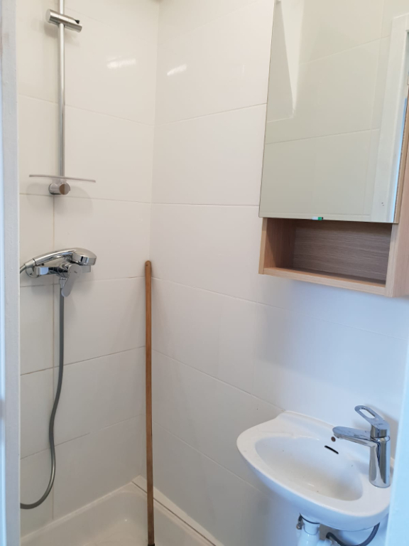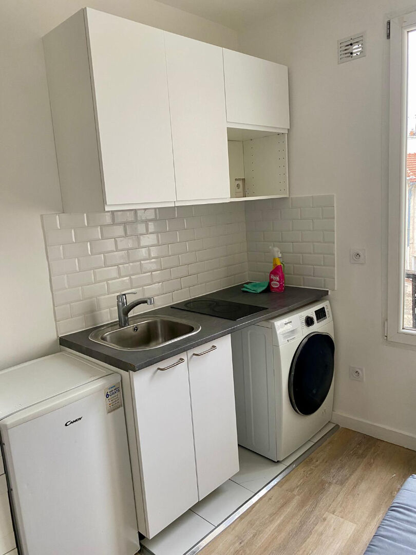 Métro Louis Blanc, Au 5ème étage sans ascenseur, Studio de 12m² meublé d'un lit, une armoire, un coin cuisine avec réfrigérateur et lave linge, une salle d'eau douche avec wc. Calme et lumineux. Bail Meublé, Loyer mensuel : 650,00 euroscc A saisir! Contact : 06.64.16.10.85.
