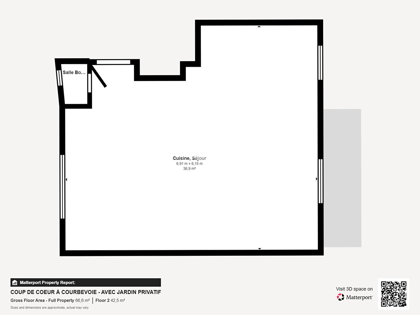 L'agence Sixième Avenue, l'immobilier par M6, vous propose de découvrir cet appartement de deux pièces situé à Courbevoie dans une petite copropriété de 1930. Ce bien atypique de 54,62 m2 se distingue par une pièce de vie spacieuse de 35 m2, exposée plein sud, incluant une cuisine américaine aménagée et équipée.Le point fort de ce logement est sa chambre avec salle d'eau et WC qui s'ouvre directement sur un jardin privé de 25 m2. L'appartement, en bon état général, comprend également un dressing, un second WC séparé et bénéficie d'un chauffage individuel au gaz ainsi que de fenêtres en double vitrage.Côté transports, l'emplacement est idéal avec le bus à trois minutes, la gare à neuf minutes et le tramway à treize minutes à pied. Une opportunité rare sur le secteur pour profiter d'un extérieur au calme tout en restant proche des commodités. Copropriété de 5 lots - dont 5 lots habitation. Charges annuelles : 2470.64 euros.