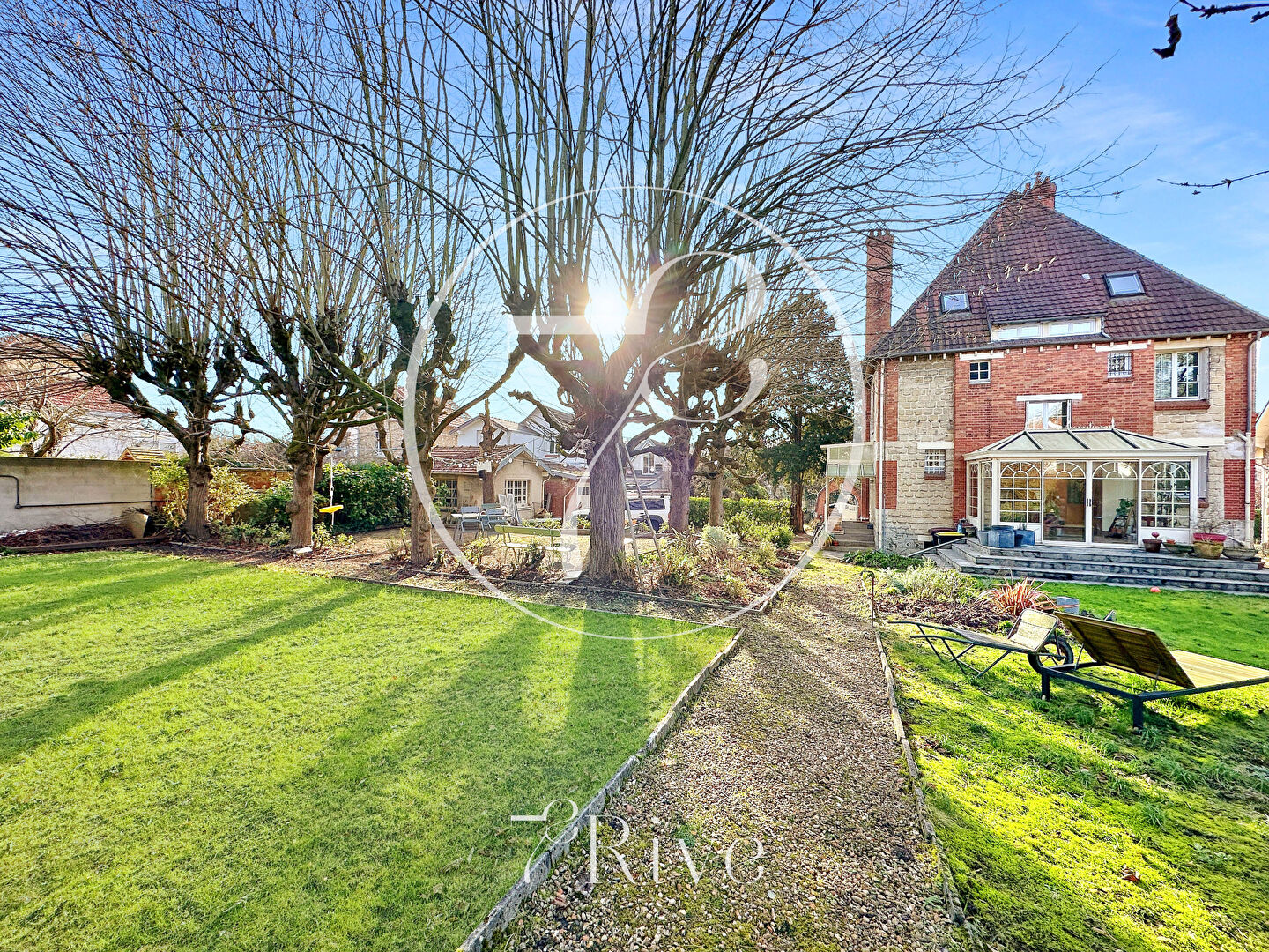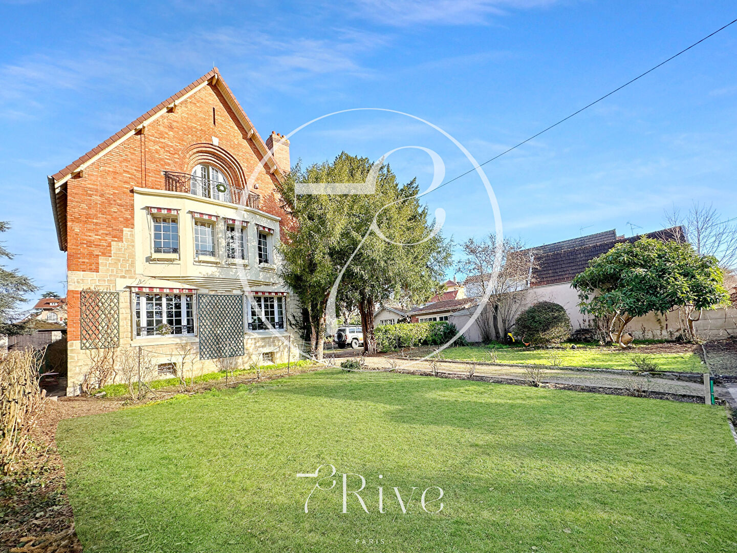 HERBLAY-SUR-SEINE (95) - 20' de la gare Saint Lazare - avenue du Général Leclerc - Exclusivité - 5 mn à pied de la gare, des commerces et des écoles - Demeure de 1925 en pierre et brique de 7 pièces sur 170m2 habitables environ avec dépendance de 26m2 et atelier de 18m2. Maison principale comprenant - au RDC : vaste entrée, grand espace de vie de 50m2 env. comprenant séjour avec cheminée, salle à manger et cuisine ouverte, WC séparés. Accès au sous-sol et à un jardin d'hiver de 11m2 env. donnant sur le jardin à l'arrière de la maison. au 1er étage : 2 belles chambres de 16 et 18m2 avec bow-window et cheminée pour l'une d'entre elles, chambre de 9m2 et grande salle de bains/salle d'eau avec WC au 2e étage : chambre parentale avec dressings attenants et cheminée, bureau et salle d'eau avec WC au sous-sol (semi-enterré) : buanderie/chaufferie, atelier, ancienne cave à charbon et cave à vin Demeure calme et lumineuse rénovée début 2024 (hors salles d'eau et salle de bains). Construction raffinée avec matériaux nobles, parquet d'origine, bois brut, marbre, cheminées. Séjour, salle à manger et 3 chambres exposés sud. Très beaux volumes et belle HSP (3m). Nombreux rangements intégrés. Chauffage individuel au gaz (chaudière Ferroli de 2000 - bruleur changé en 2008). Fenêtres PVC double vitrage avec verre anti-effraction. Alarme. Portail automatique avec interphone. Fibre. Assainissement collectif. Toiture refaite en 2000. Persiennes métalliques (peinture refaite en 2020). Terrain clos de 1 704 m2 sans vis à vis et piscinable. Atelier de 18m2 et dépendance de 2 pièces à rénover de 26m2 environ sur la partie arrière du terrain. Garage 2 voitures. Gare à 5 mn à pied (ligne J). Charme, luminosité et très beaux volumes pour cette propriété d'exception aux portes de Paris.