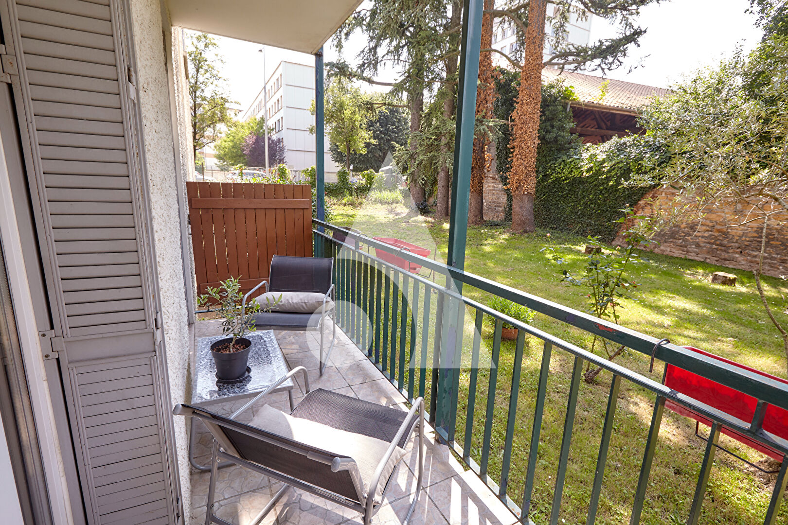 Appartement Villefranche Sur Saone 4 pièce(s) 71 m2 Il est vraiment sympa ce balcon, on peut profiter de la verdure et du calme d'un jardin sans même avoir à tondre et sans aucun vis-à-vis. Il n'y a que 8 appartements dans cette copropriété. Celui-ci se trouve au rez-de-chaussée. 71m2 avec 2 chambres. Autant vous dire que vous trouverez le séjour plutôt spacieux avec 26m2 et lumineux avec ses portes-fenêtres. Cuisine séparée et dînatoire de 10m2. 2 chambres de 10 et 11m2. Salle de bain, WC, eux aussi séparés. Cave et Garage. 133 euros de charges de copro par mois et du chauffage Gaz individuel. On est à 5 mn à pied de la gare. Cet appartement vous plaît, il est chez Sixième Avenue l'immobilier par M6 Pierre-Gilles : O7 69 56 83 93 Copropriété de 17 lots - dont 8 lots habitation. Charges annuelles : 1596 euros. Pierre-Gilles LOMBARD (EI) Agent Commercial - Numéro RSAC : 392514907 - Villefranche Tarare.