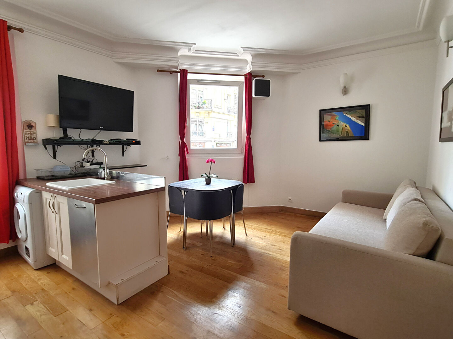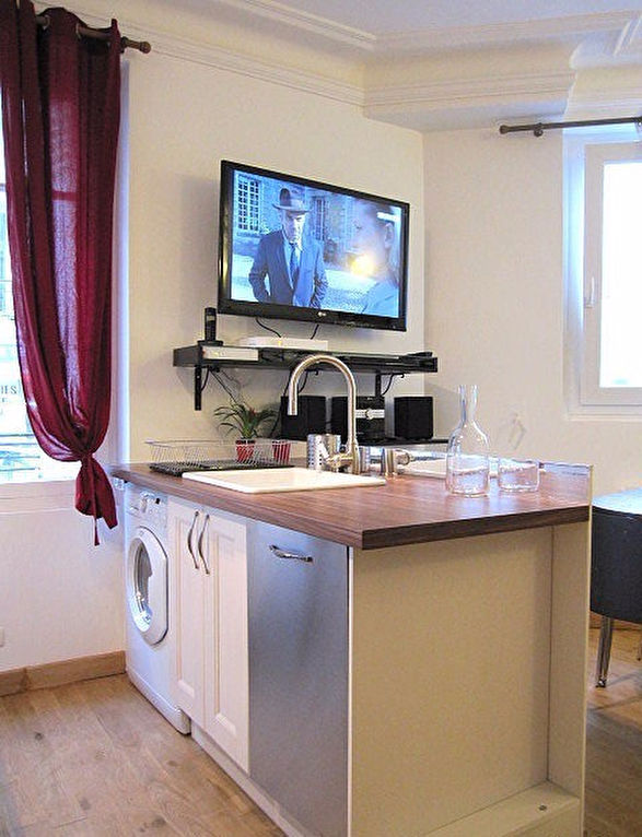 Disponible 12/03/2026 - 04/09/2026 : Dans un immeuble en PDT de bon standing, ce deux-pièces meublé en excellent état de 31,32m² se compose d'un petite entrée desservant une pièce à vivre avec 2 grandes fenêtres, une cuisine ouverte parfaitement équipée, avec un lave-linge séchant, donne sur un grand salon spacieux, avec une table à manger et un grand écran plat orientable. La chambre séparée dispose d'une très grande penderie et d'un lit en 160 X 200 cms. Salle d'eau avec WC. Appartement calme et ensoleillé. Métro Monge, super commerces et rue Mouffetard juste à côté.