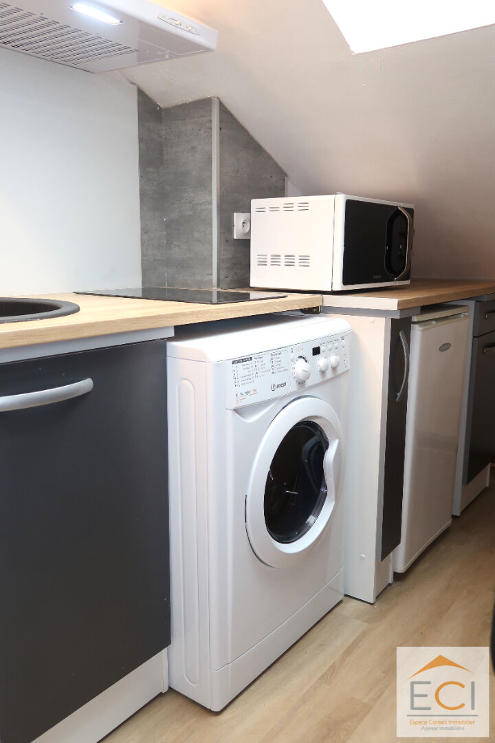 Disponible le 1er Juin 2026 - A Limoges, rue Armand Dutreix, proche de la facs de Sciences et de l'IUT - Studio meublé mansardé au 2éme et dernier étage d'environ 14.60 m² loi Carrez et 33m² au sol. Il se compose d'un séjour avec nombreux rangements, une cuisine ouverte et équipée, une salle d'eau avec WC. Le chauffage est individuel électrique. Accès internet inclus. Mobilier en bon état : lit 140 cm, bureau, commode, penderie, écran plat télévision, hotte, plaques de cuisson vitrocéramiques, réfrigérateur, micro onde, lave linge séchant, vaisselle... DPE E/C. L'isolation extérieure de l'immeuble a été faite en septembre 2023. RCS LIMOGES 482 544 392 M20G. Les informations sur les risques auxquels ce bien est exposé sont disponibles sur le site Géorisques : www.georisques.gouv.fr. A la charge du locataire 160.60 euros TTC d'honoraires dont 43.80 euros TTC pour la rédaction de l'état des lieux entrant. Montant du dépôt de garantie 373 euros. Loyer 373 euros + Forfait de charges 26 euros.