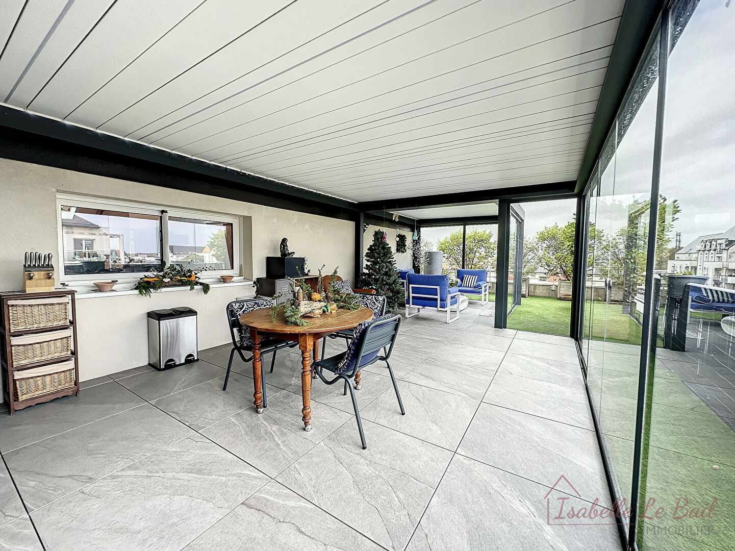 EXCLUSIVITE A BRUZ, COMMUNE de RENNES METROPOLE, cet appartement d'exception en duplex occupe entièrement le dernier étage en attique de cette petite copropriété. Conçu par un architecte en 2016, vous serez conquis par l'originalité et la qualité des prestations de ce bien. Son volume de plus de 150 m² loi Carrez et 179 m² au sol vous permettent d'y vivre très confortablement en famille. Par ailleurs, grâce à deux accès indépendants, vous pourrez y exercer votre activité professionnelle en toute tranquillité. Côté extérieur, une magnifique pergola et un sauna vous invitent à la détente quelque soit la saison. Vous apprécierez aussi le garage double en sous-sol ainsi que la proximité immédiate des commerces, écoles, loisirs et transports. Bien soumis au statut de la copropriété composée de 44 lots dont 1 seul appartement. Provision pour charges annuelles : 3 700 euros par an. Classe énergie C- Classe climat A. Montant estimé des dépenses annuelles d'énergie pour un usage standard : entre 1 310 euros et 1 810 euros abonnement compris, prix moyen des énergies indexés au 01/01/2021. 599 500 euros honoraires inclus 3.36 % TTC à la charge de l'acquéreur soit 580 000 euros net vendeur. Etat des risques naturels et technologiques accessible sur le site Géorisques : www.georisques.gouv.fr (3.36 % honoraires TTC à la charge de l'acquéreur.) Copropriété de 44 lots - dont 1 lots habitation. Charges annuelles : 3700 euros.