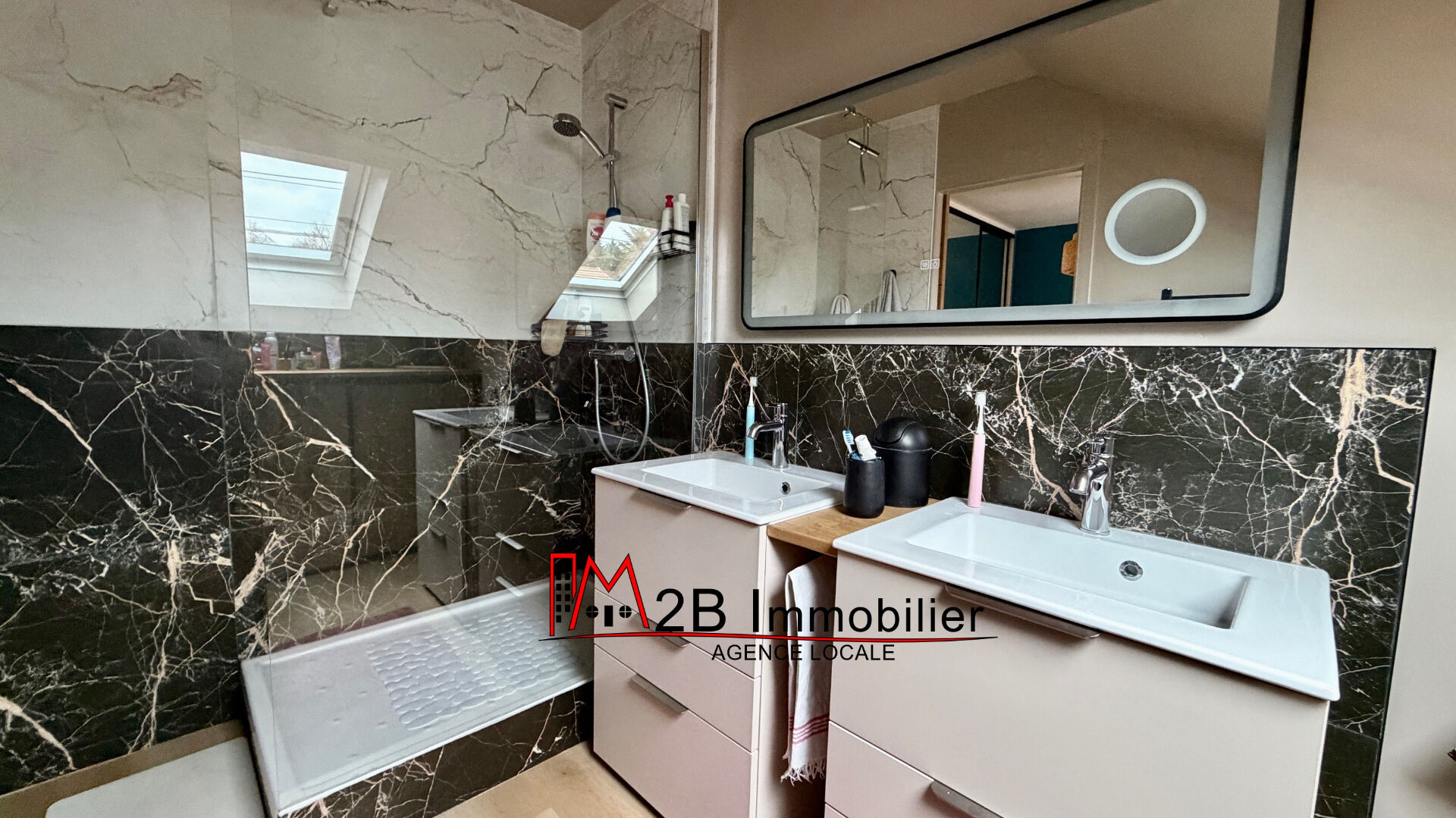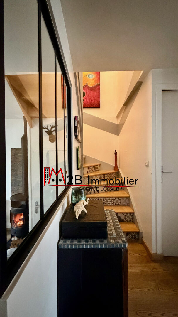 Notre agence IM2B IMMOBILIER vous partage son coup de coeur du moment. Cette maison bien entretenue offre un aménagement optimal, elle propose : Au rez-de-chaussée : - Une cuisine aménagée et équipée donnant sur la pièce de vie - Le séjour en décaissé bénéficie d'une belle hauteur sous plafond, équipé d'un poêle à bois. Une grande baie vitrée donne accès au jardin clos. UN VRAI LIEU DE CONVIVIALITE - Un wc et un garage transformé en cellier/buanderie et atelier A l'étage : - Un palier dessert l'espace nuit - 3 grandes chambres dont une suite parentale avec placards et salle d'eau aménagée - Une salle de bains - Un wc séparé Sa décoration actuelle, sa proximité avec les écoles et les transports (lignes de bus pour la gare SNCF et RER A) sont idéales pour les couples avec enfants. Nous restons votre disposition pour organiser une visite et nous faire part de votre projet. (3.56 % honoraires TTC à la charge de l'acquéreur.)