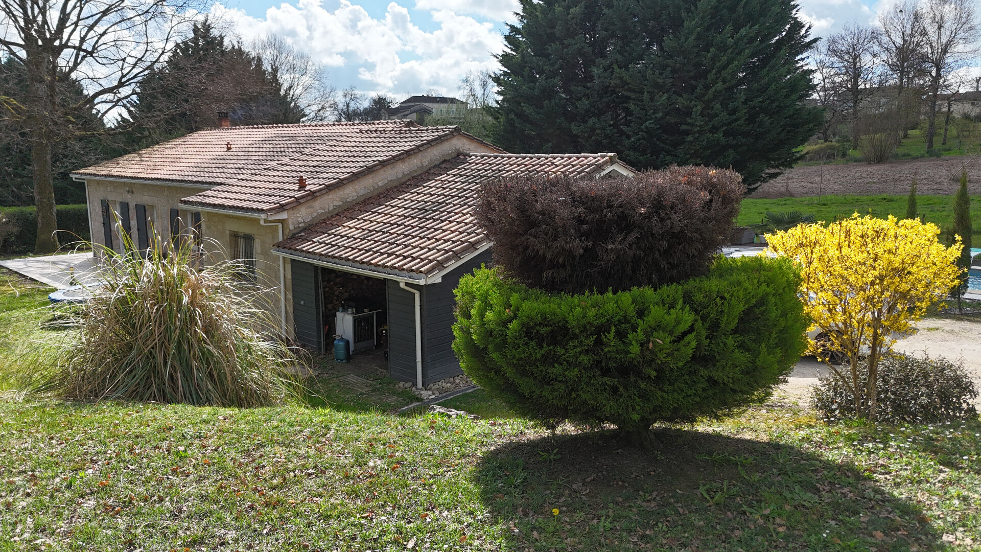 Située à deux pas du centre du village et de ses commodités, cette maison de plain-pied au charme authentique séduit dès les premiers instants grâce à sa façade en pierre et son environnement paisible. Dès l'entrée, un petit couloir aux murs en briquette et aux poutres anciennes annonce le caractère chaleureux du lieu. Il s'ouvre sur une vaste pièce de vie lumineuse et conviviale, sublimée par une cheminée centrale qui délimite harmonieusement l'espace salon et la salle à manger. Une belle cuisine moderne, entièrement aménagée et équipée, vient compléter cet espace de vie particulièrement agréable. La partie nuit comprend trois chambres de 13 m², ainsi qu'une spacieuse suite parentale de 23 m² avec dressing. Elle bénéficie d'une grande baie vitrée offrant un accès direct à la piscine, créant une atmosphère apaisante et privilégiée. La salle de bains attenante reste à finaliser selon vos envies. A l'extérieur, vous profiterez d'un terrain arboré, d'une piscine idéale pour les beaux jours, et d'un environnement calme grâce à la petite impasse dans laquelle se situe la propriété. Un garage de 38 m² vient parfaire l'ensemble. Un bien rare sur le secteur, à ne surtout pas manquer.