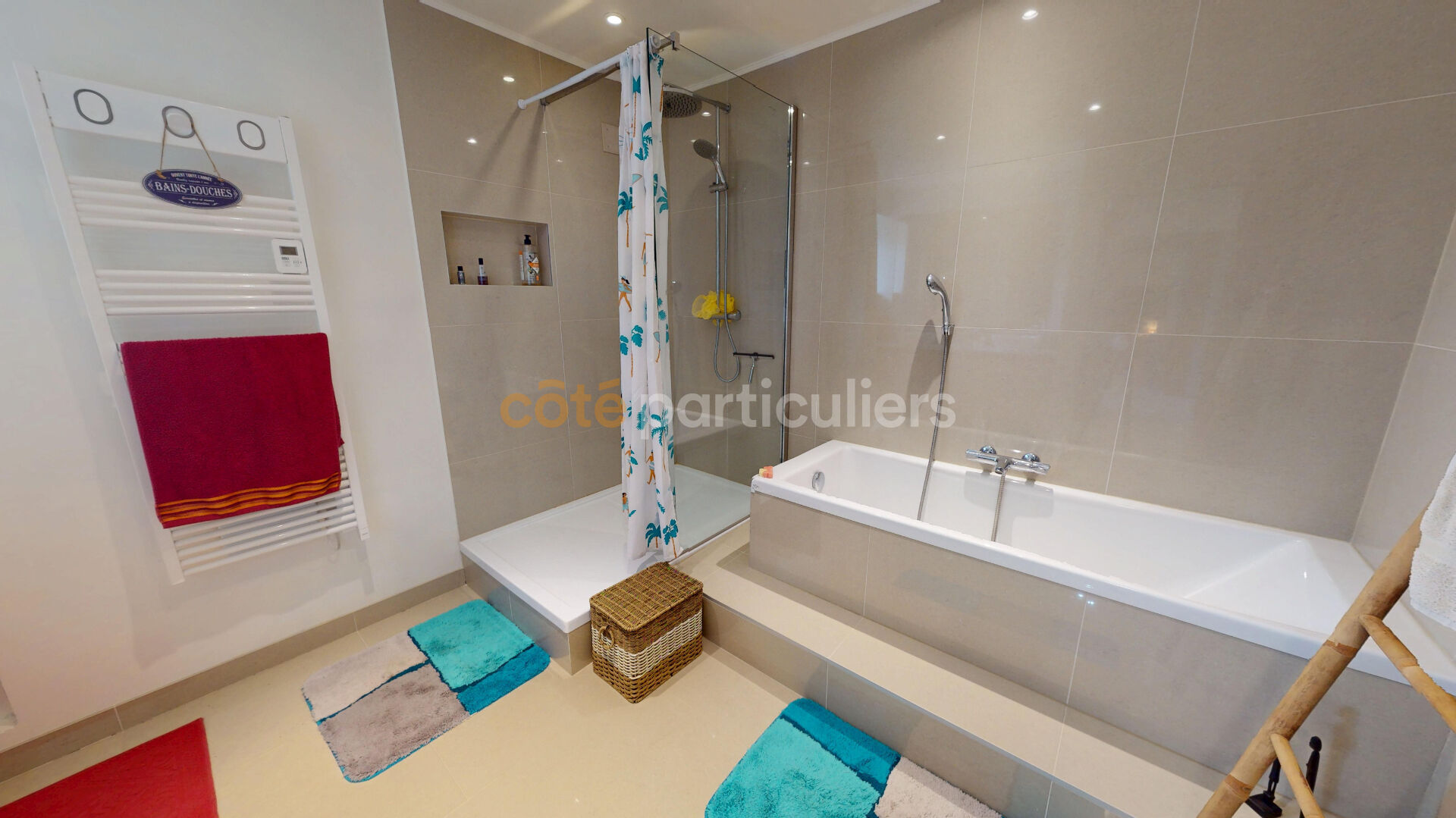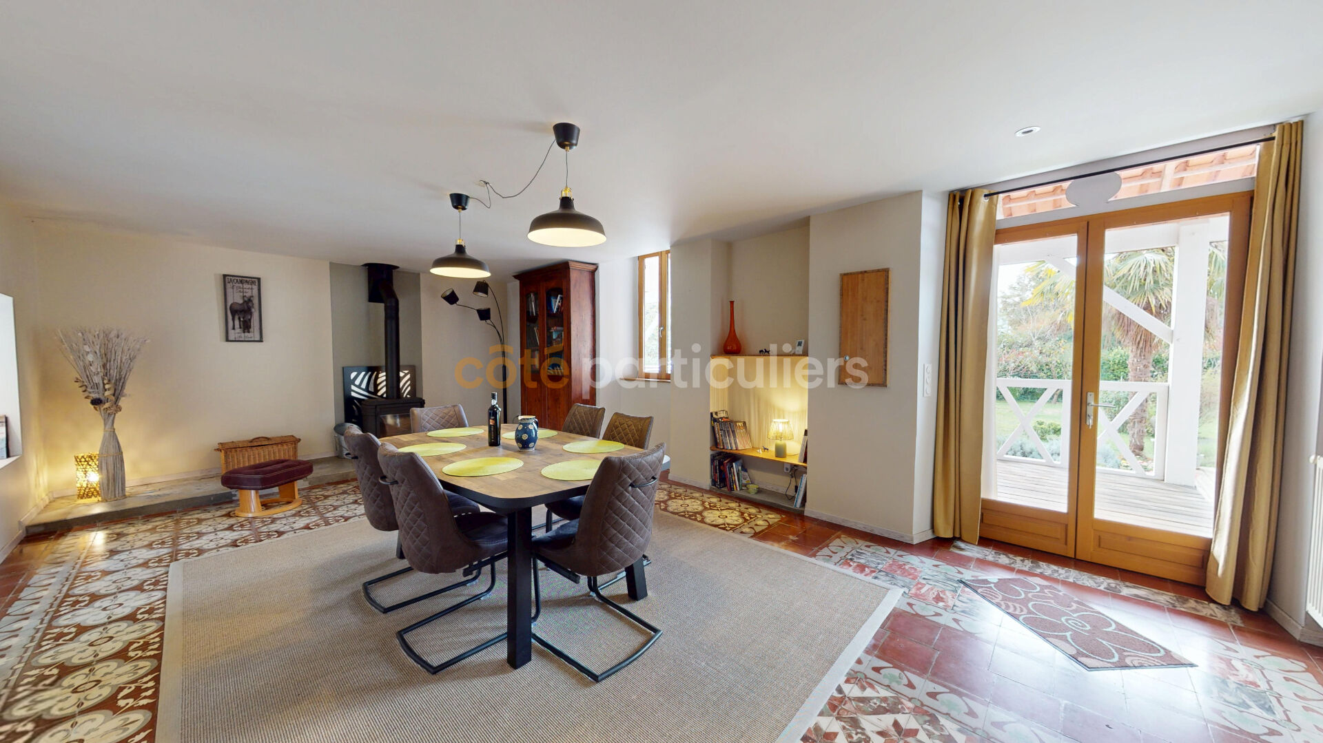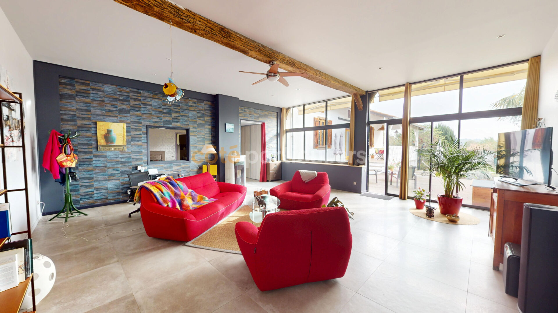 A 15 KMS A L'EST DE TARBES, BEAU CORPS DE FERME RENOVE D'ENVIRON 250 M² COMPRENANT : au rez-de-chaussée, un salon séjour lumineux de 55 m² donnant sur une terrasse en exposition Est, une cuisine aménagée et équipée avec cellier, un salon salle à manger avec tomettes au sol de 54 m² ouvrant sur une terrasse en exposition Sud, une suite parentale de 23 m² avec dressing et salle d'eau avec un wc, une chambre de 12 m², une salle de bains avec douche et baignoire ainsi qu' un wc séparé. A l'étage, une chambre de 11 m², un bureau et un espace détente. De plus, un local professionnel de 30 m² comprenant une salle d'attente et une pièce principale avec accès indépendant . Le tout sur un terrain arboré et clôturé d'environ 1500 m² comprenant un carport pouvant accueillir deux véhicules ainsi qu'un puit. Des combles d'environ 180 m² isolés et pouvant être aménagés. Chauffage mixte poêle à bois, poêle à granulés et chaudière gaz panneaux photovoltaïques récents (mai 2024). Menuiseries double vitrage bois et alu. Isolation des murs et de la toiture. Assainissement individuel conforme. Portail électrique. (4.59 % honoraires TTC à la charge de l'acquéreur.)