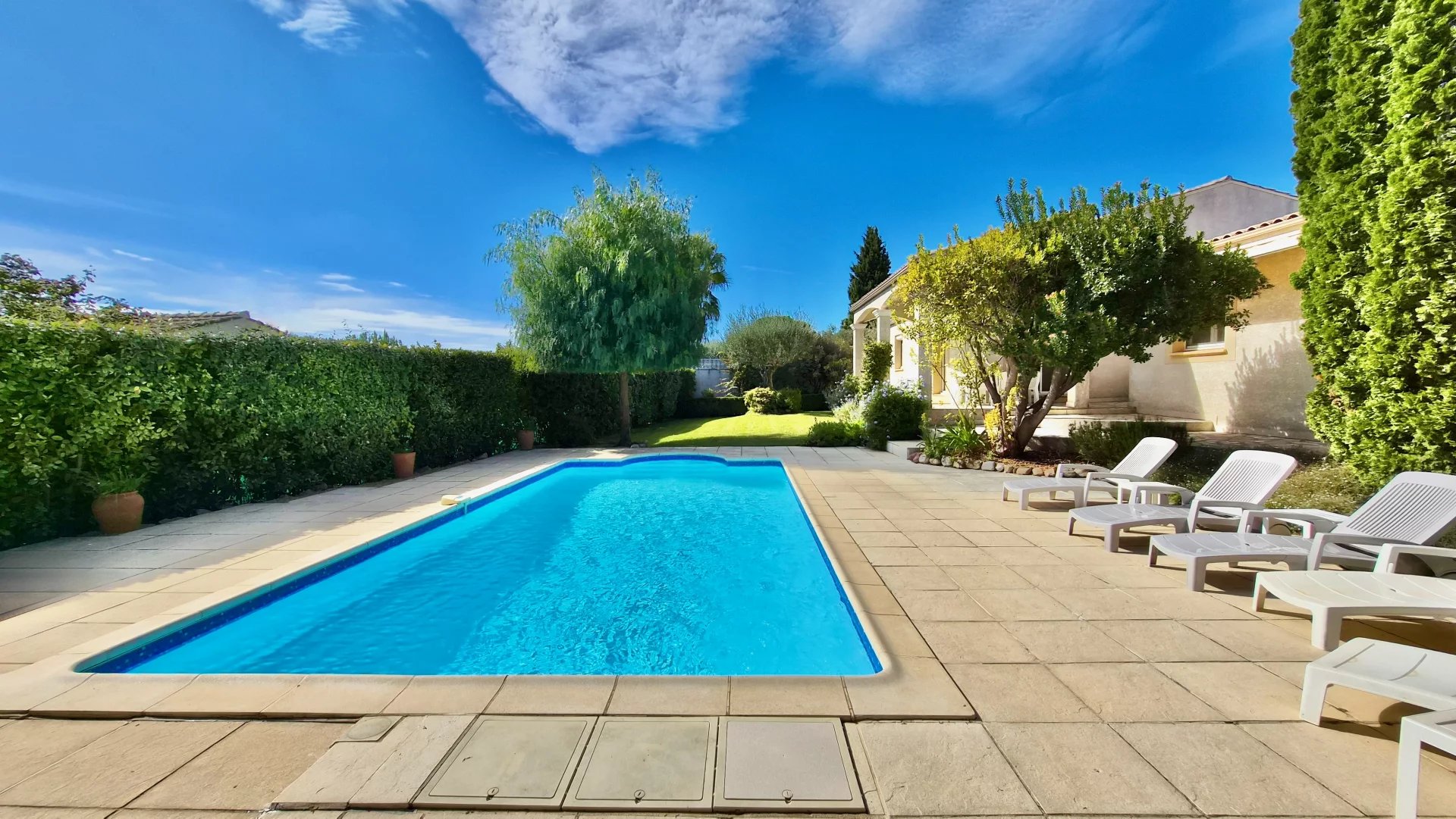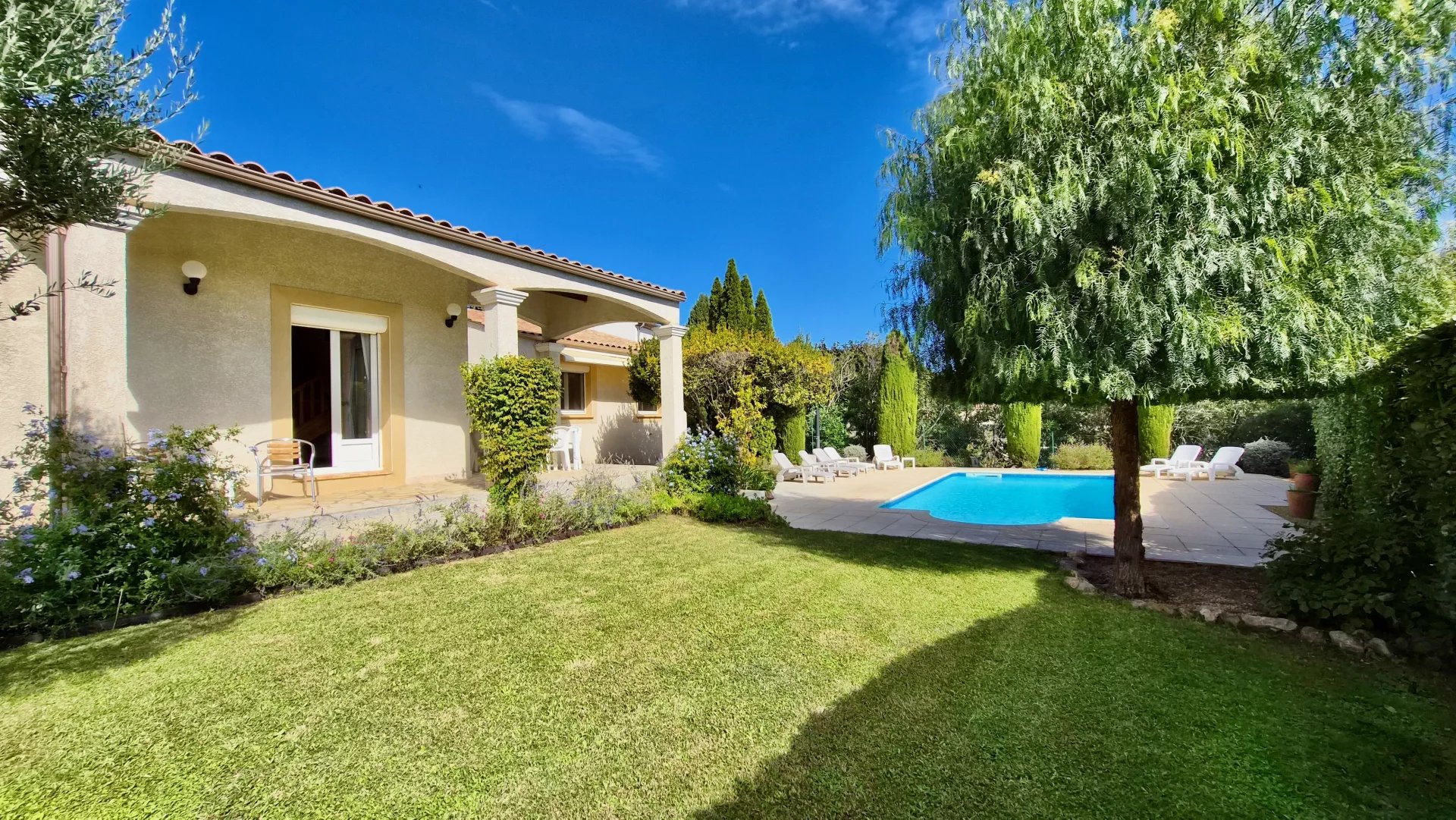 À quelques minutes en voiture, Magalas propose restaurants, gare et commerces, tandis que Puissalicon abrite les célèbres domaines Boyer et d’autres restaurants réputés. Alliant le charme authentique du village à la commodité des services et au style de vie méditerranéen, cette villa représente une opportunité rare dans le Sud de la France.