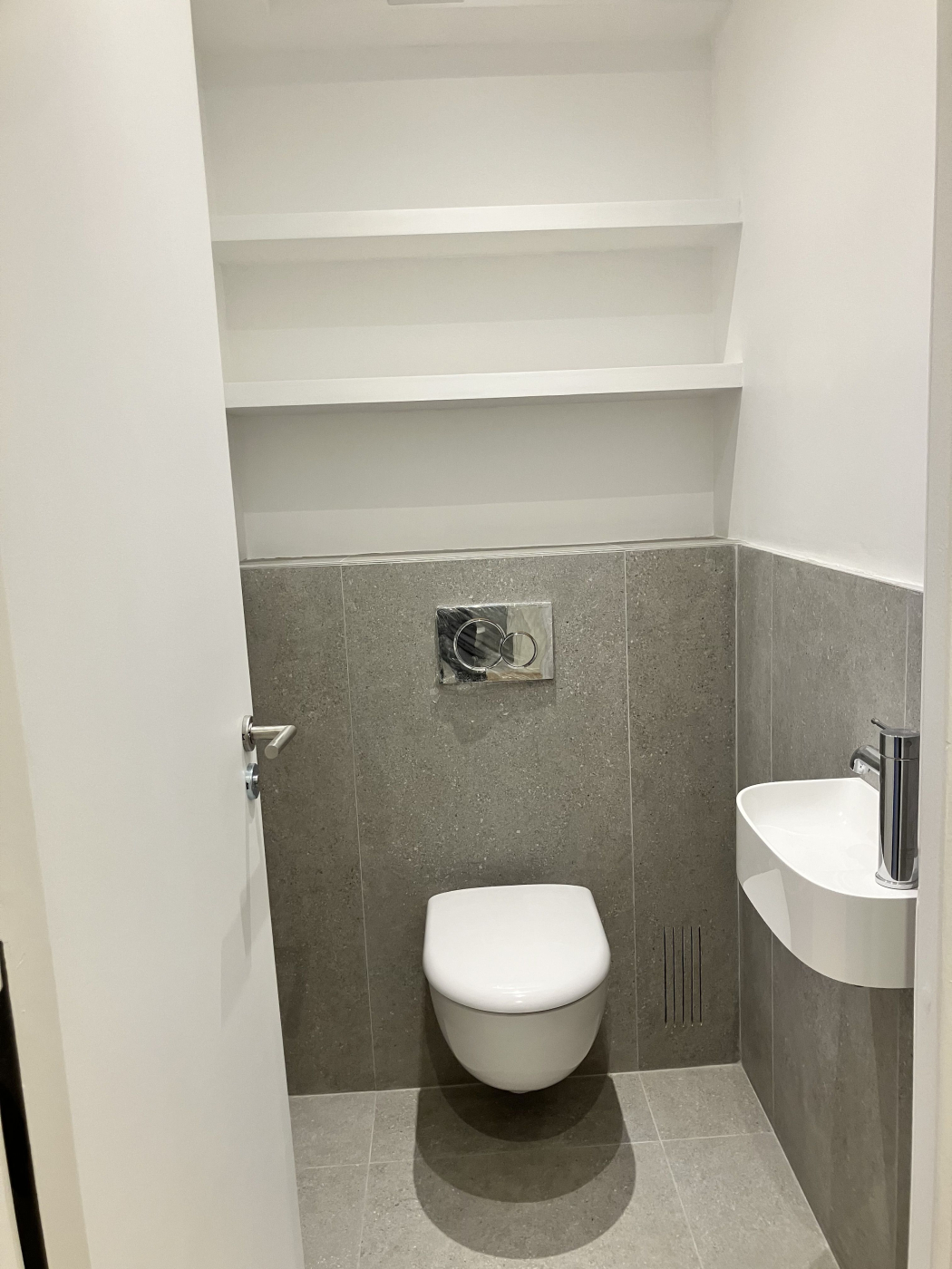 La cuisine est indépendante et équipée avec de l'électroménager neuf n'ayant jamais servi (plaque de cuisson, hotte, lave vaisselle), salle de bain avec douche à l'italienne, WC séparé.