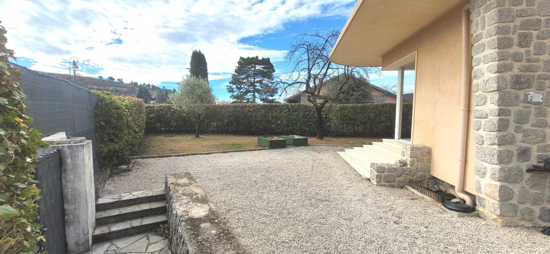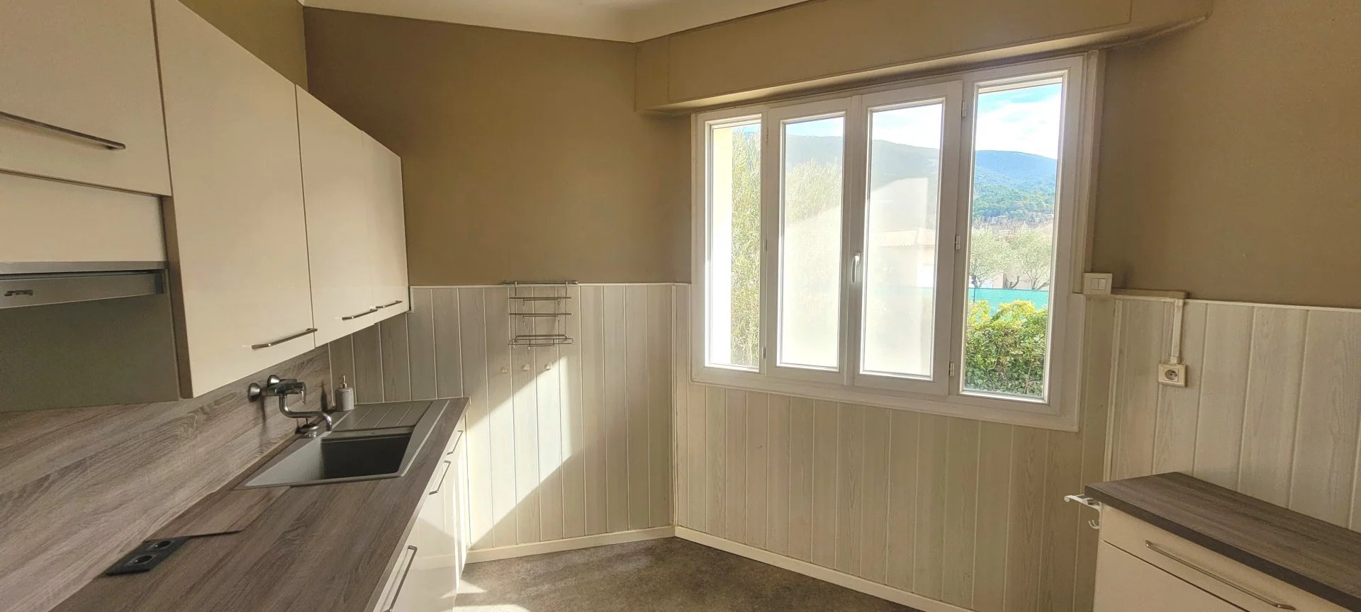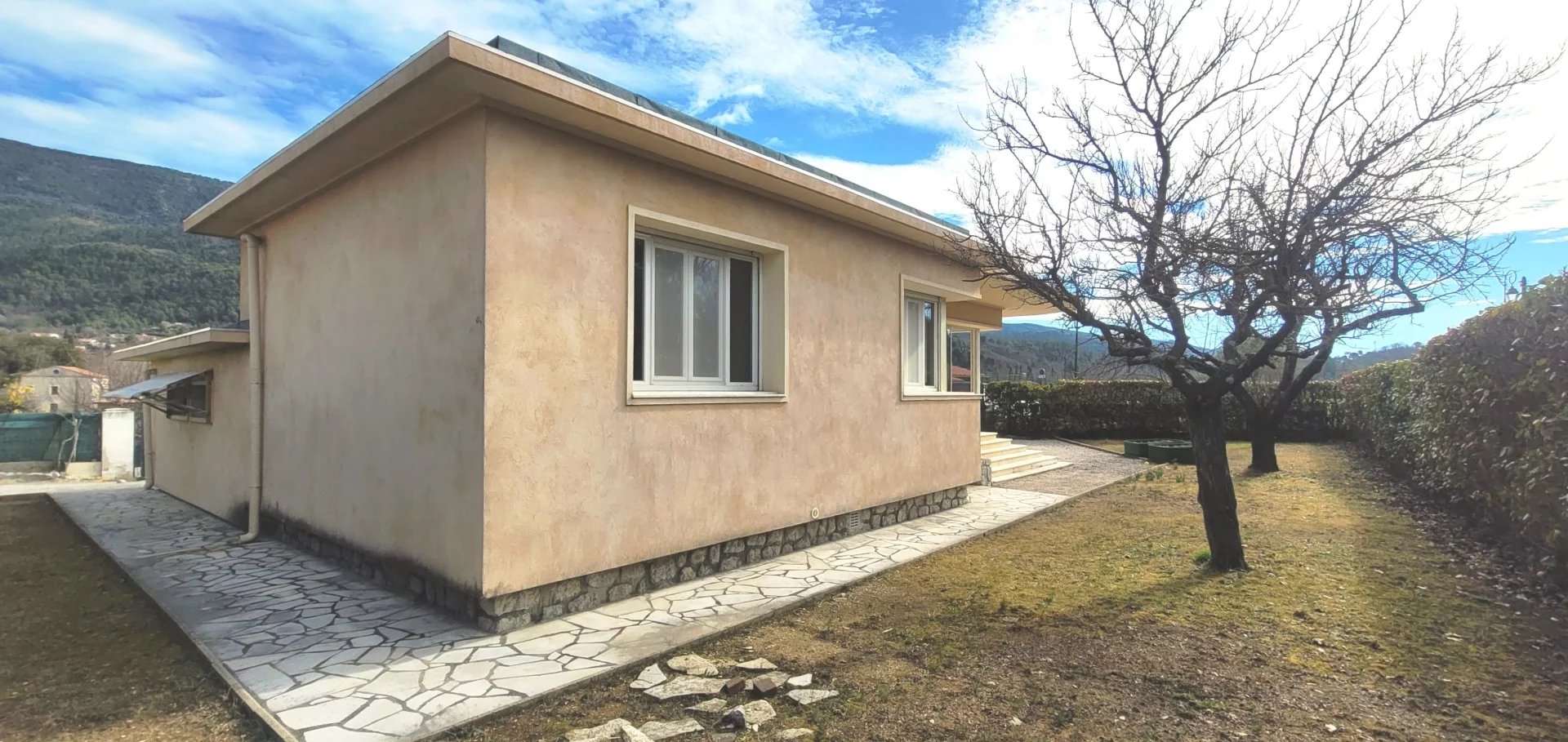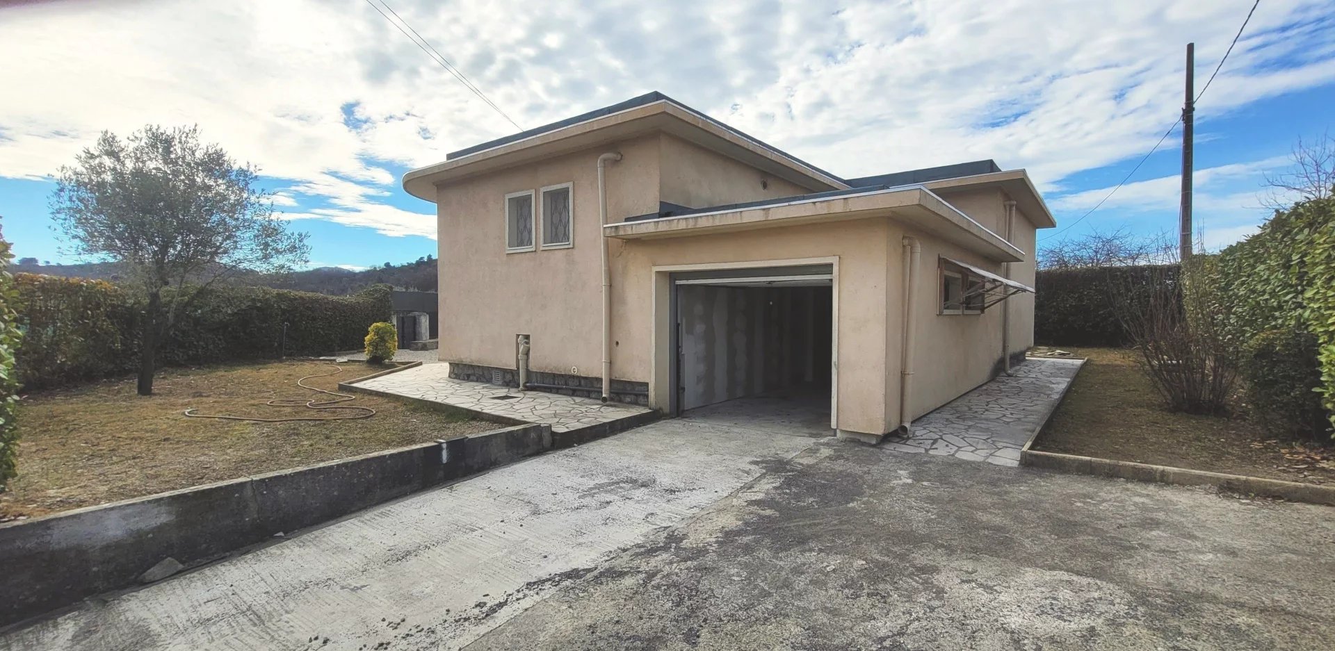 Levens, Grand Pré, proche village, agréable maison individuelle de 3 pièces principales de 92m2, récemment rénovée, double vitrage, isolation thermique, climatisation réversible, cuisine indépendante équipée, garage, jardin et proche commodités.