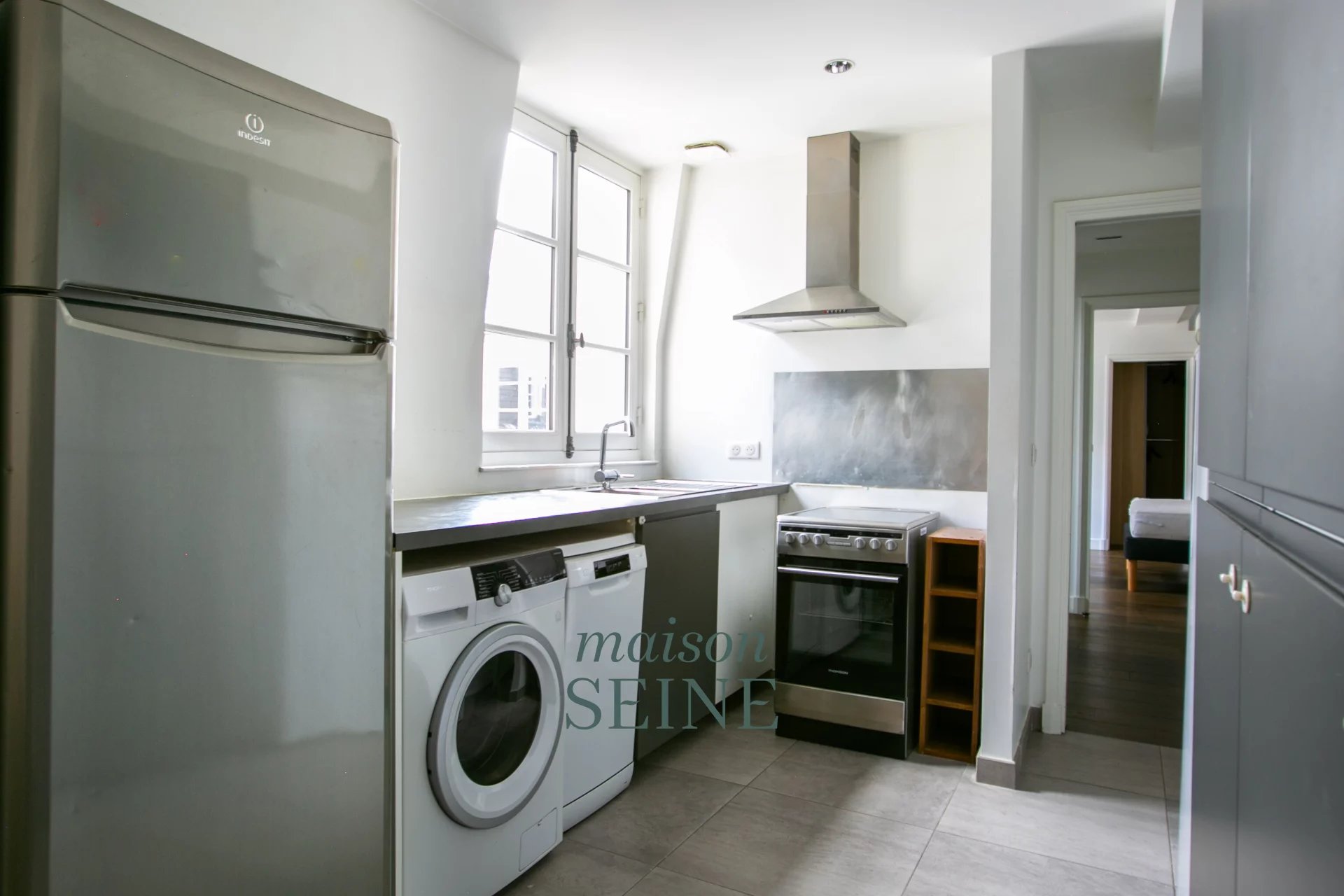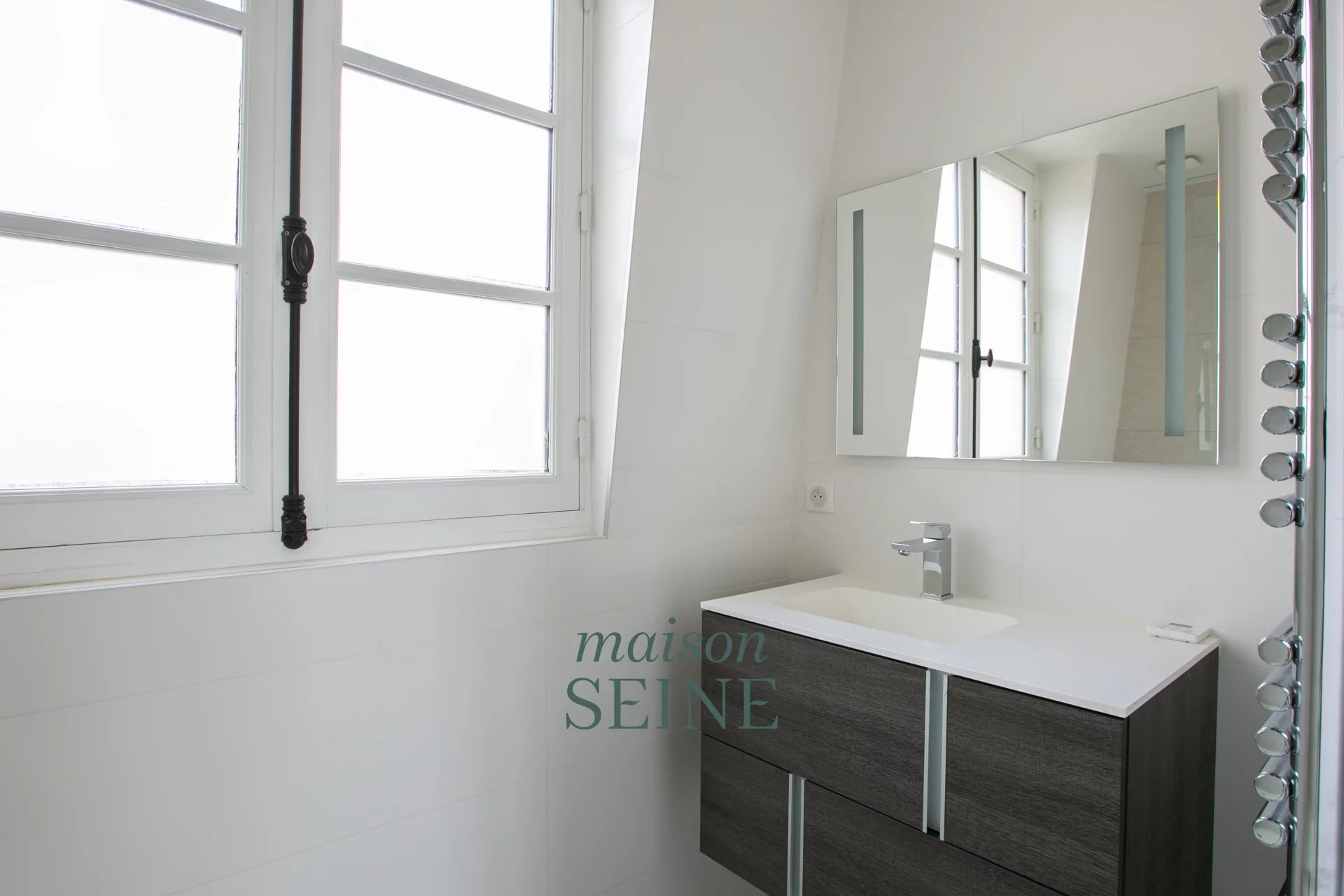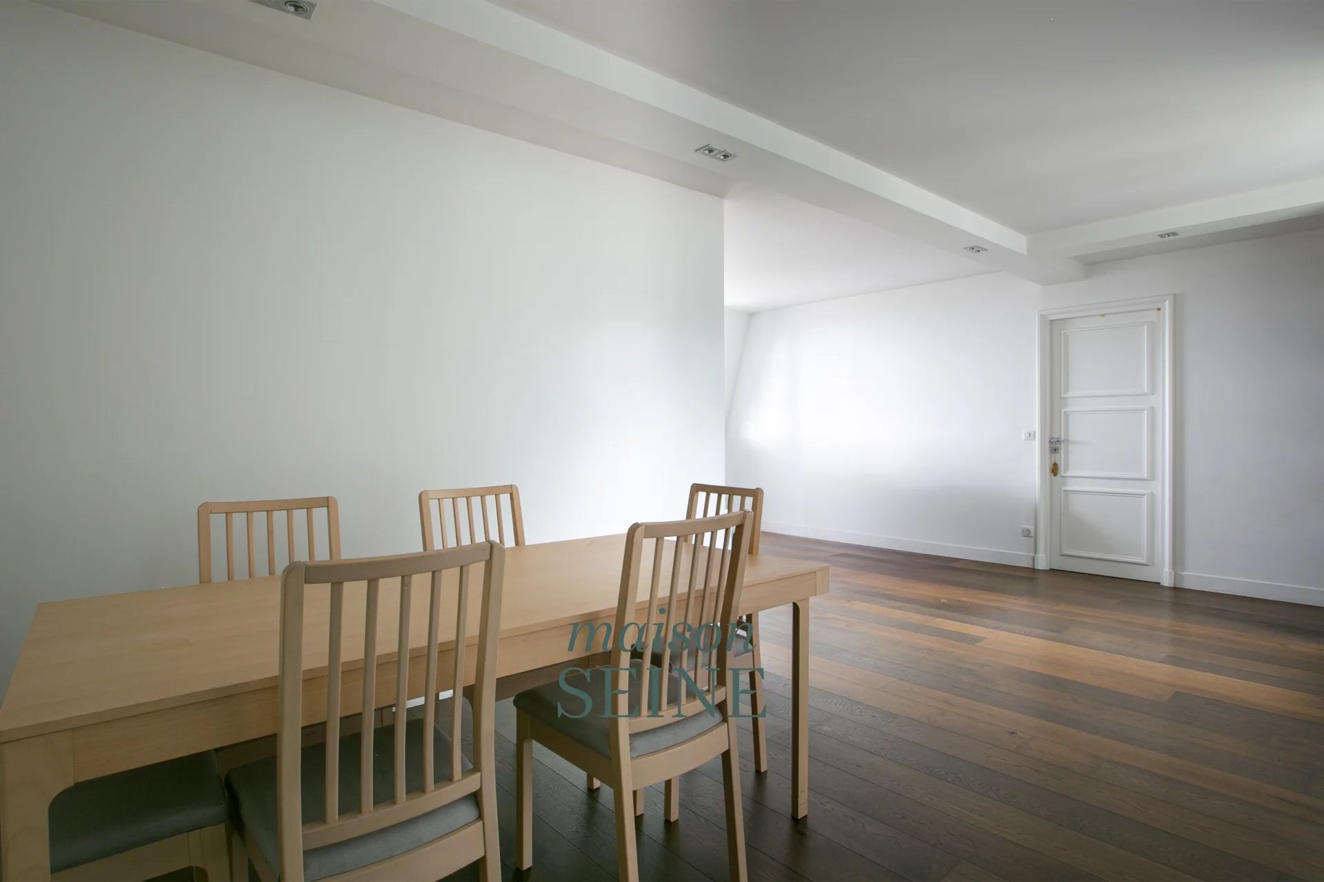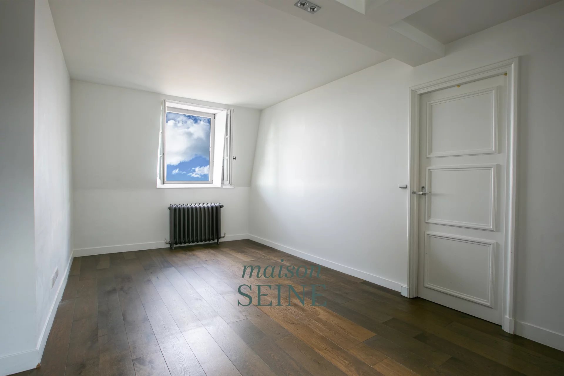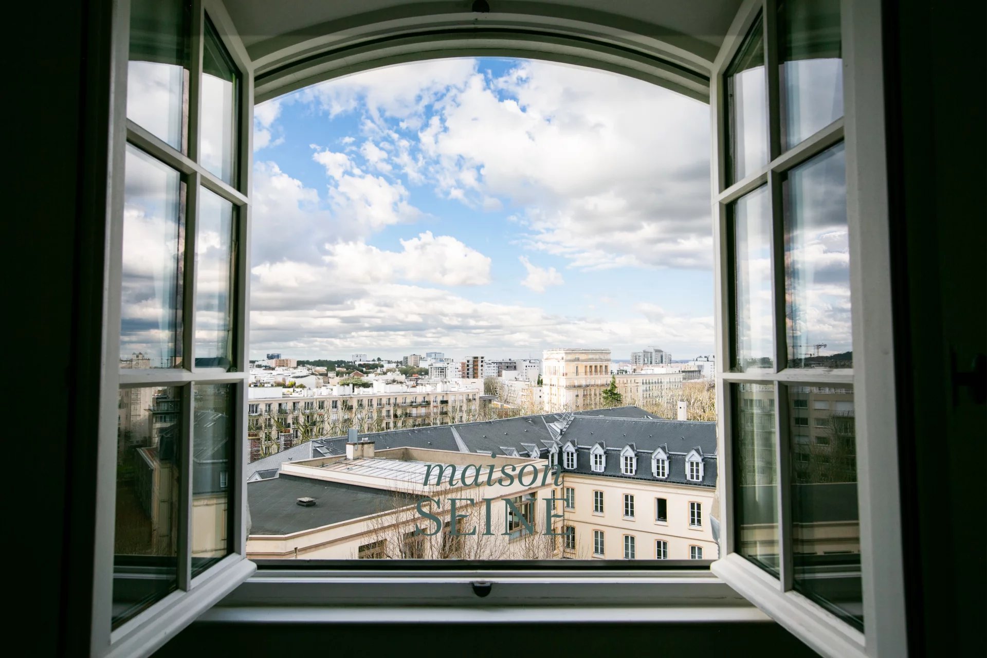 Idéalement situé dans un bel immeuble en pierre de taille 1930, avec de superbes parties communes et conciergerie à demeure, très bel appartement traversant de 84 m² carrez (85,46 m² au sol), en parfait état, situé au 6ème étage avec ascenseur et offrant des vues totalement dégagées.